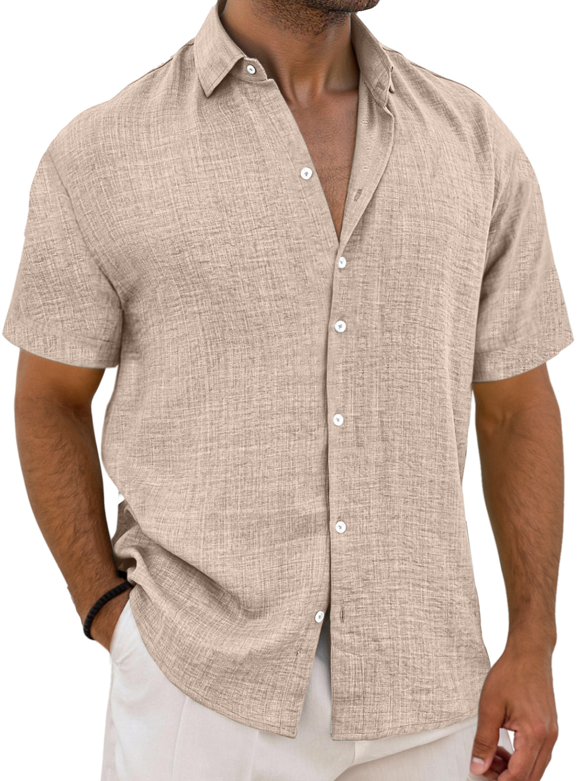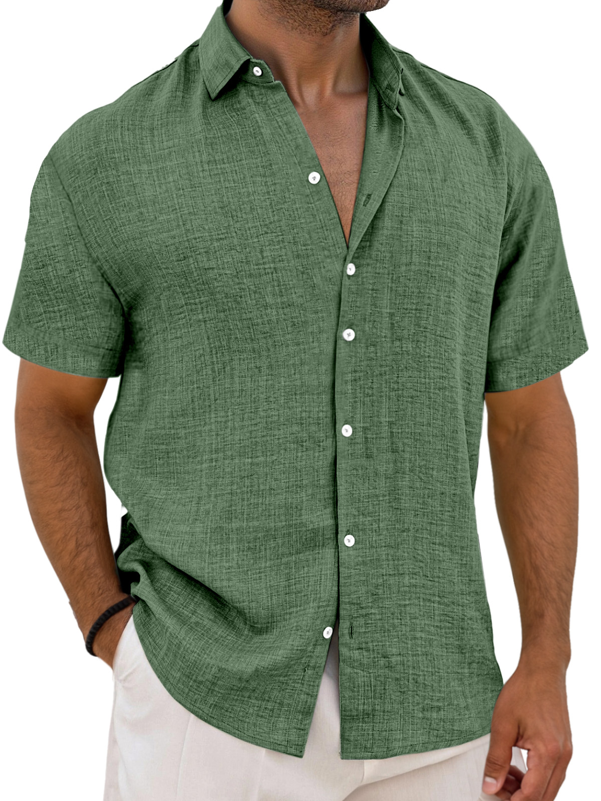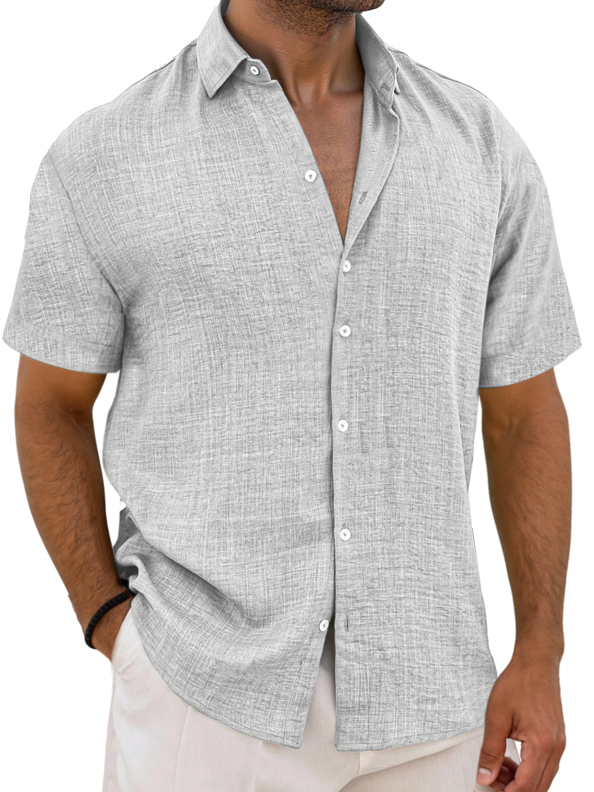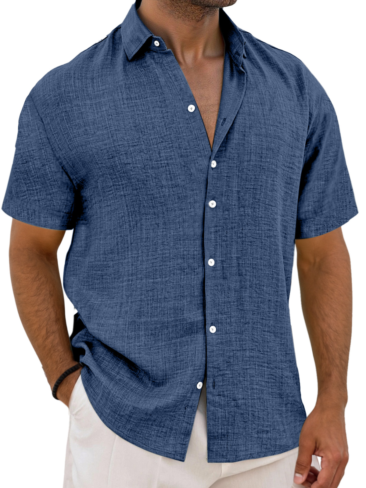 Men's Simple Solid Color Breathable Loose Lapel Short-sleeved Shirt