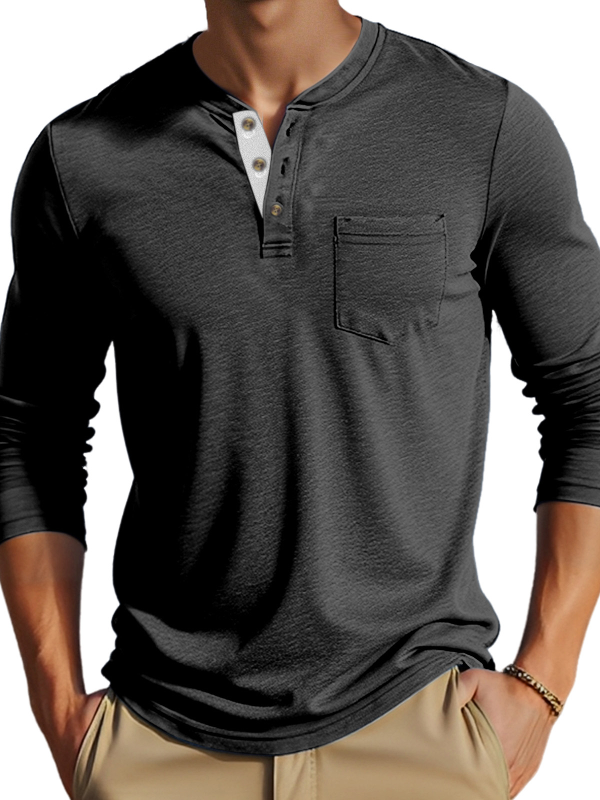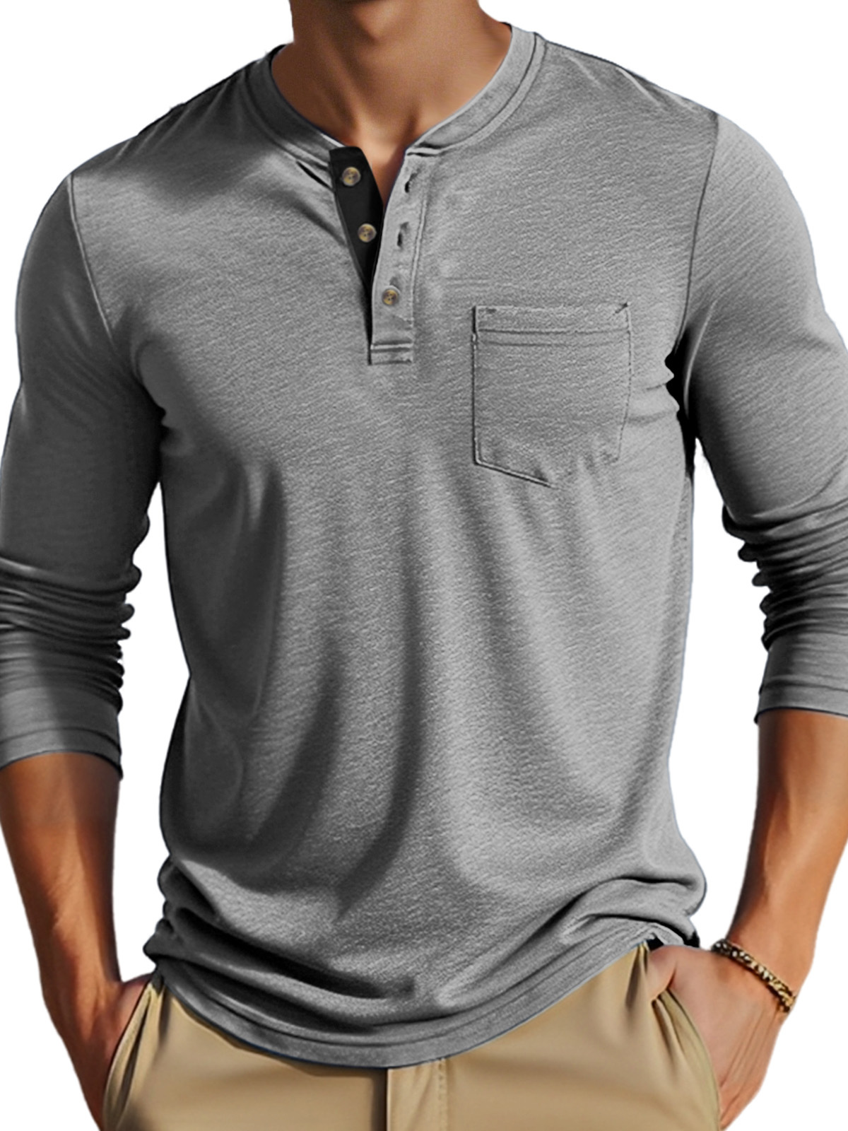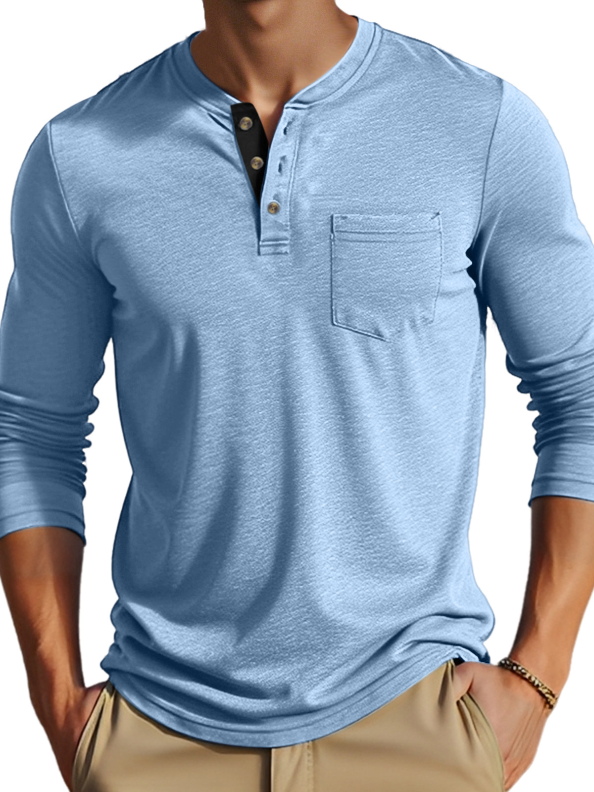• Neckline:Henley Collar
