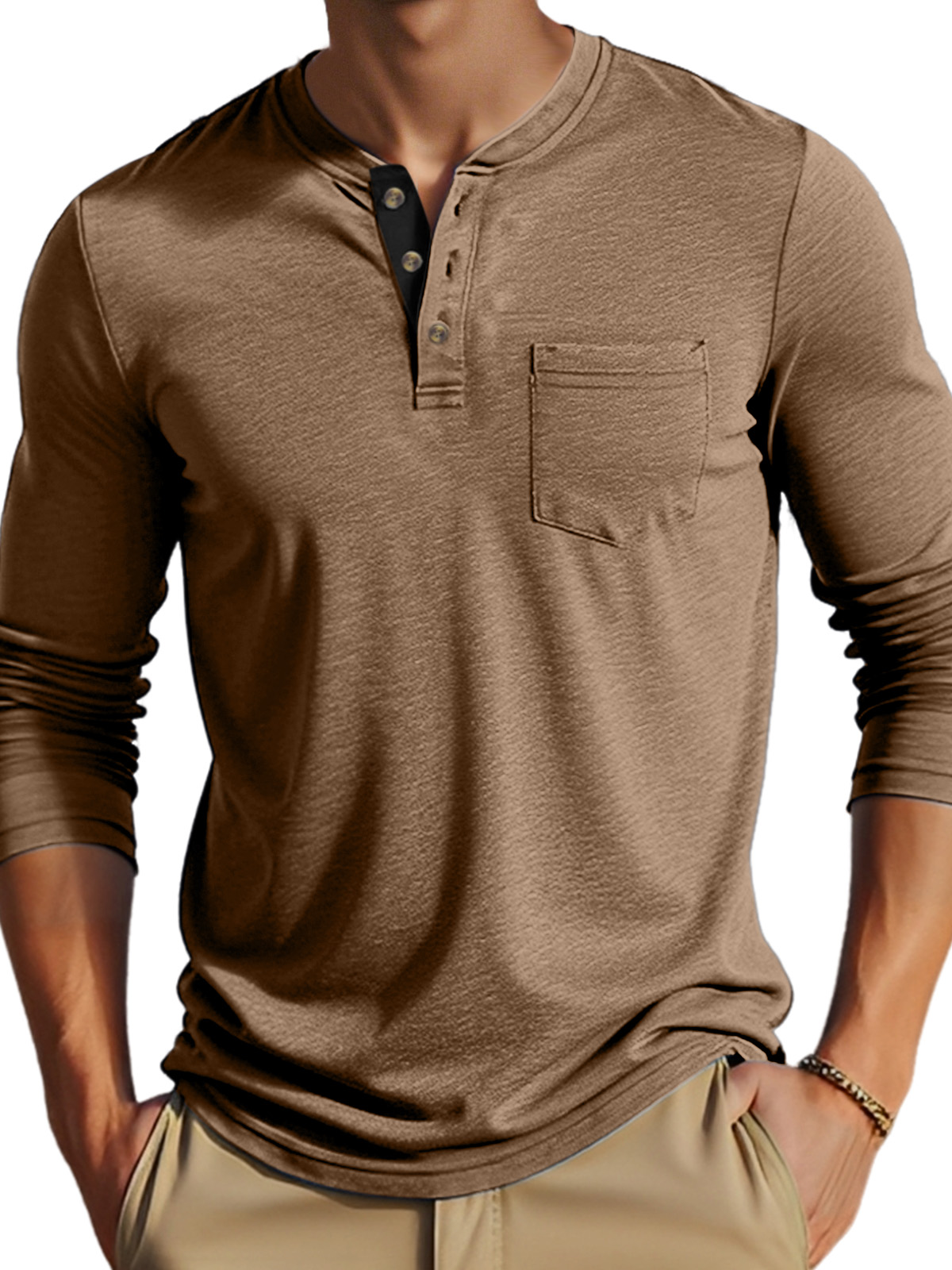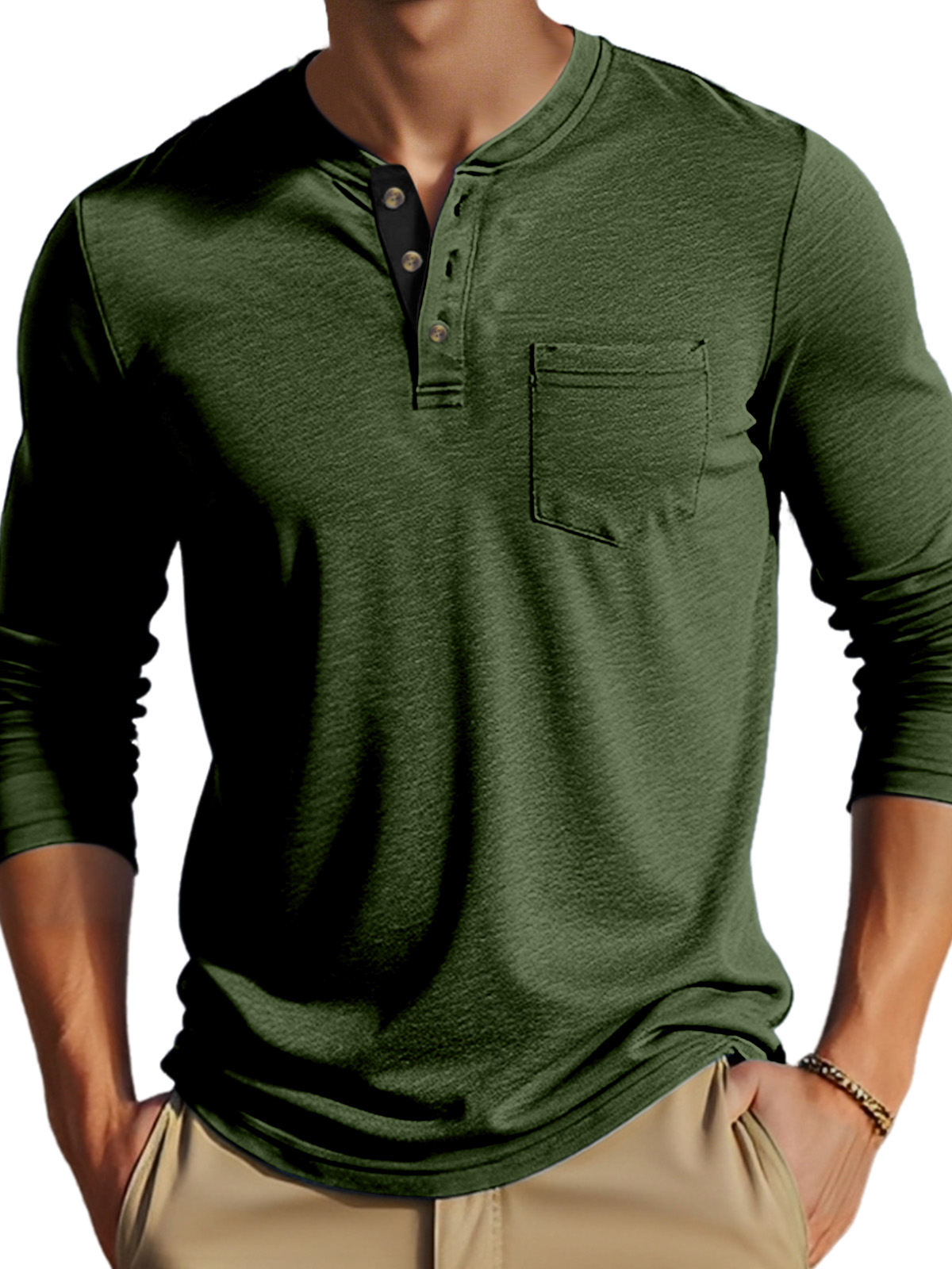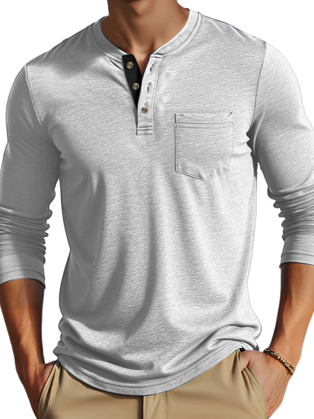 • Neckline:Henley Collar