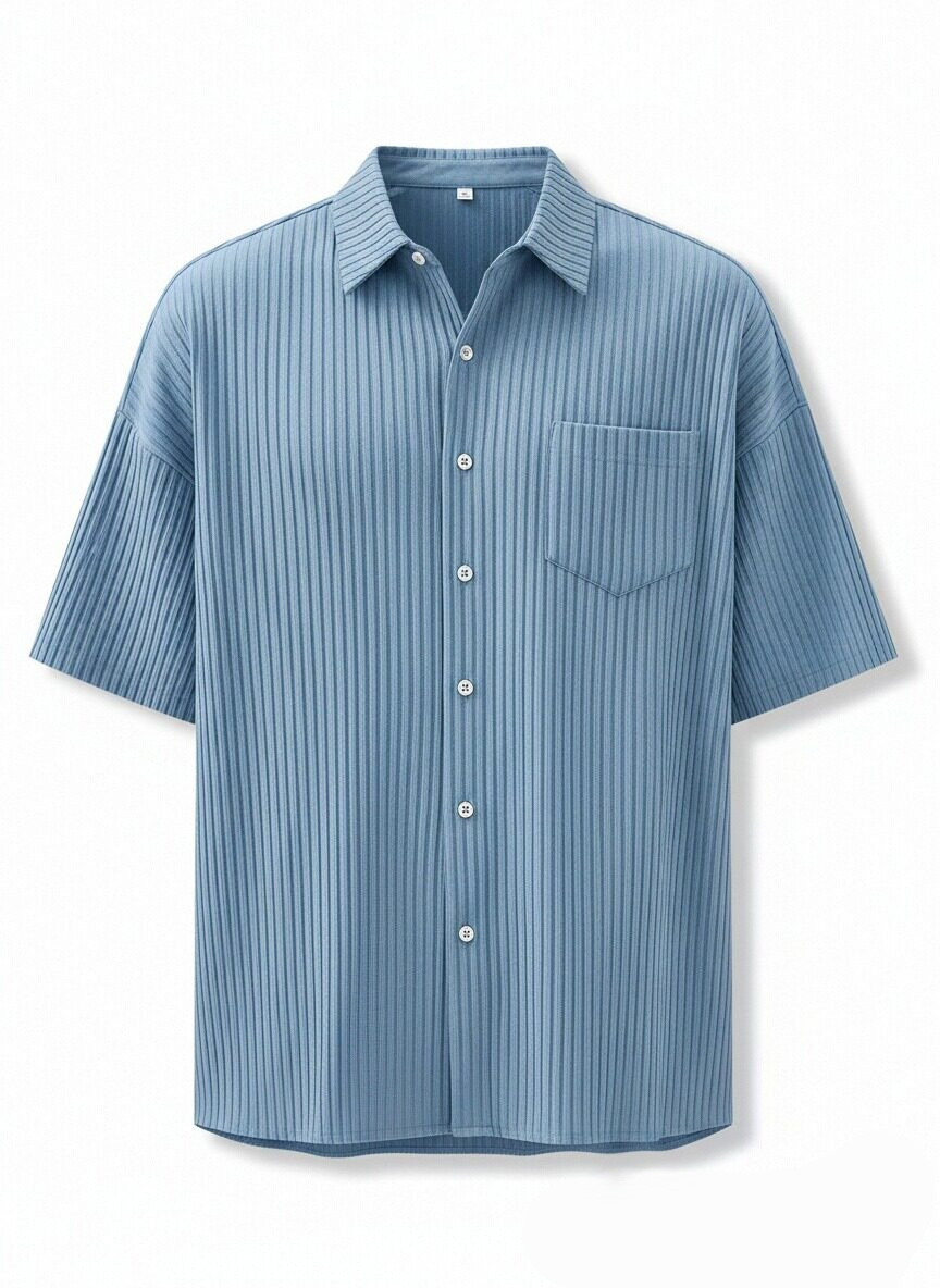 Men's Simple Solid Color Vertical Pit Short-sleeved Shirt With Chest Pocket