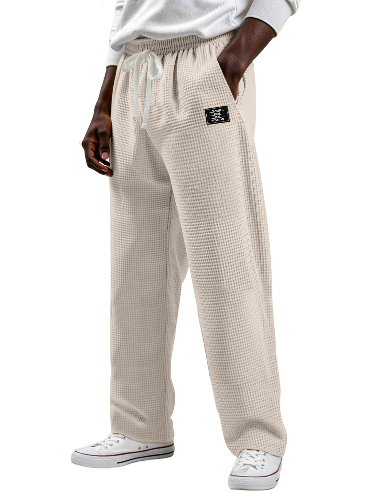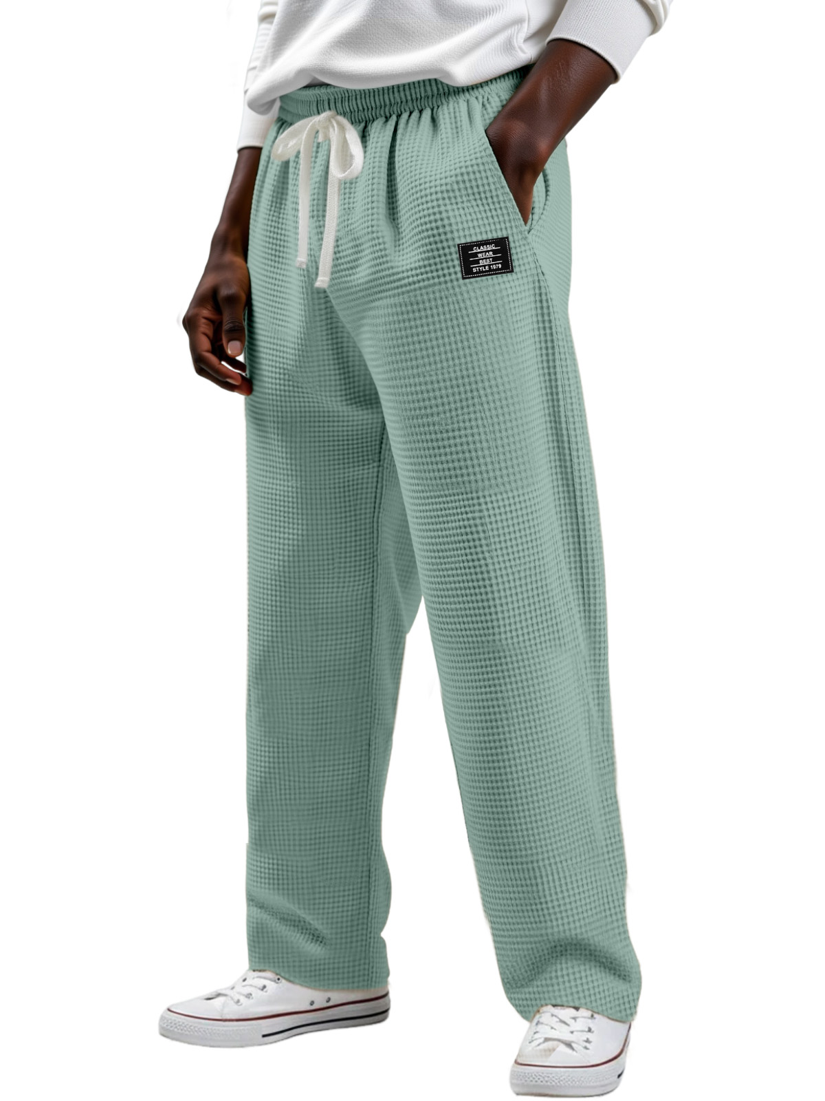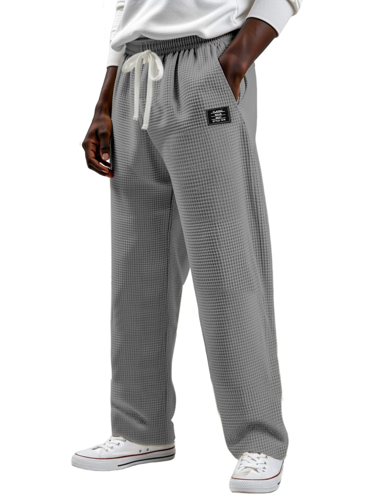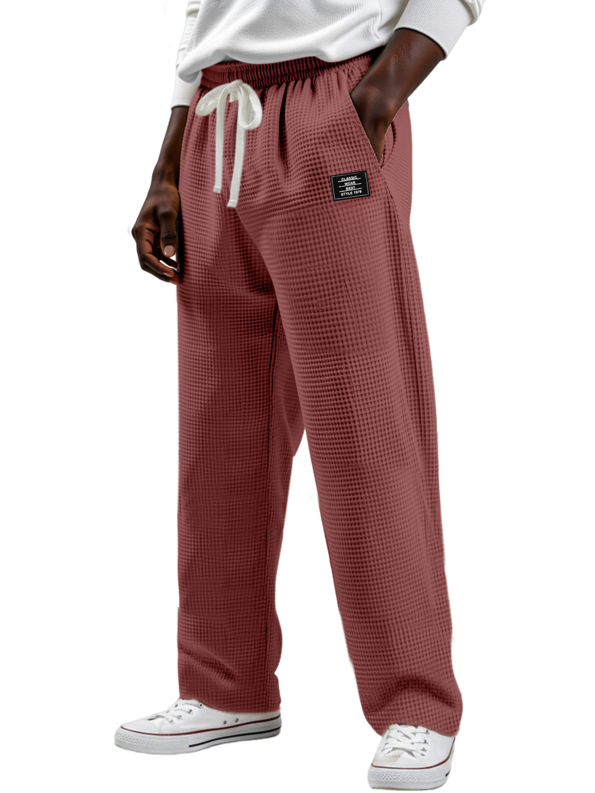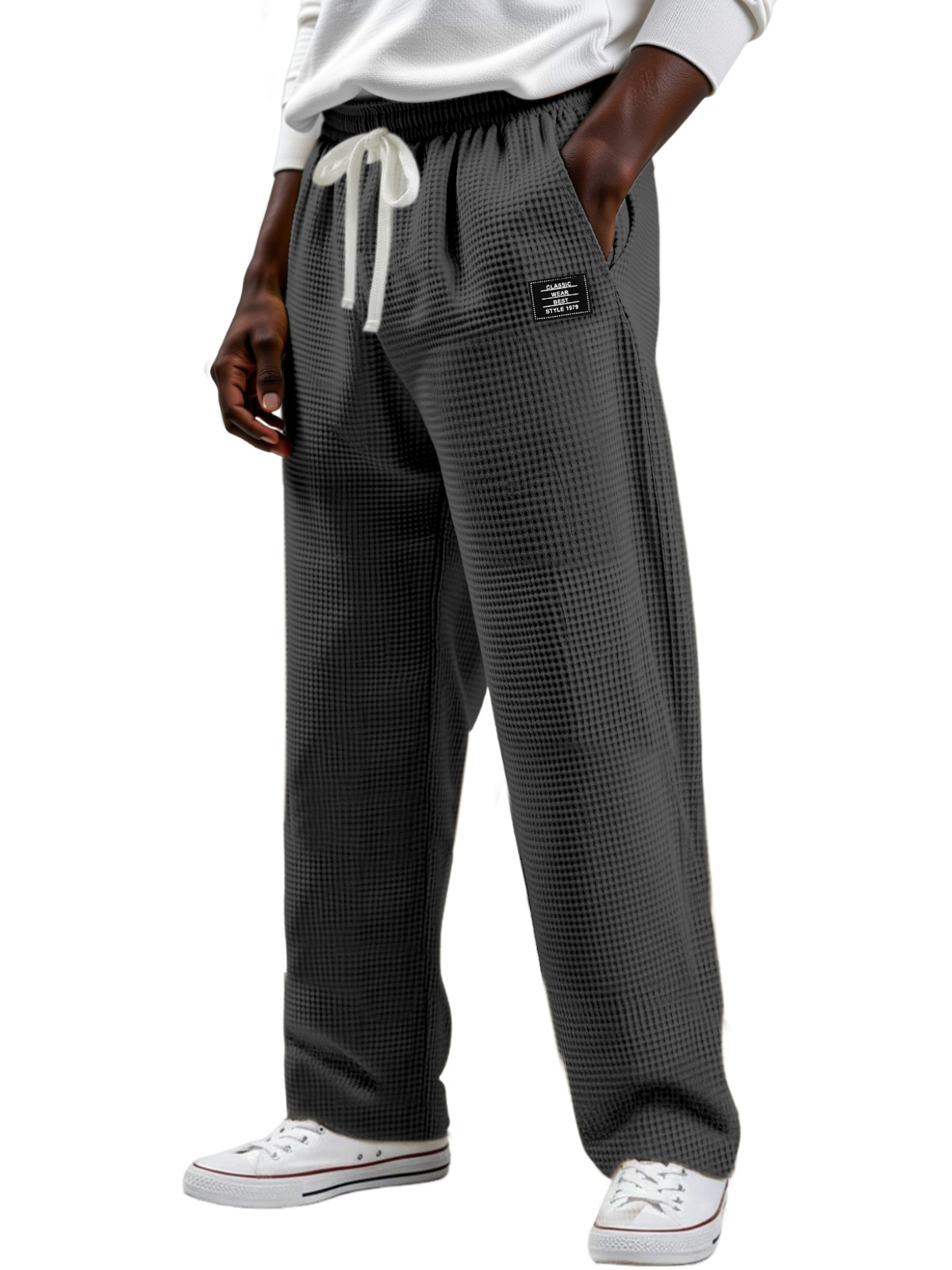 Men's Simple Solid Color Waffle Design Logo Fashion Casual Trousers