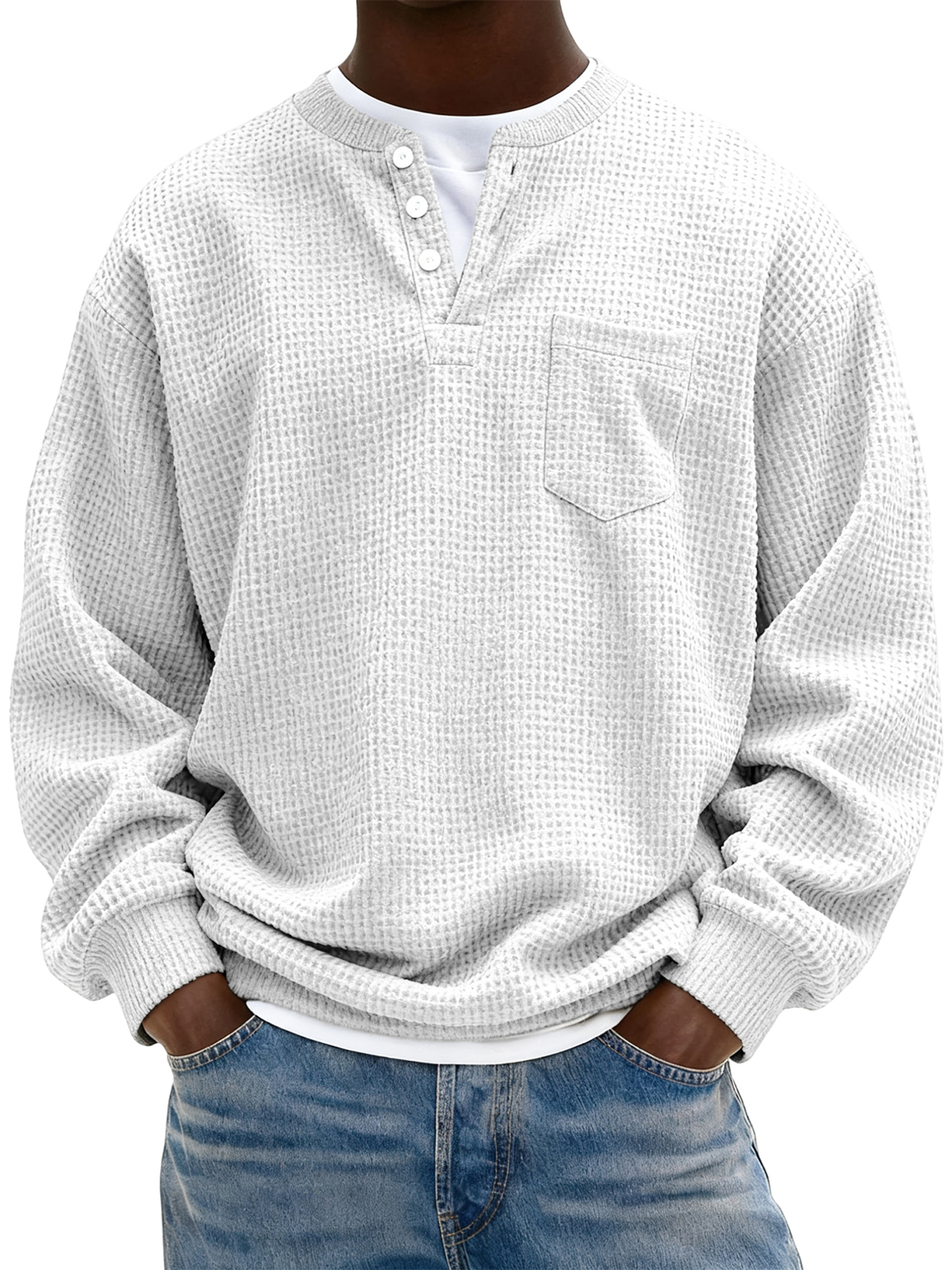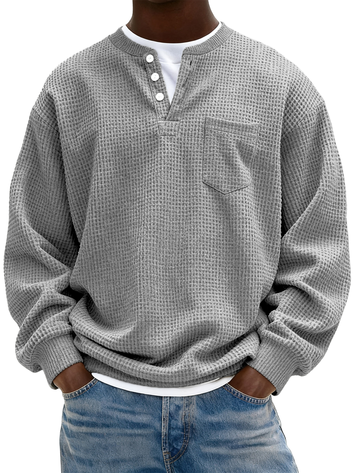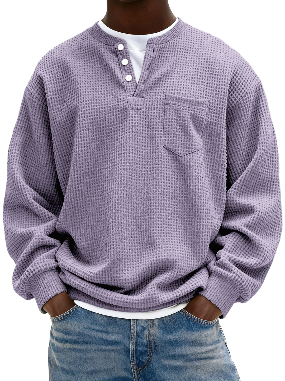 Men's Simple Waffle Henley Pullover with Chest Pocket