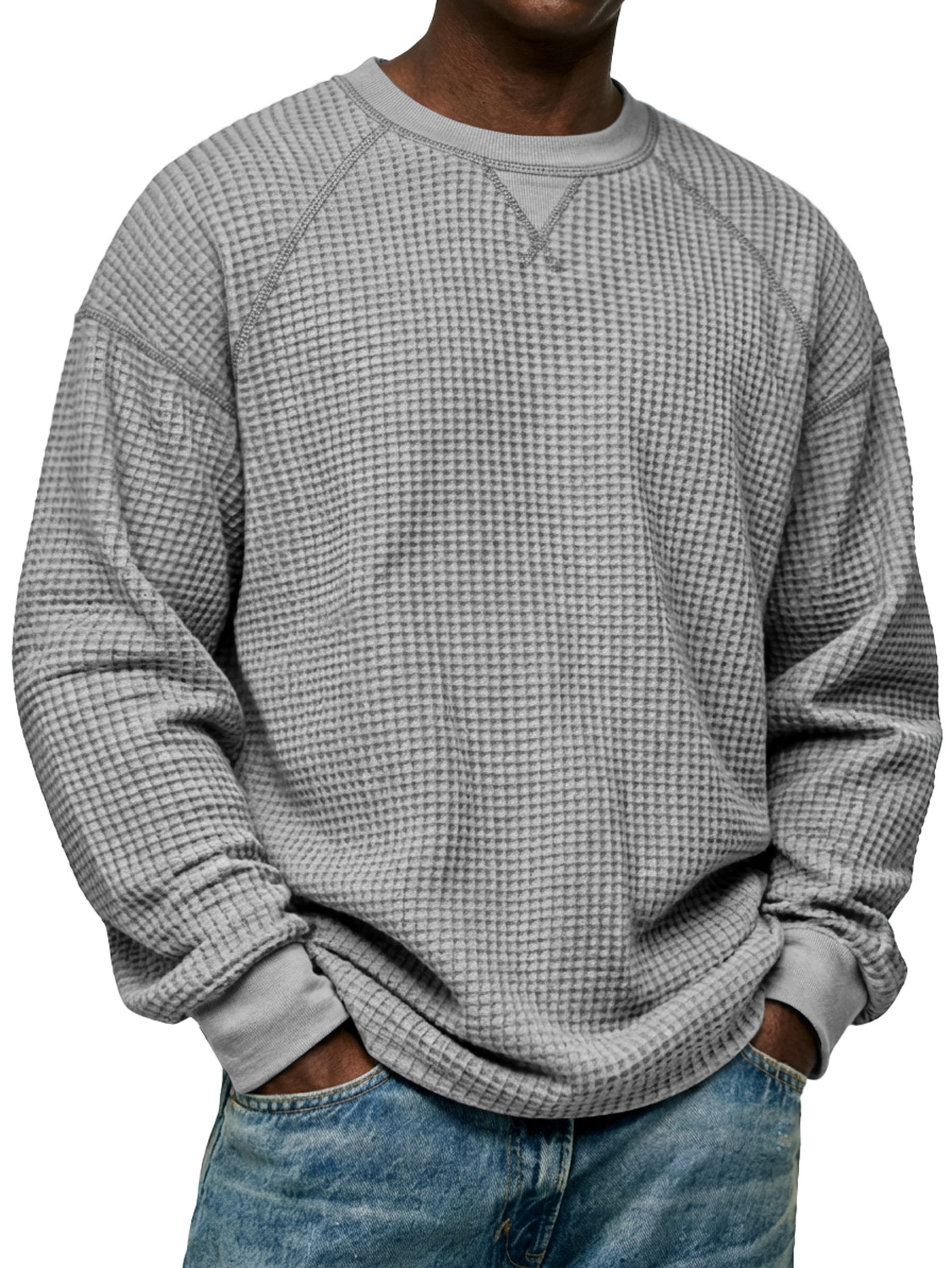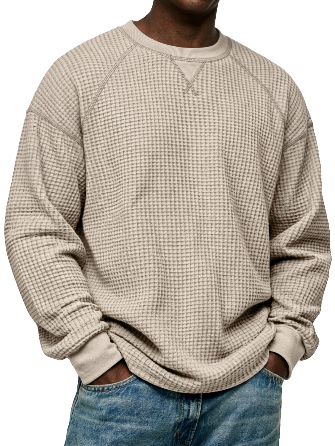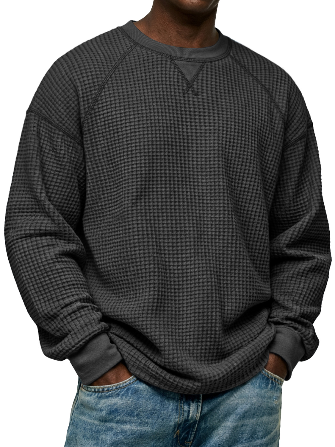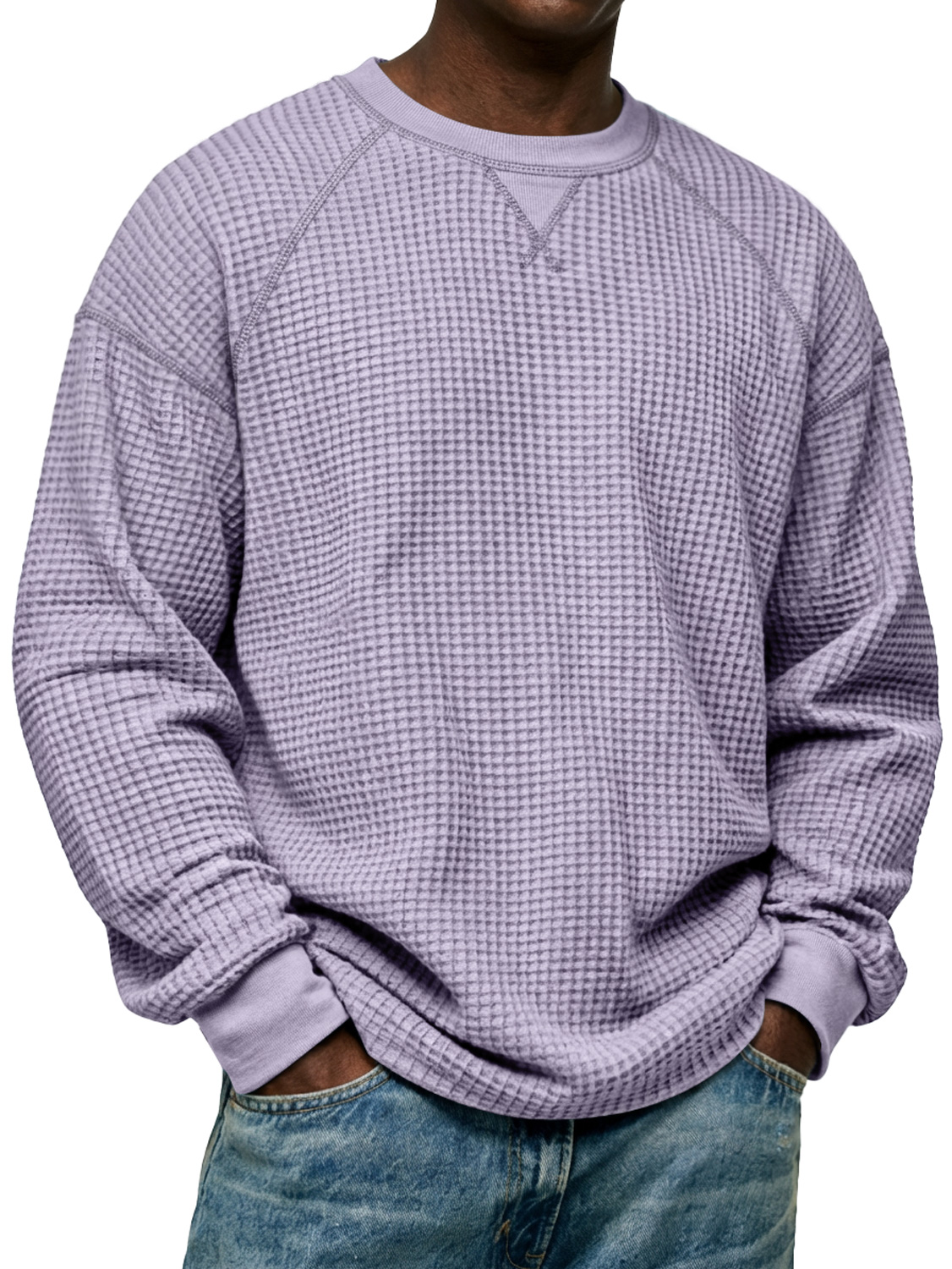 Men's Simple Waffle-knit Crew Neck Raglan Sleeve Long-sleeved T-shirt