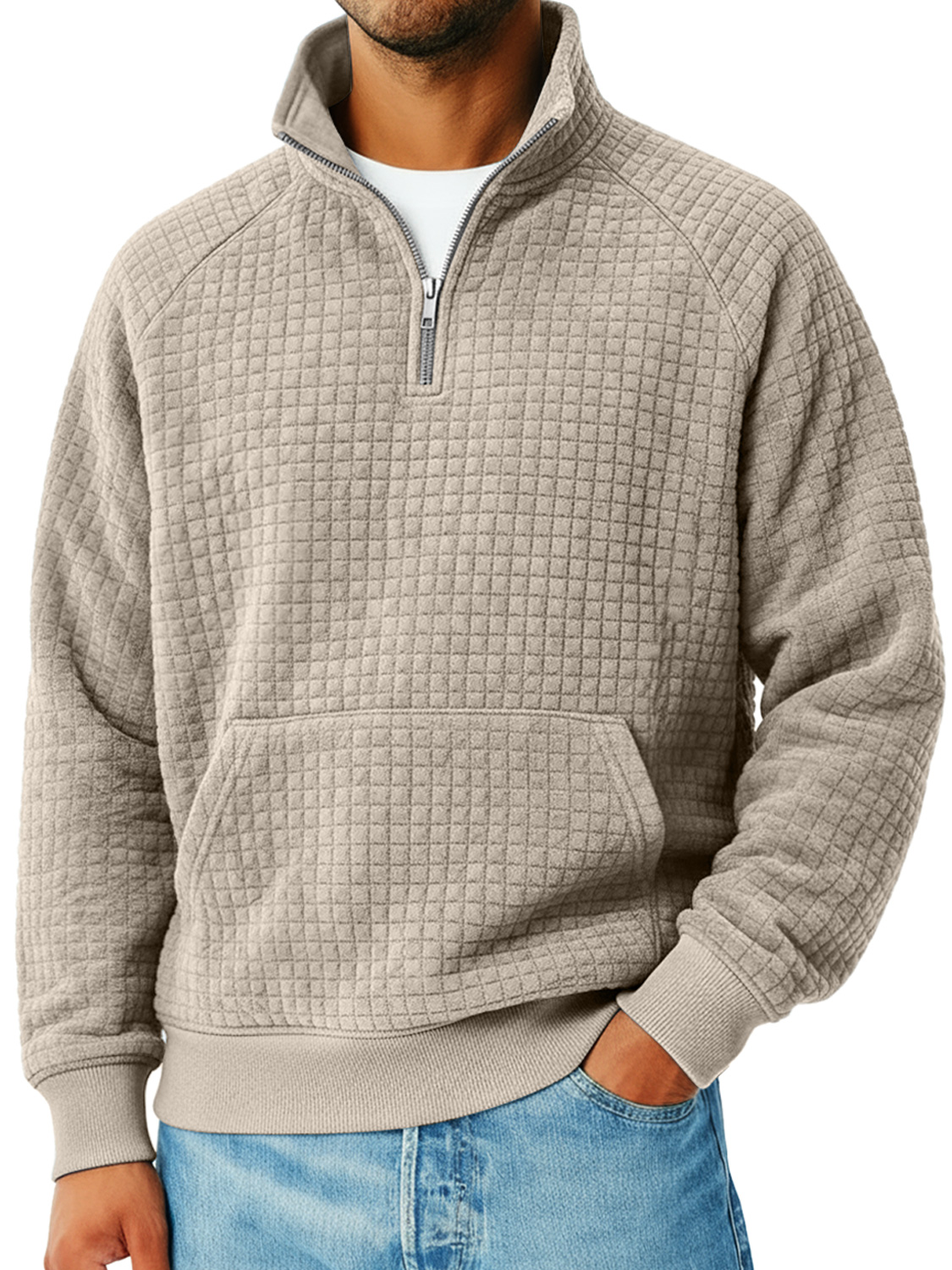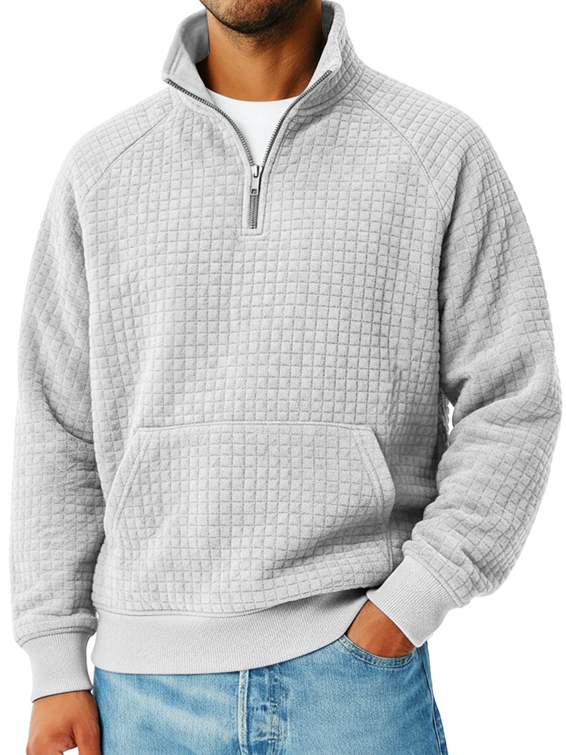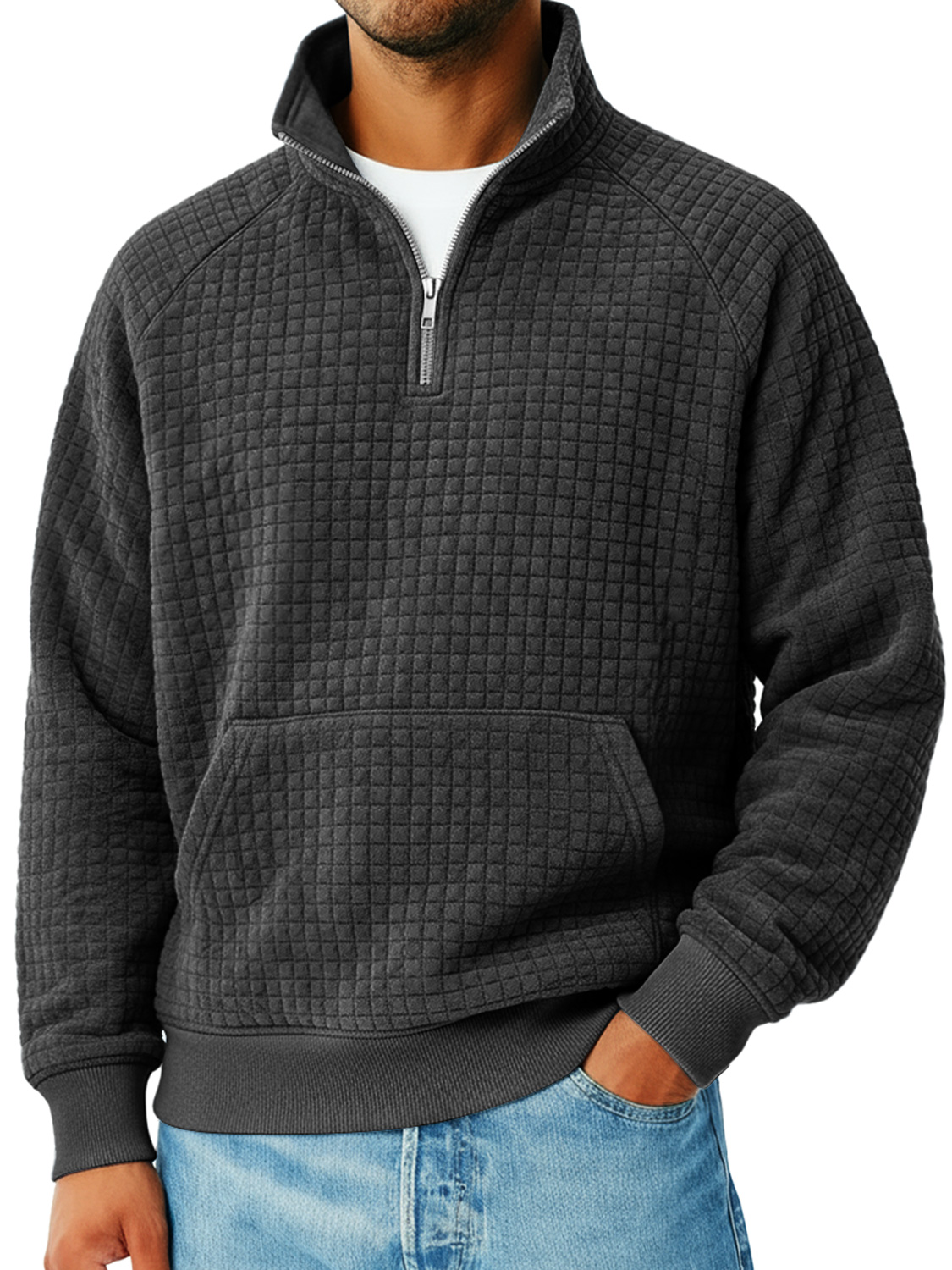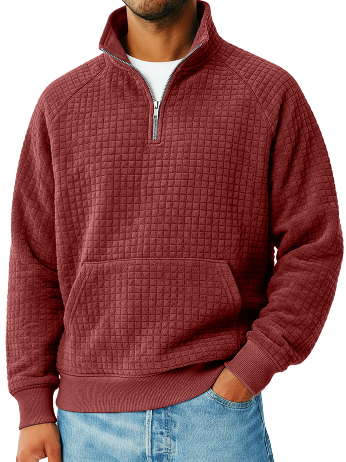 Men's Small Plaid Button Hooded Casual Loose Sweatshirt