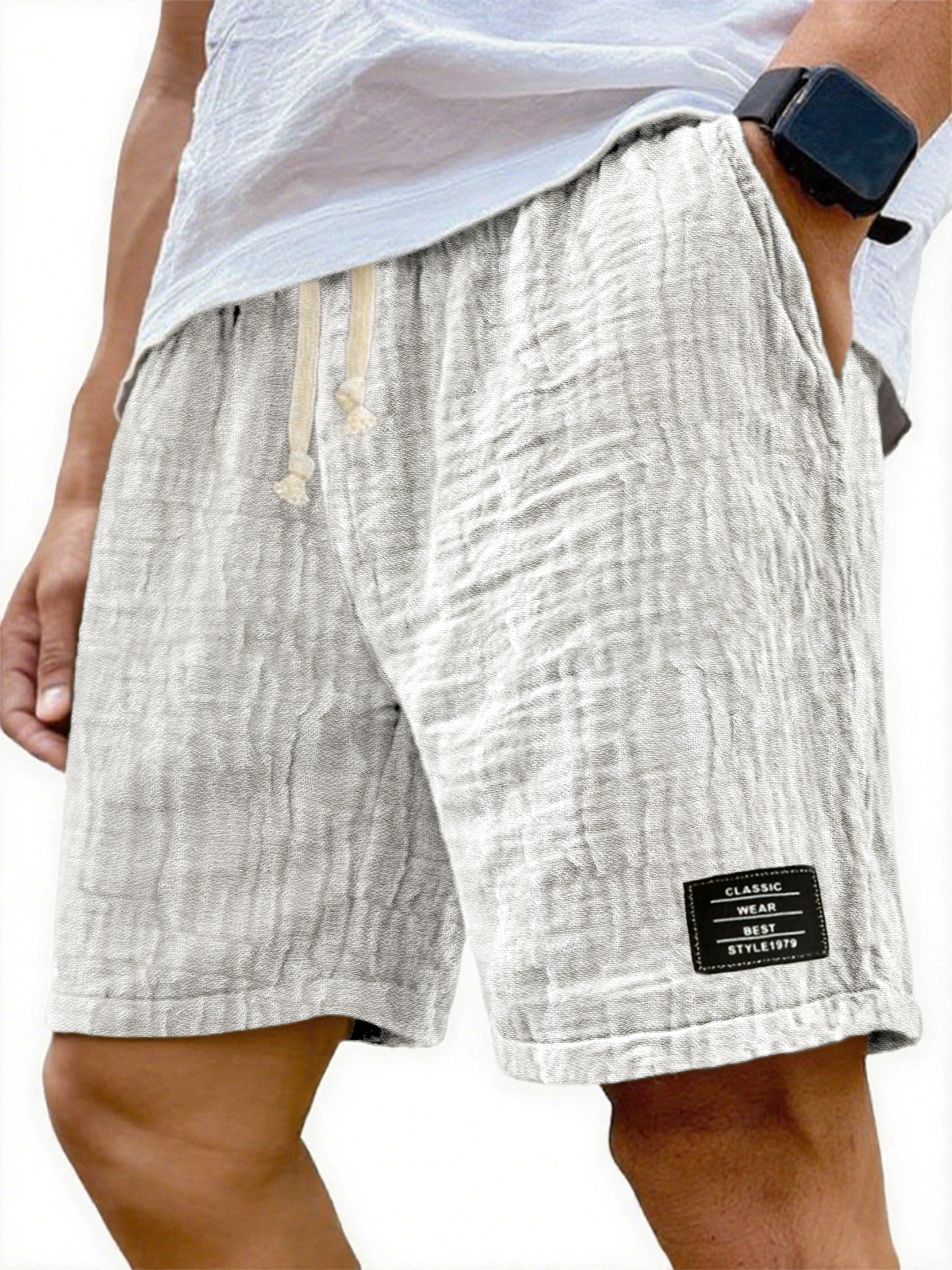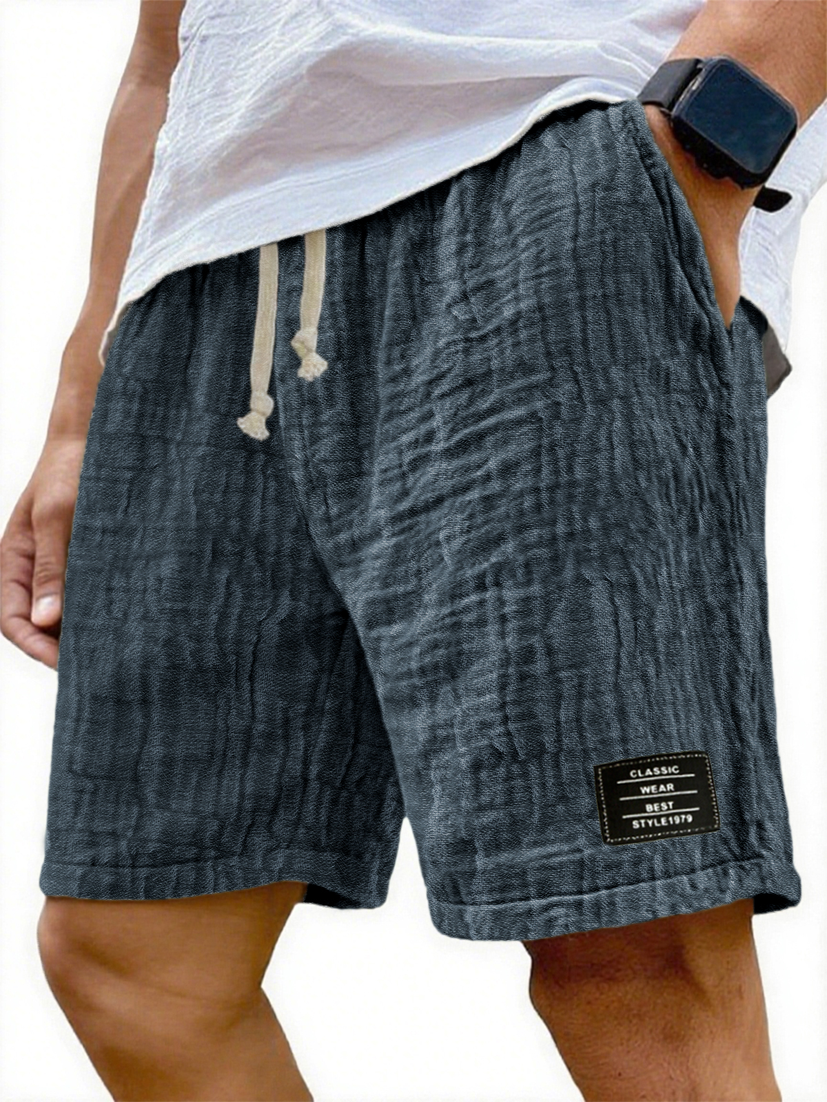 Men's Soft Crinkled Gauze Breathable Holiday Embroidery Lace-up Shorts