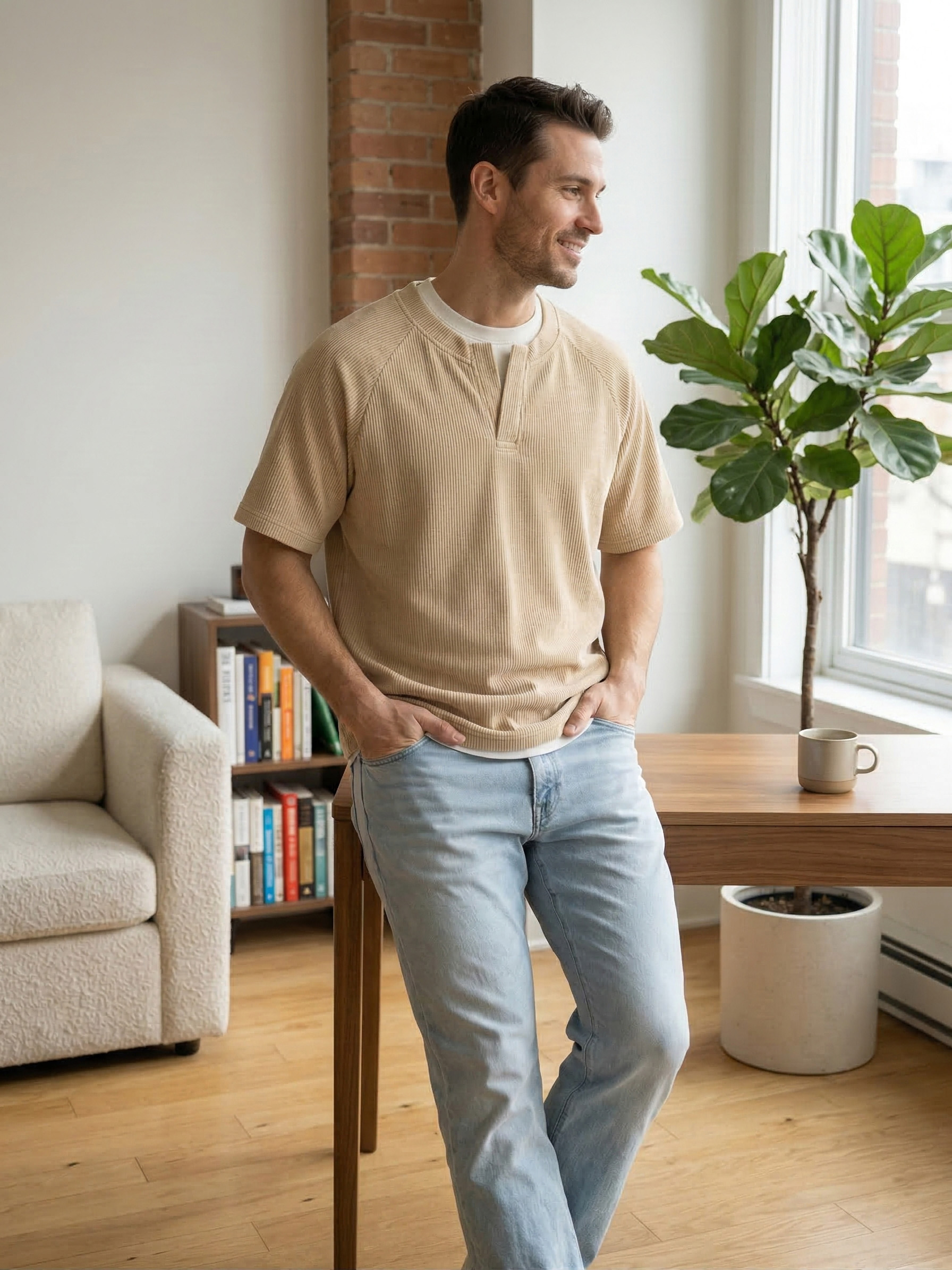 • Fit: Relaxed fit. Not too boxy and not too slim. Designed to be worn untucked. If you're between sizes we recommend sizing up