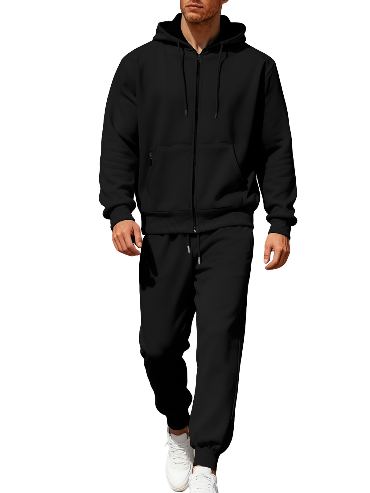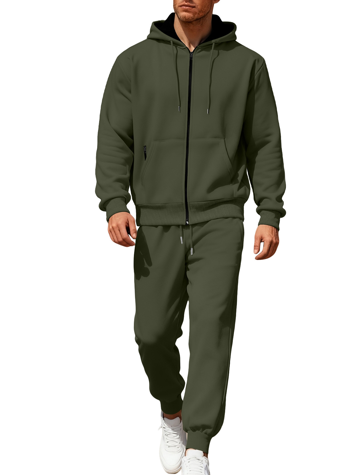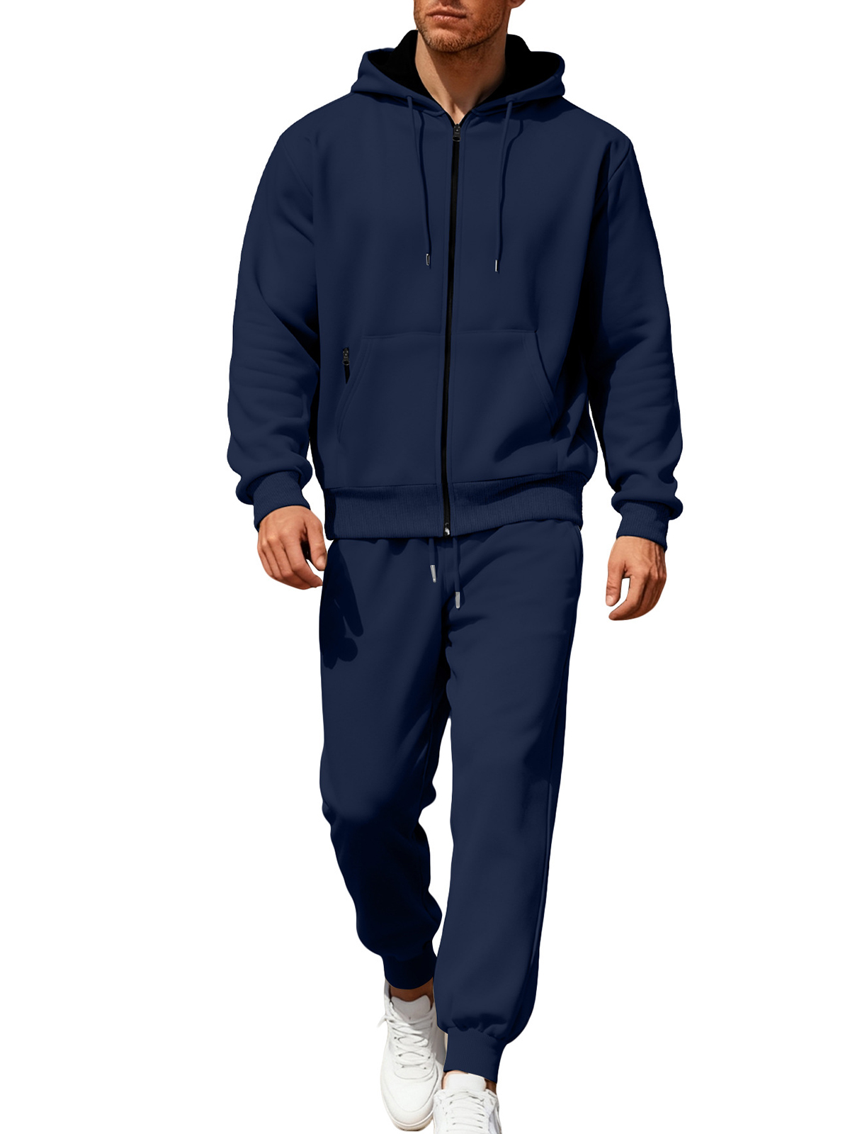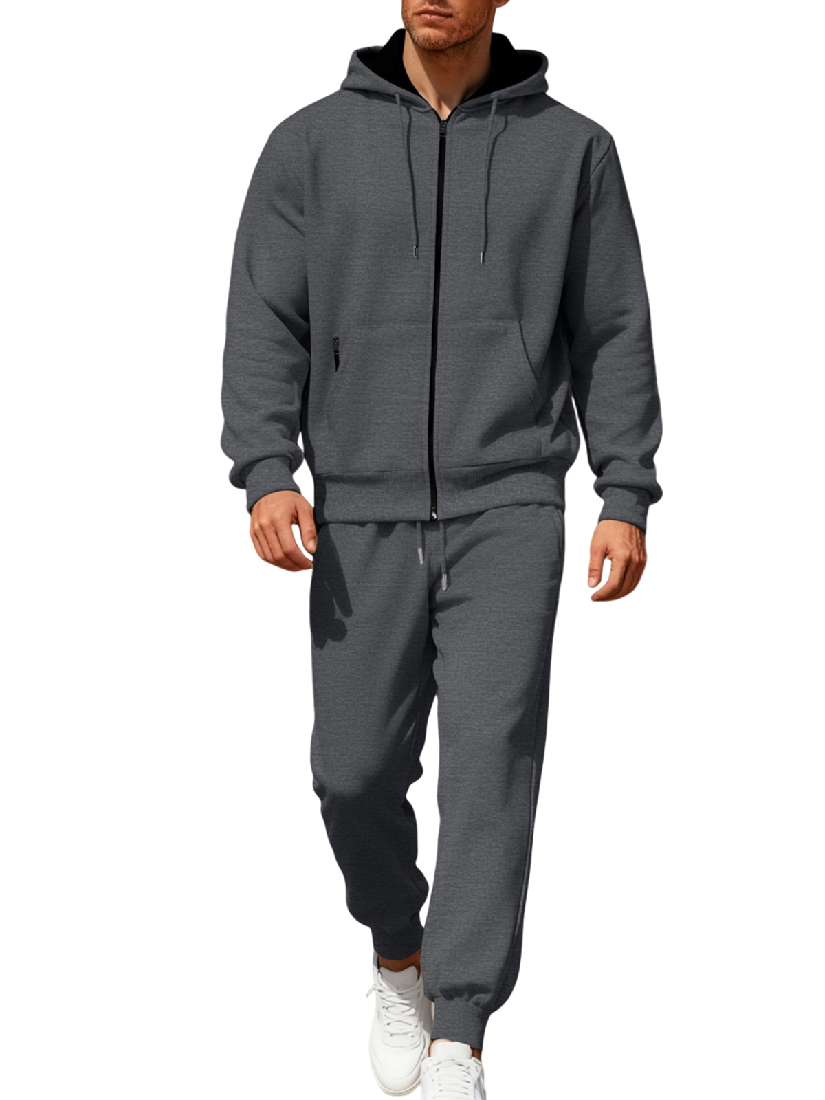 Men's Solid Color Hooded Fleece Warm and Comfortable Sports Casual Long-sleeved Trousers Suit