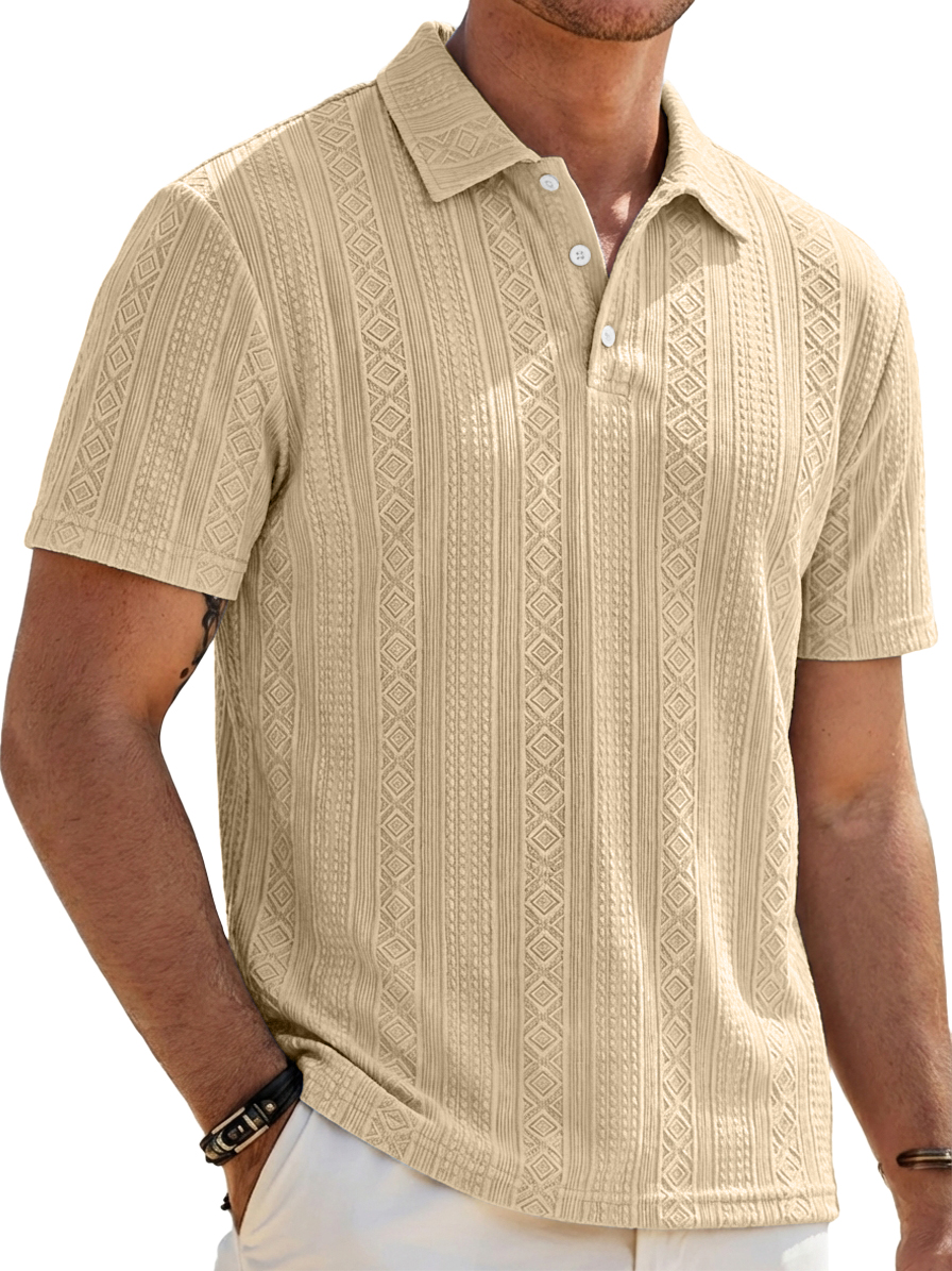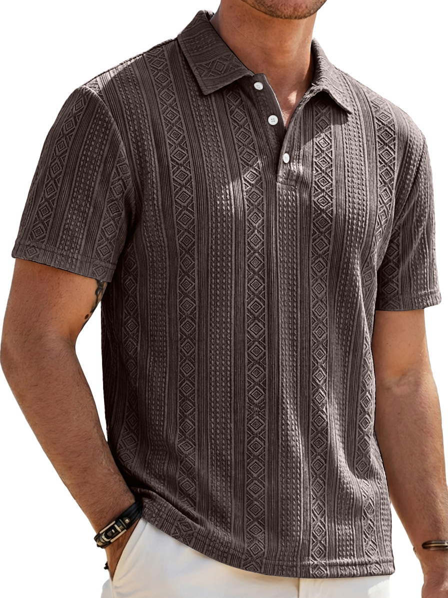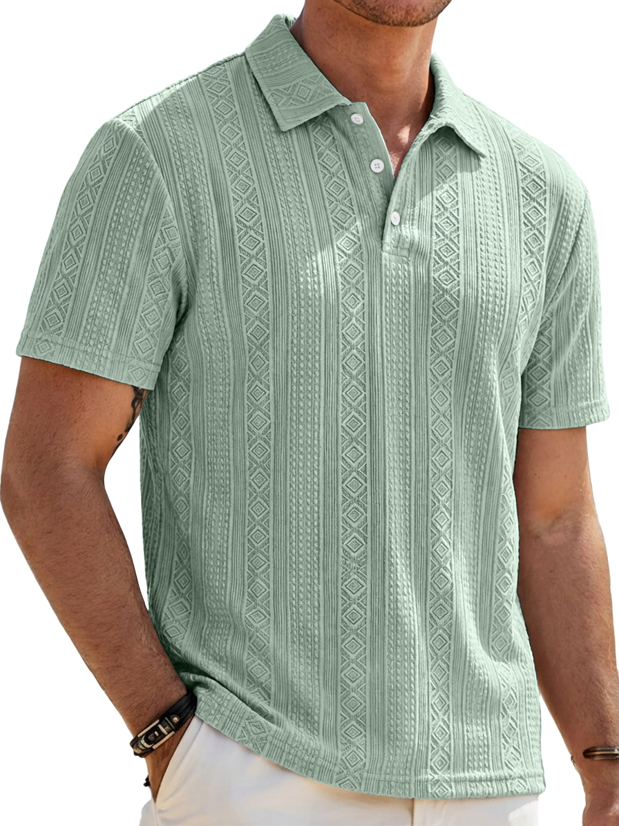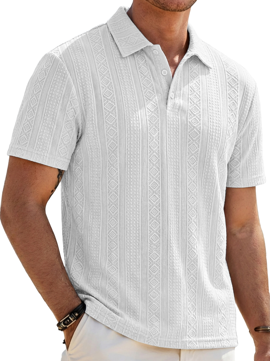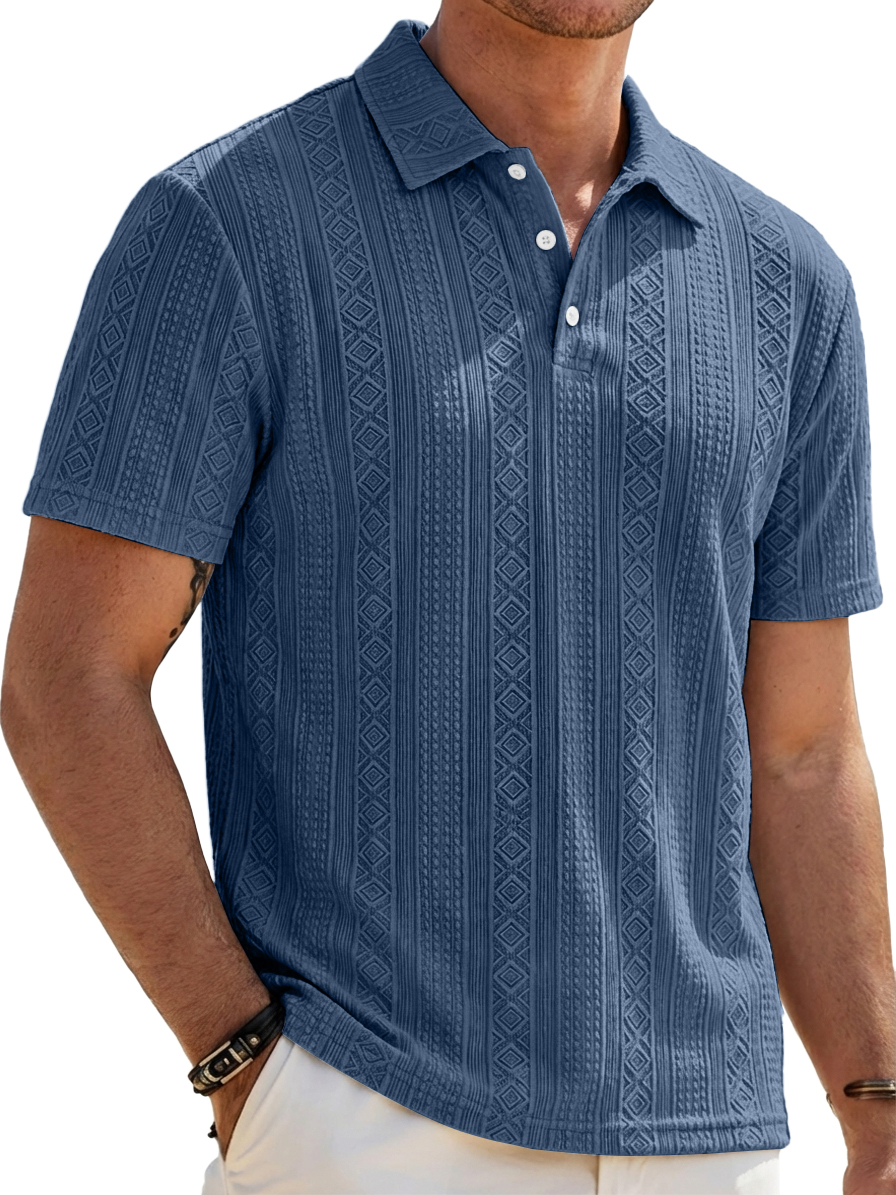 Men's Solid-Color Striped Jacquard Casual Short-Sleeve Polo Shirt