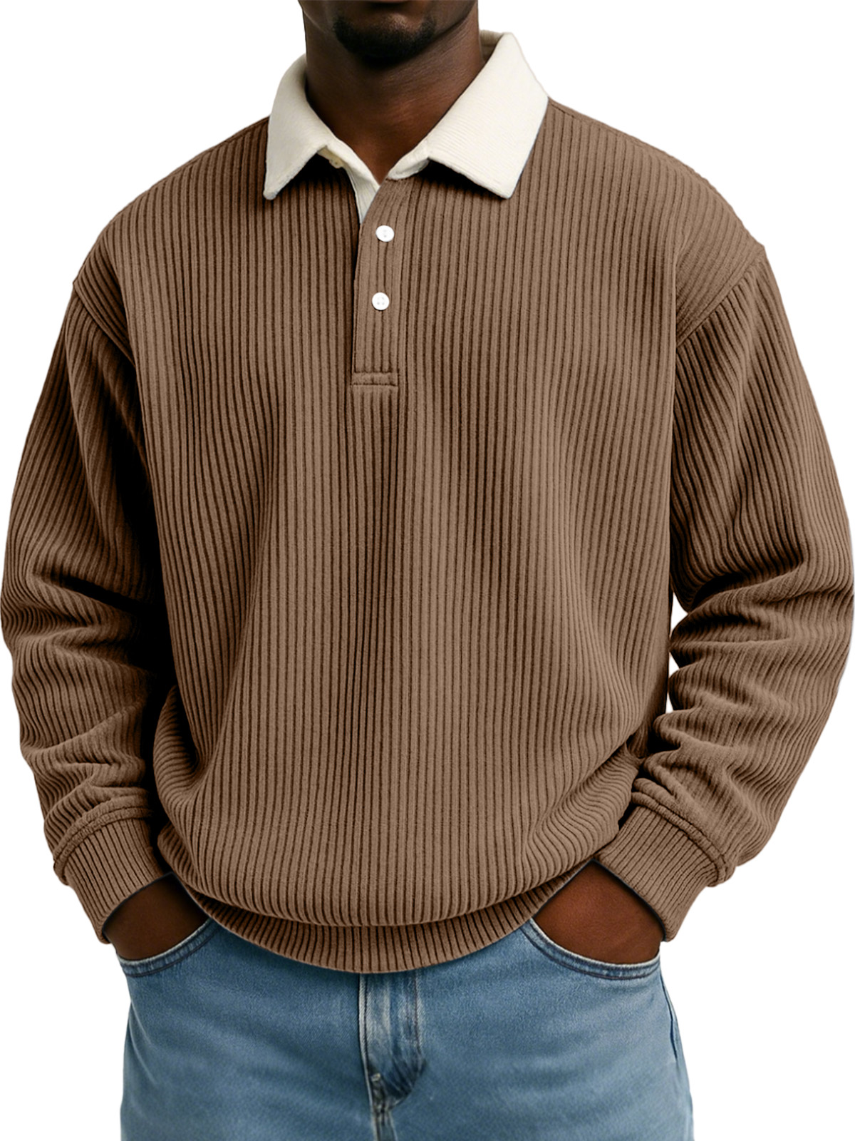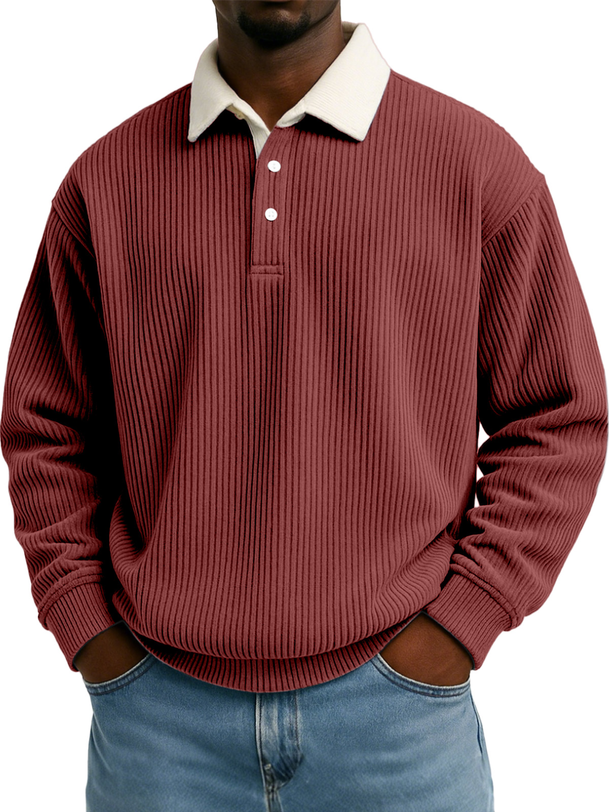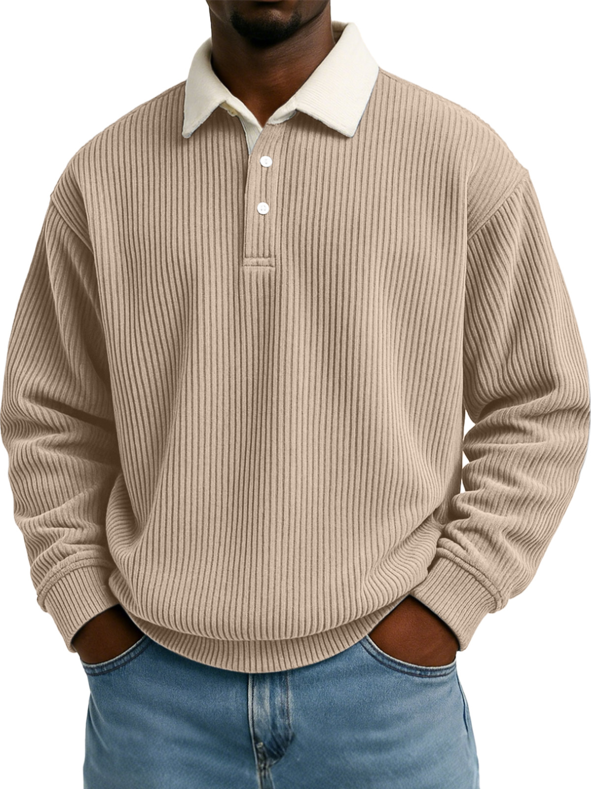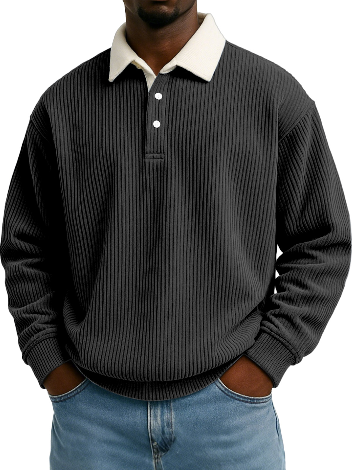 Men's Solid Color Vertical Strip Texture Contrast Color Long Sleeve Lapel Sweatshirt