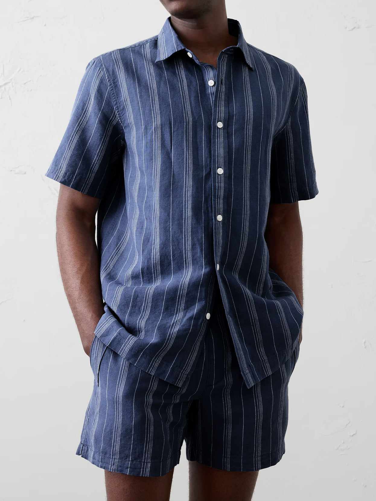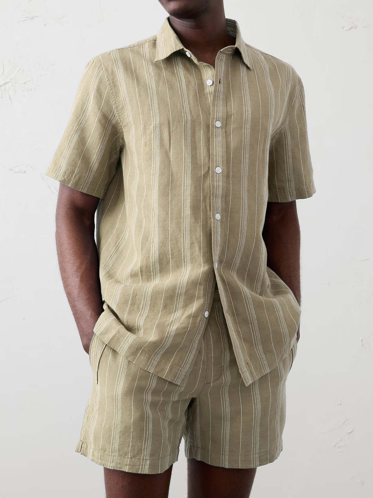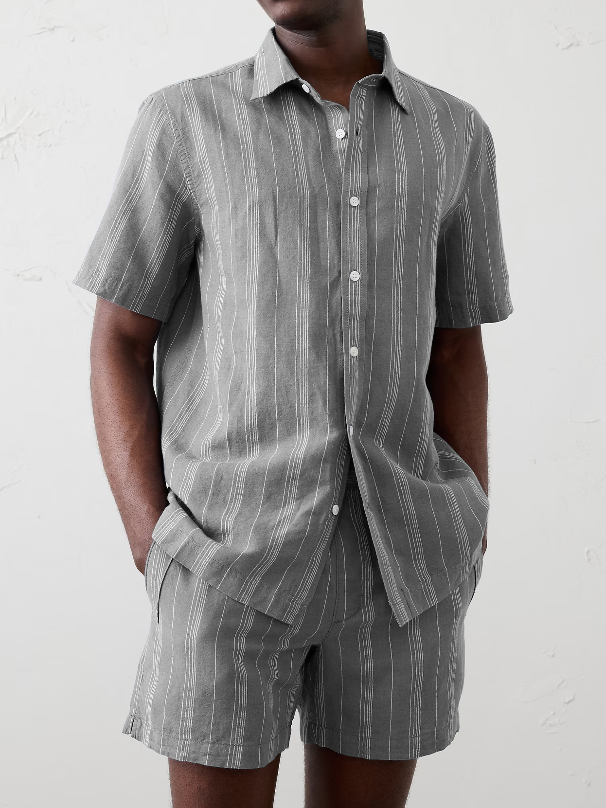 Men's Striped Short-Sleeve Shirt and Pants Two-Piece Casual Set OOTD