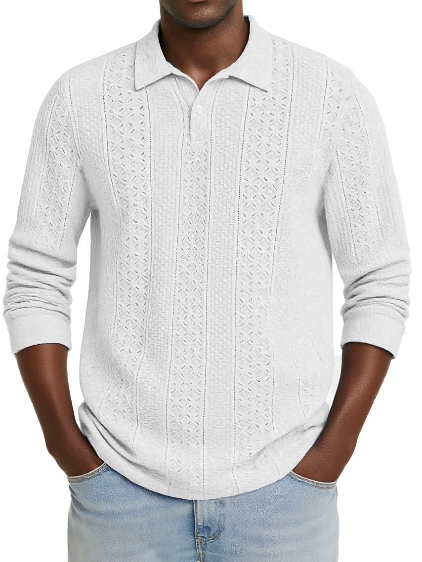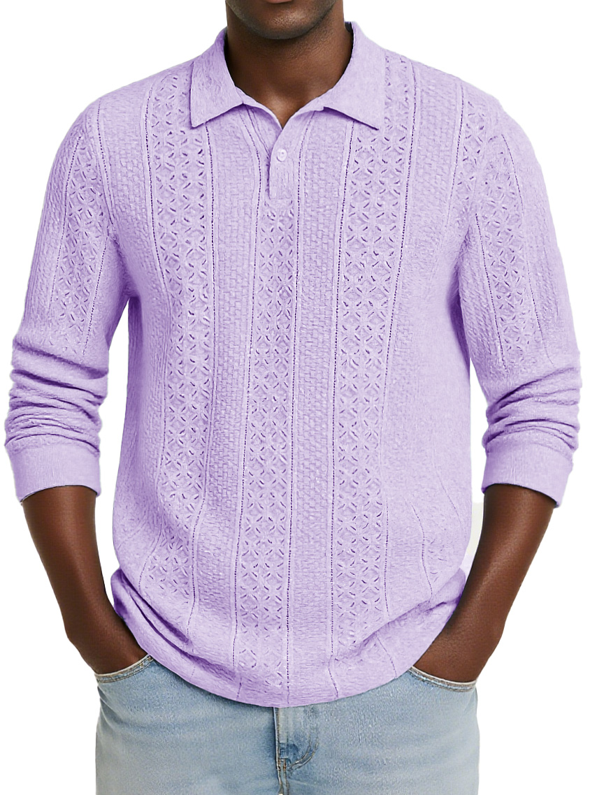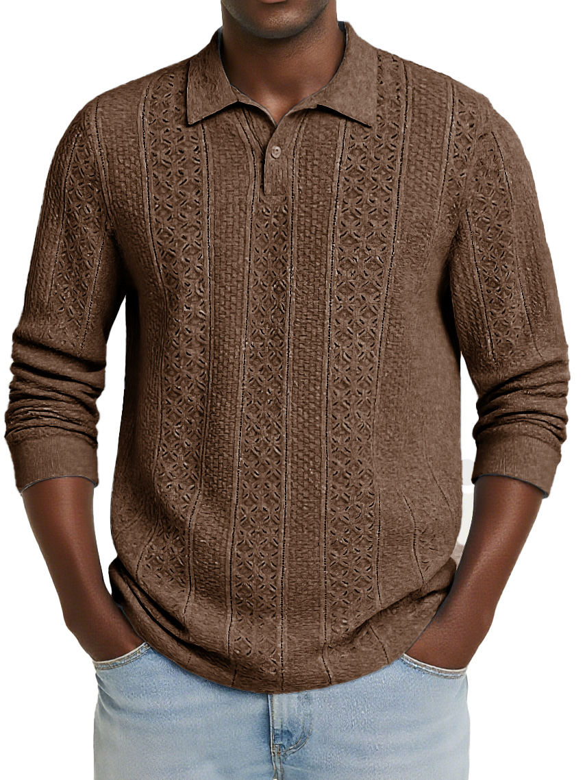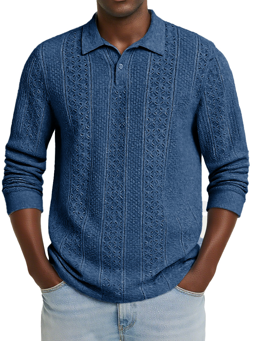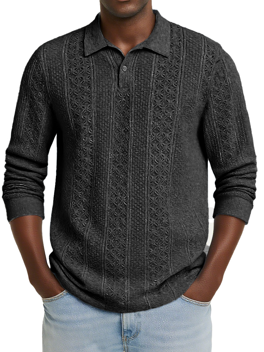 Men's Stylish Casual Jacquard Long-sleeved Lapel Polo Shirt