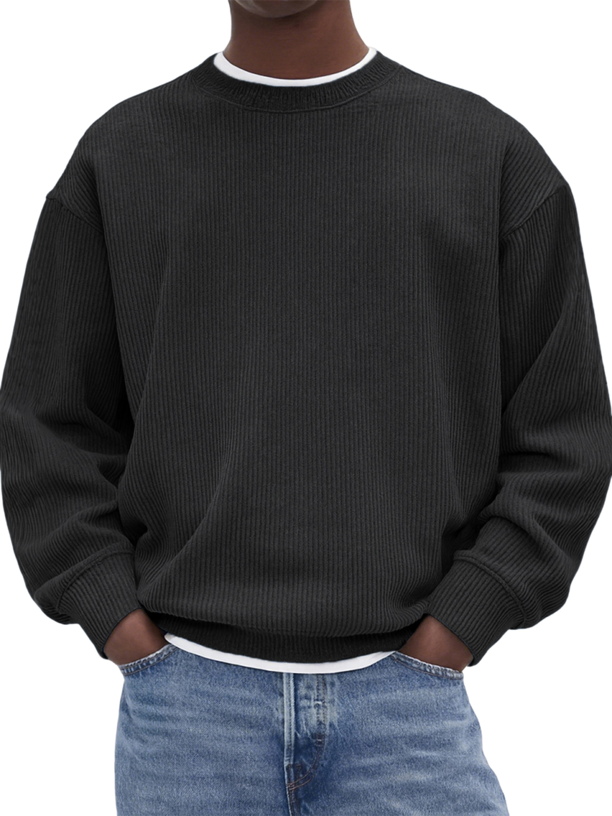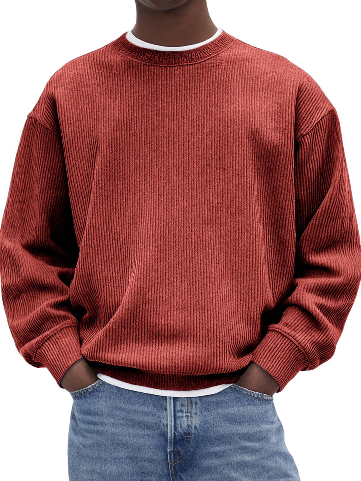 Men's Stylish Corduroy Crew Neck Basic Pullover