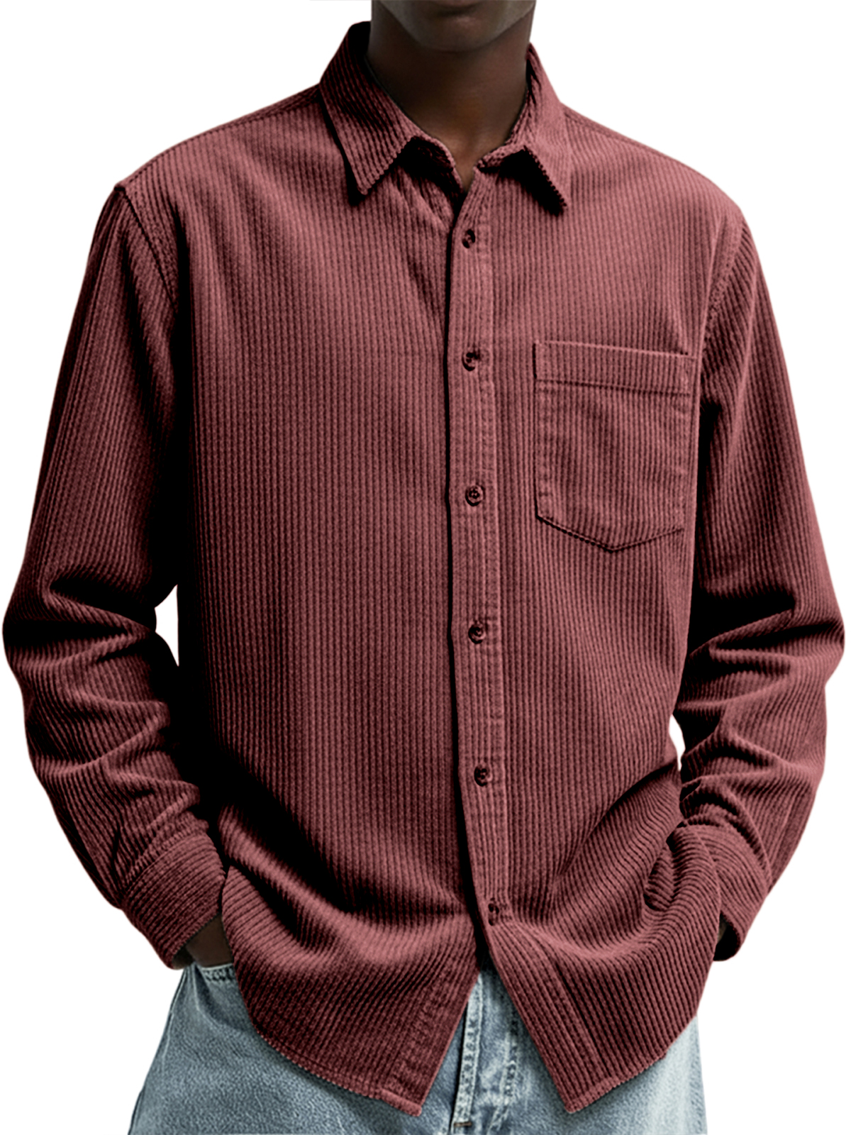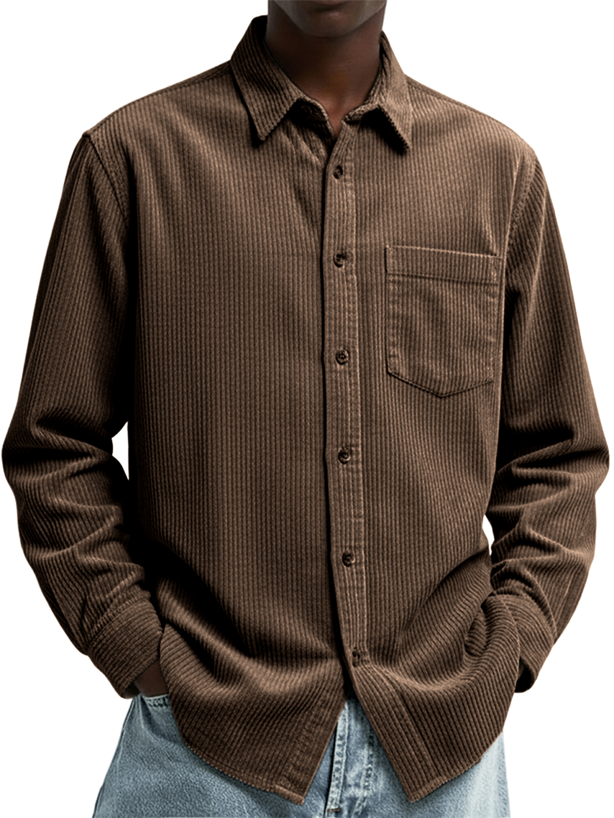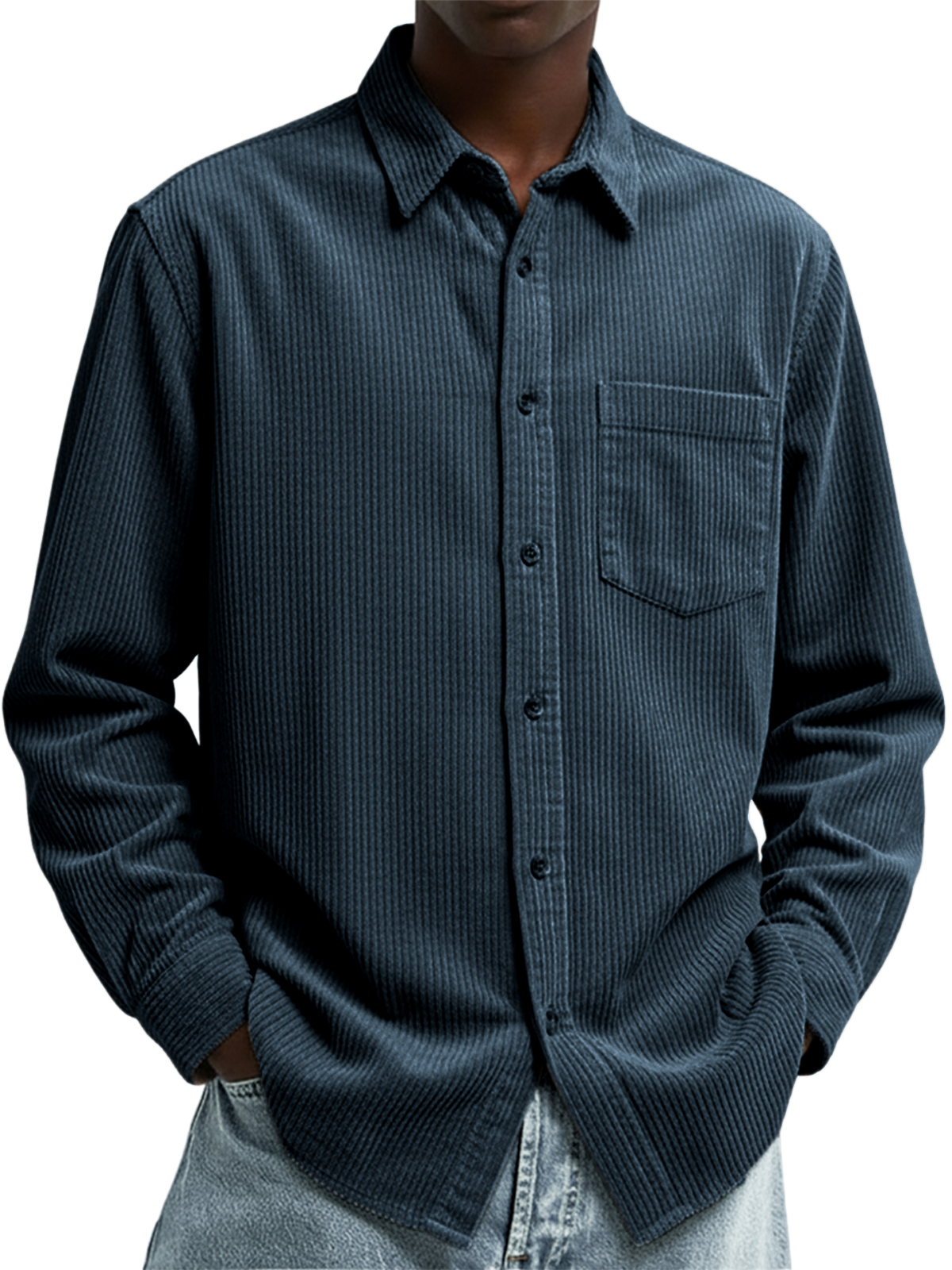 Men's Stylish Corduroy Long-sleeved Shirt with Chest Pocket