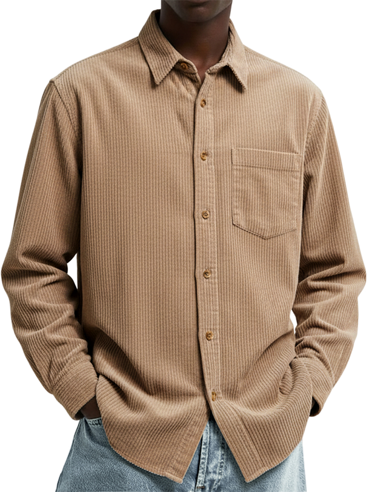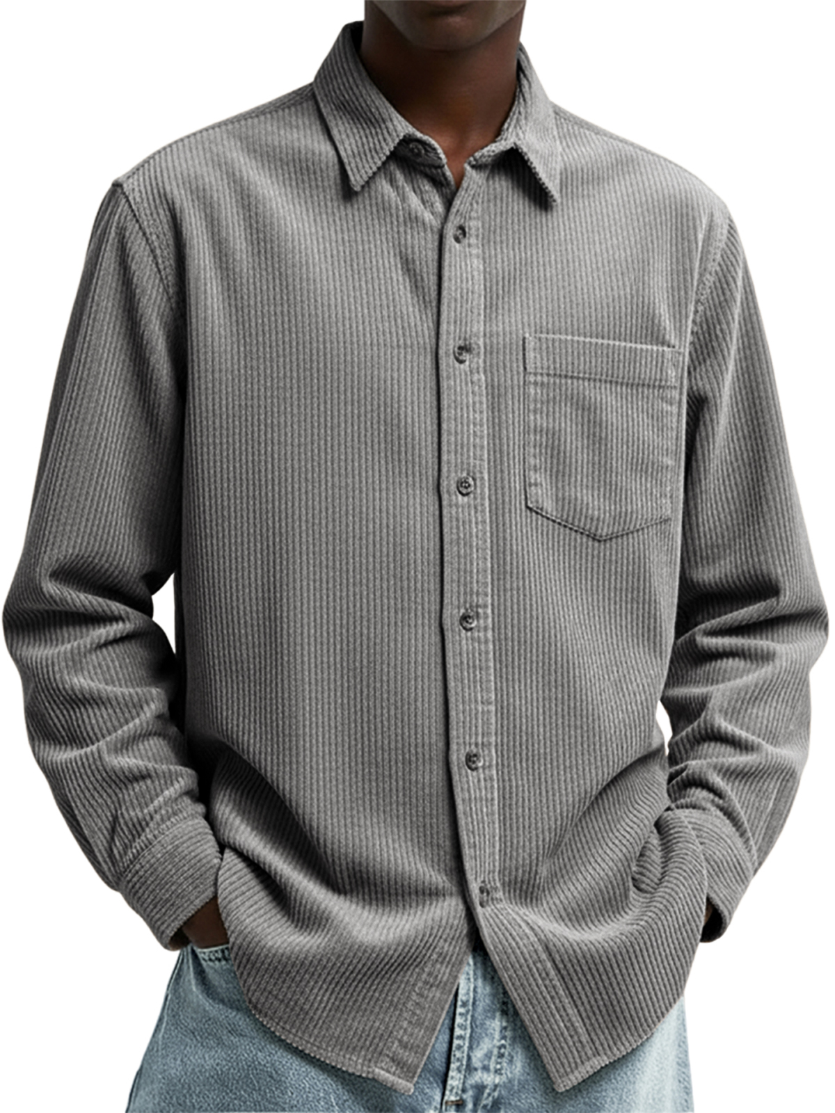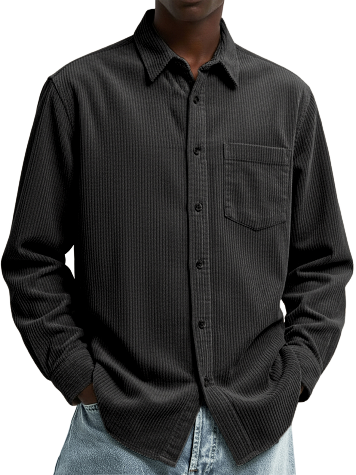 Men's Stylish Corduroy Long-sleeved Shirt with Chest Pocket
