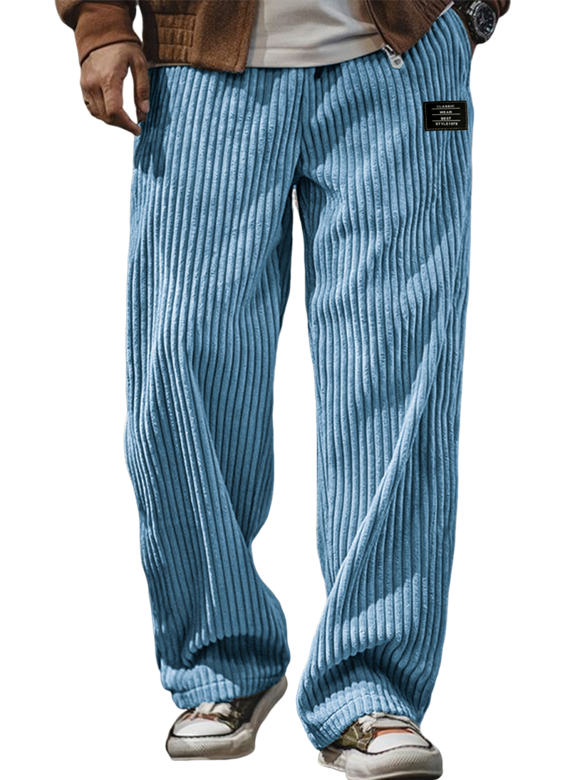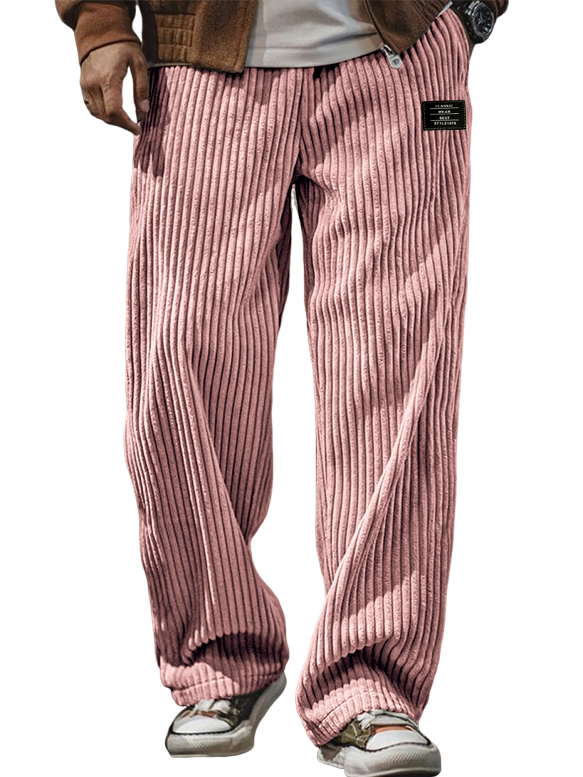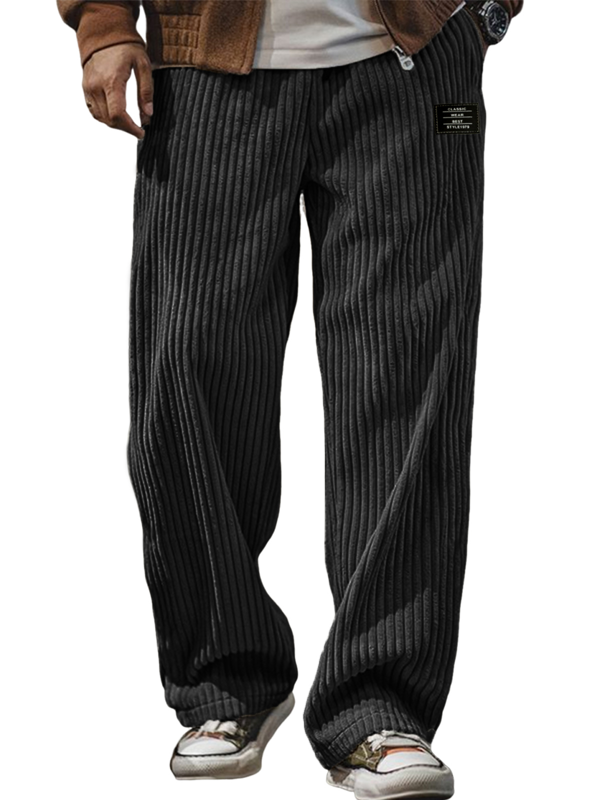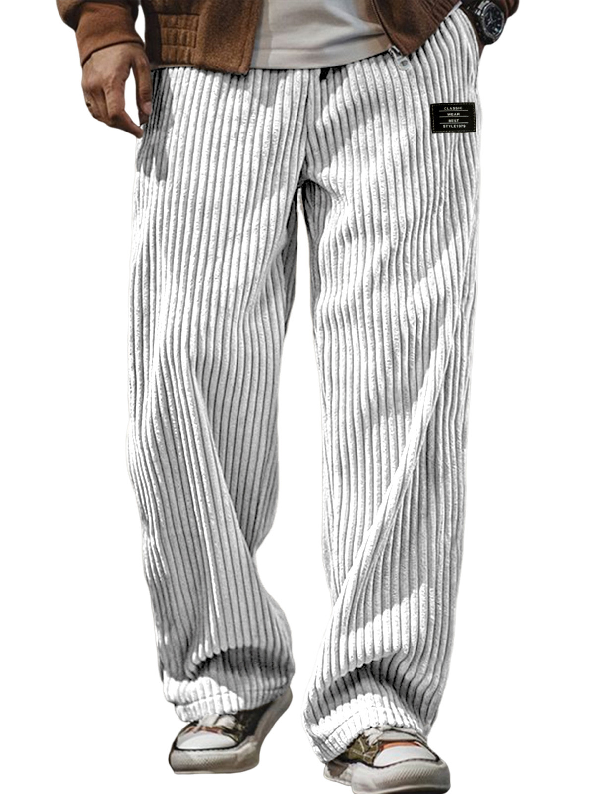 Men's Stylish Corduroy Ribbed Trousers with Embroidered Label