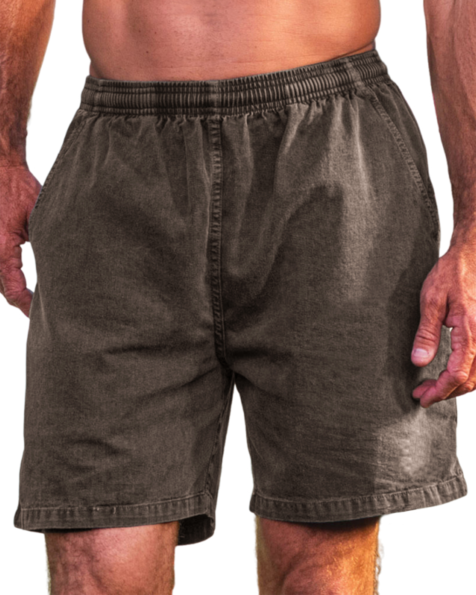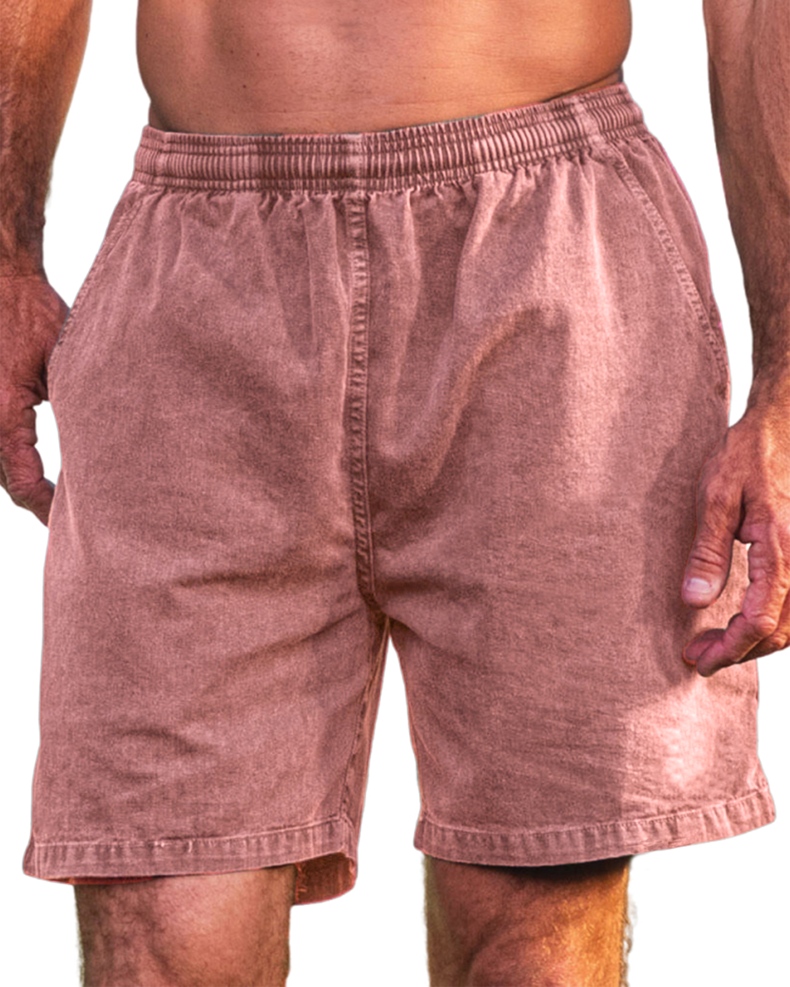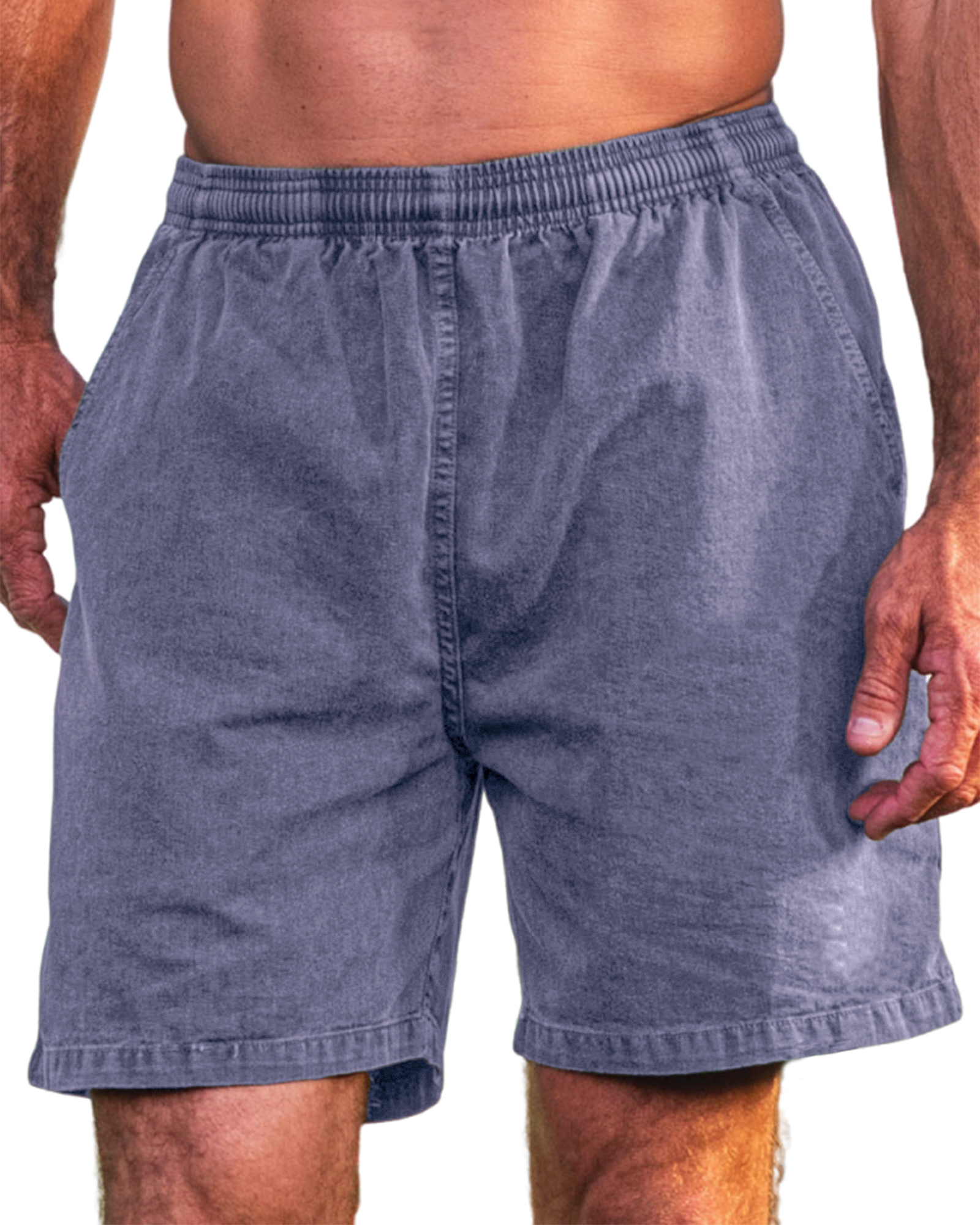 Men's Stylish Cotton Dyed Everyday Casual Elastic Waist Shorts With Side Pockets