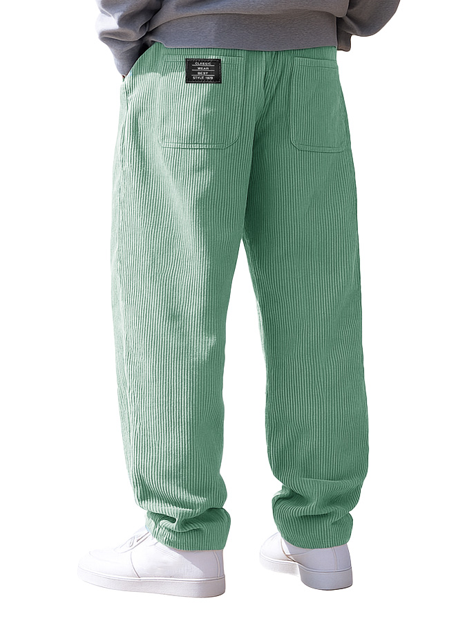 Men's Stylish Everyday Corduroy Fabric Pocket Loose Drawstring Elastic Waist Embroidered Logo Trousers