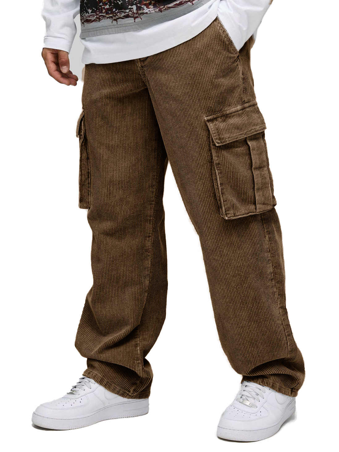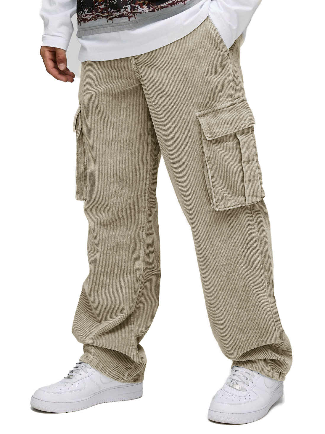 Men's Stylish Retro Corduroy Cargo Pocket Loose Elastic Waist Trousers