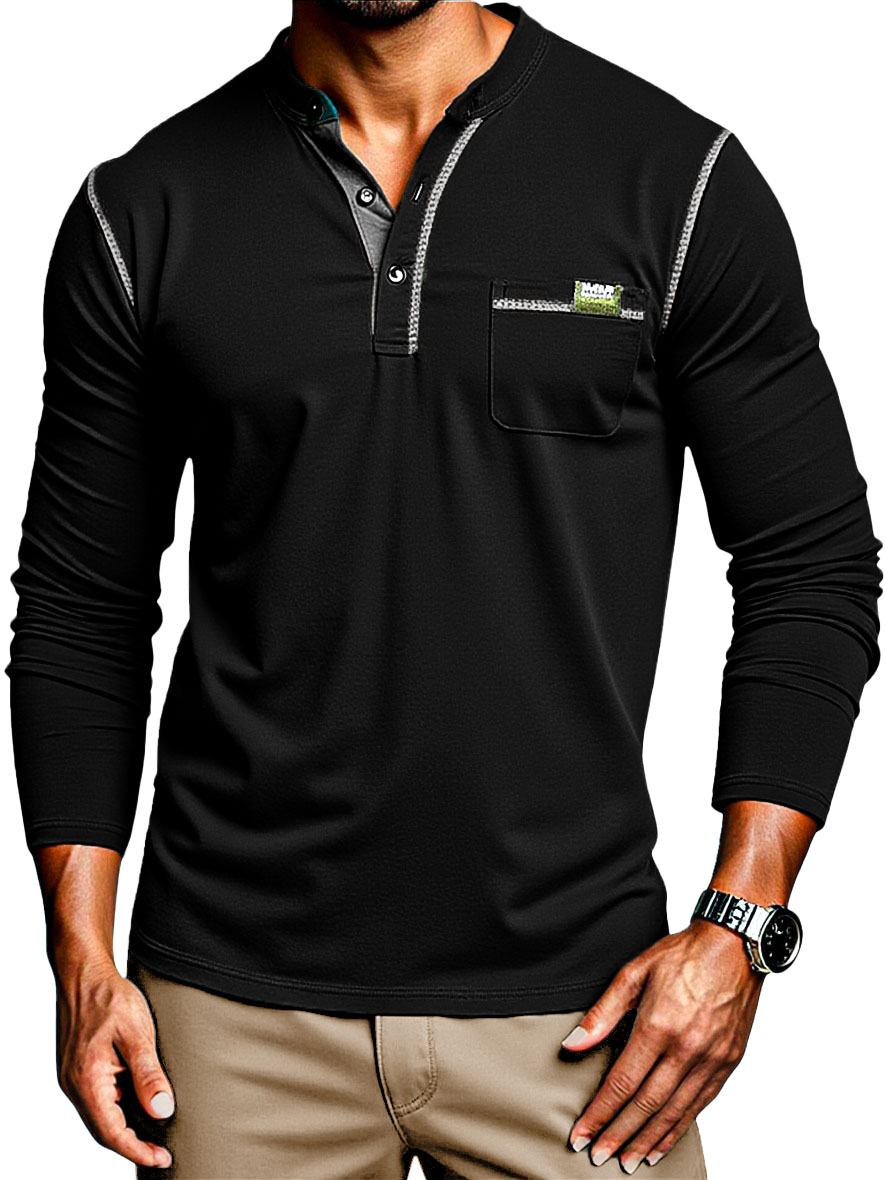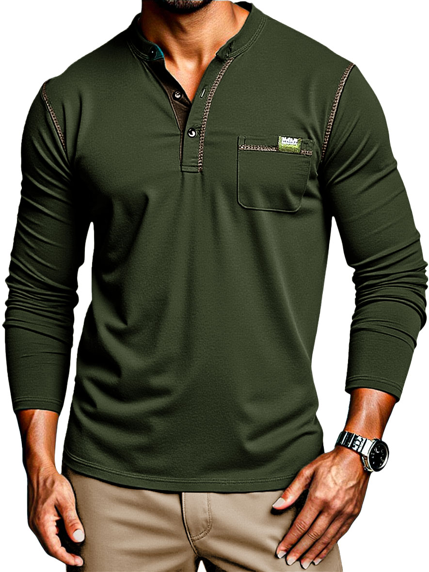 Men's Stylish Retro Outdoor Cotton Patchwork Pocket Short-sleeved Henley Shirt