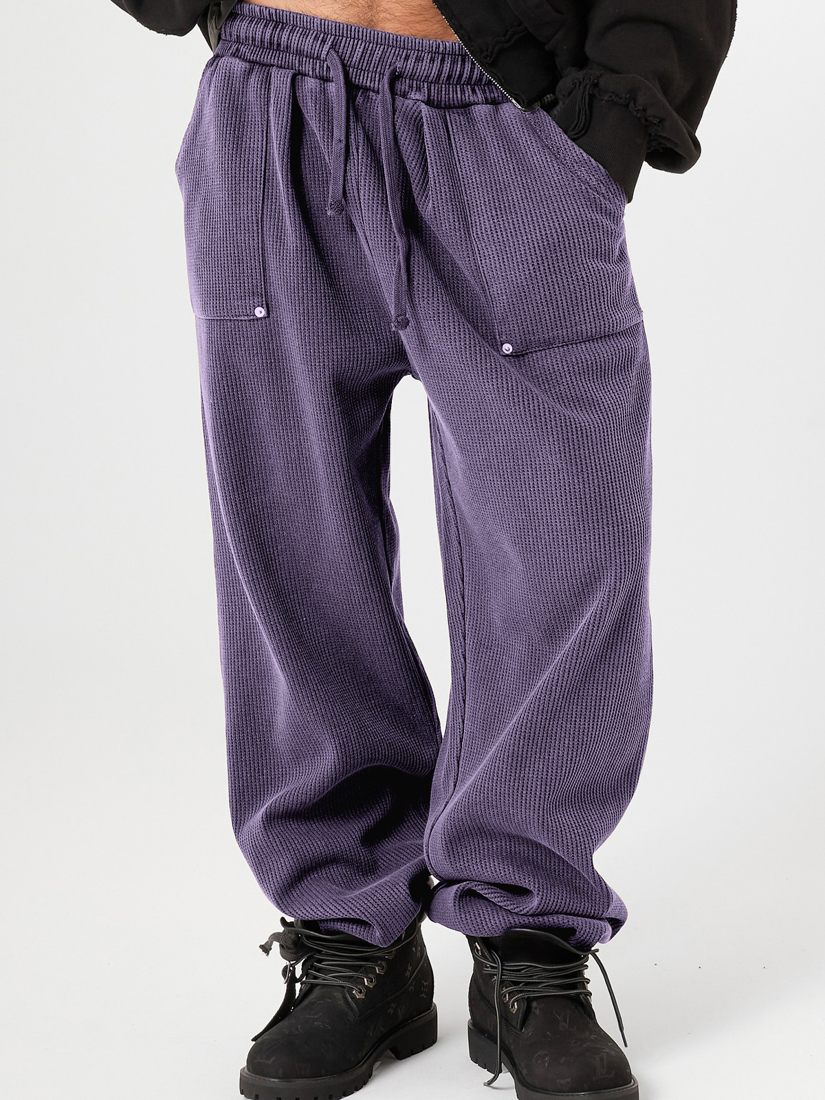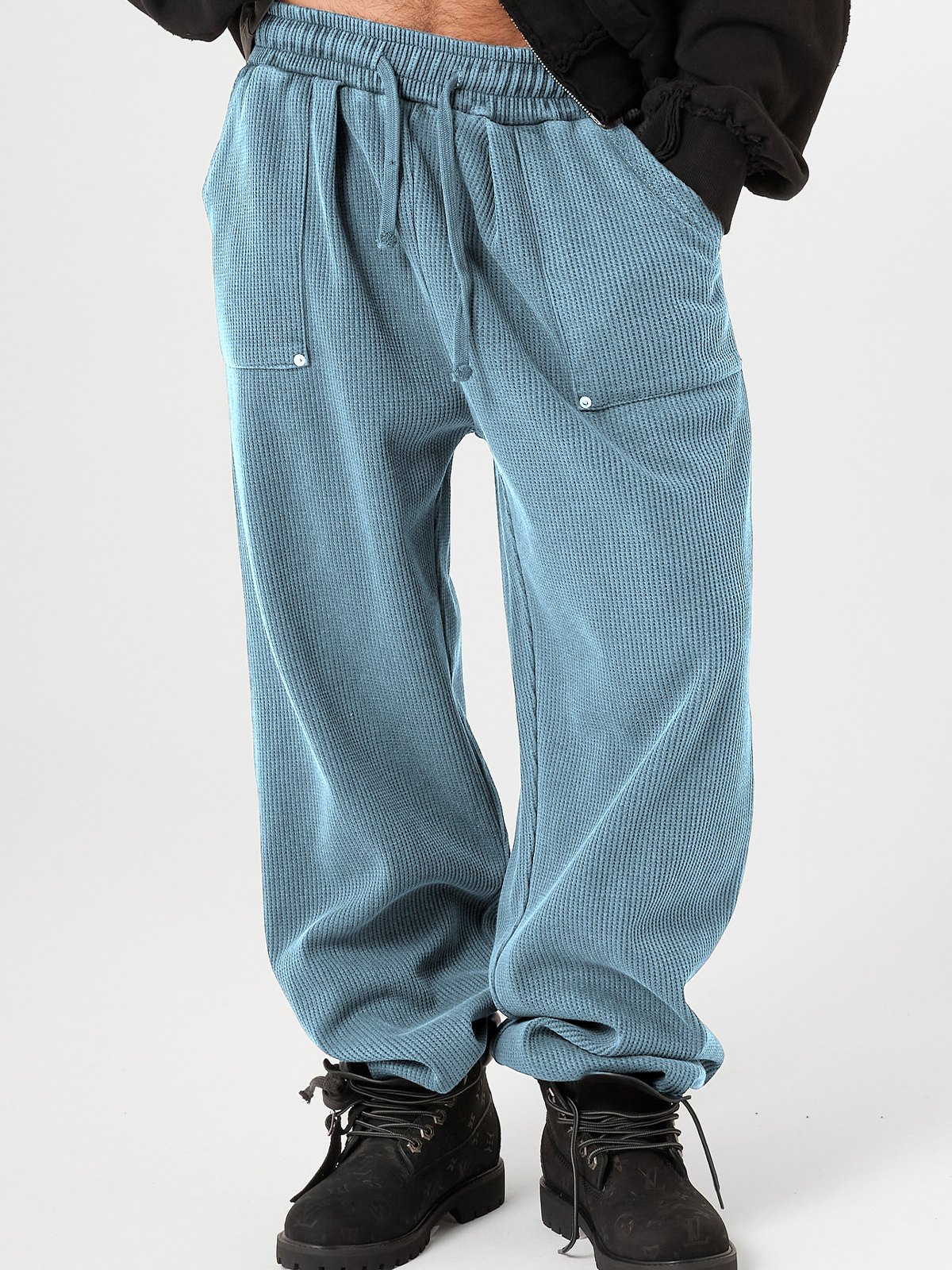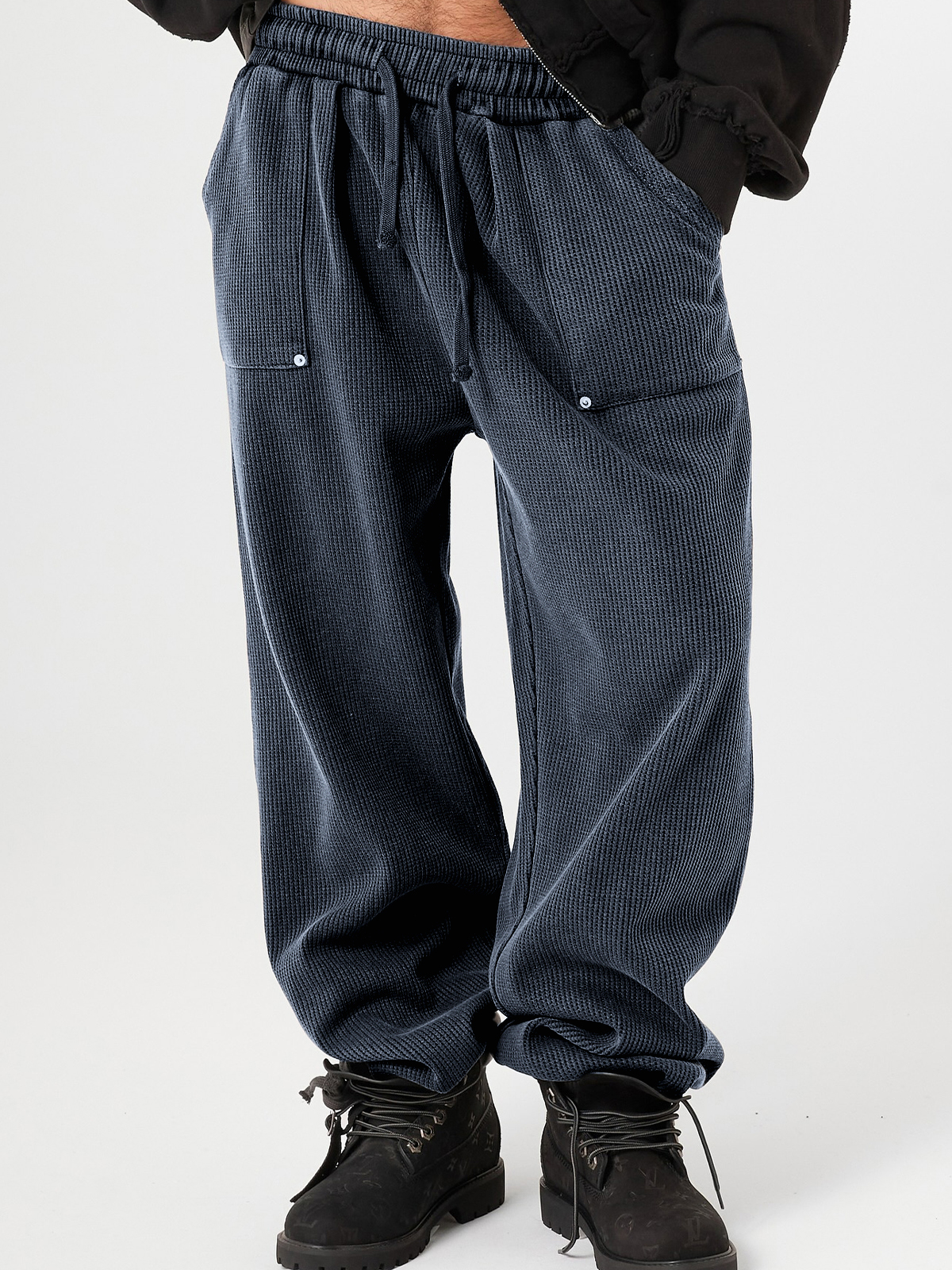Men's Stylish Waffle-Knit Patchwork Design Baggy Pants