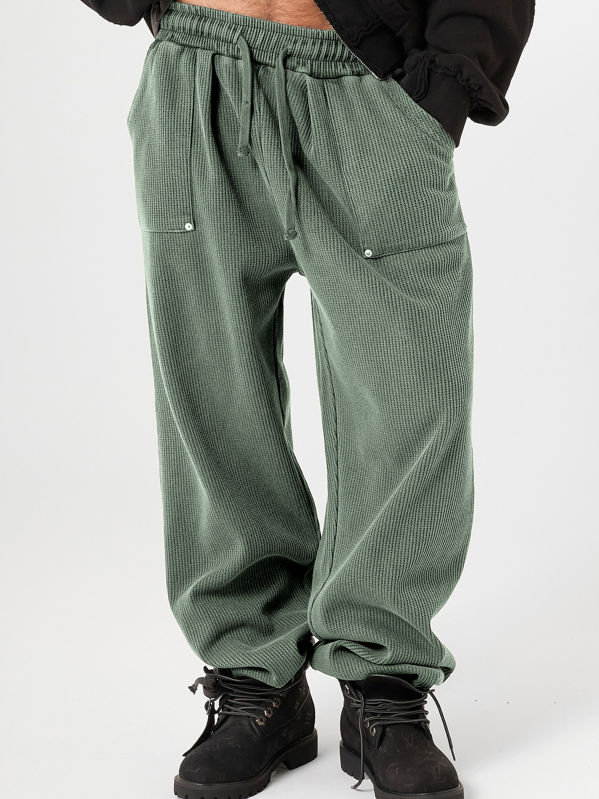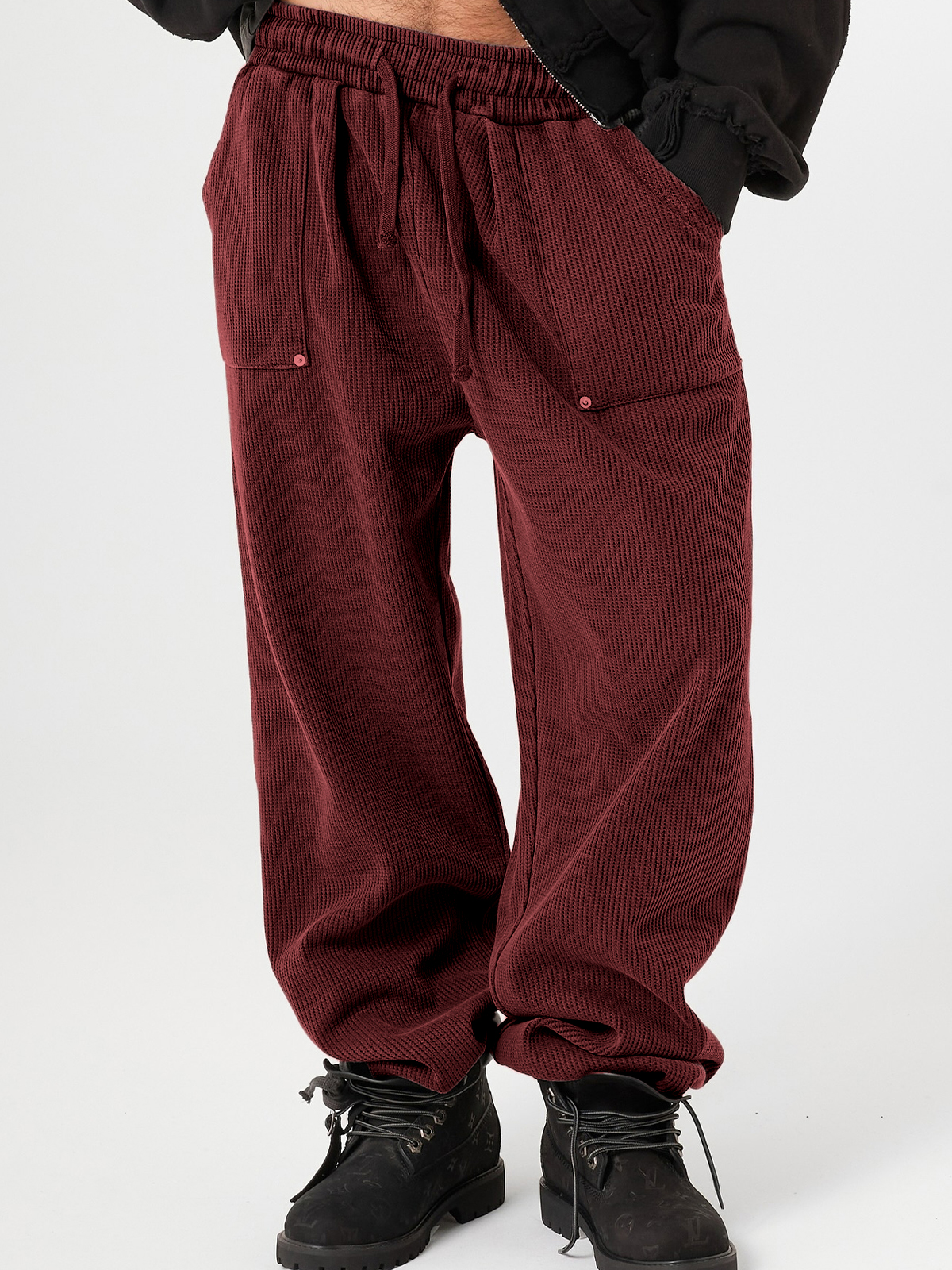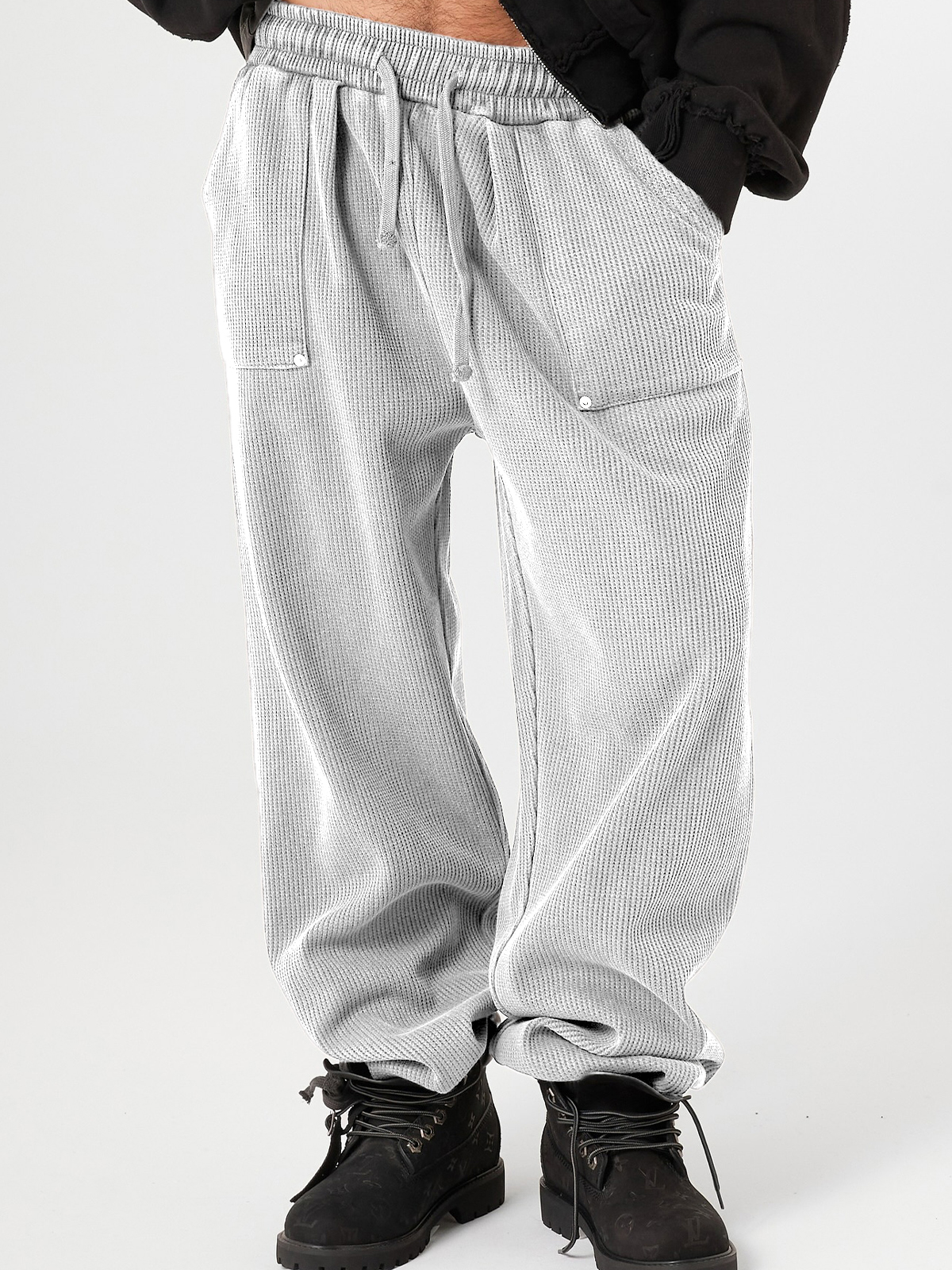 Men's Stylish Waffle-Knit Patchwork Design Baggy Pants