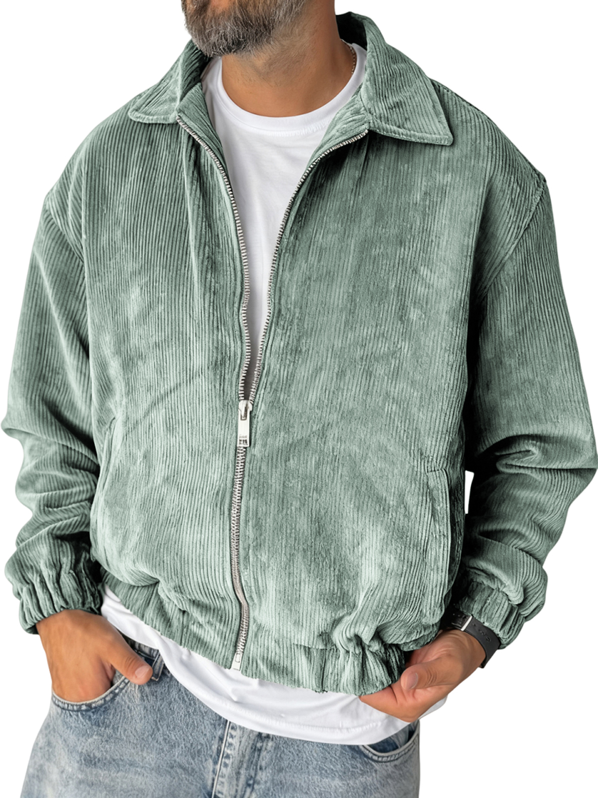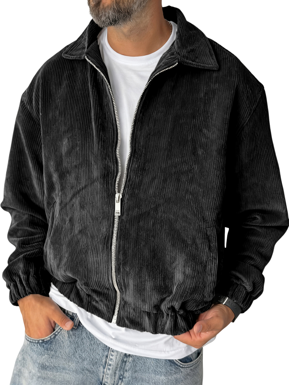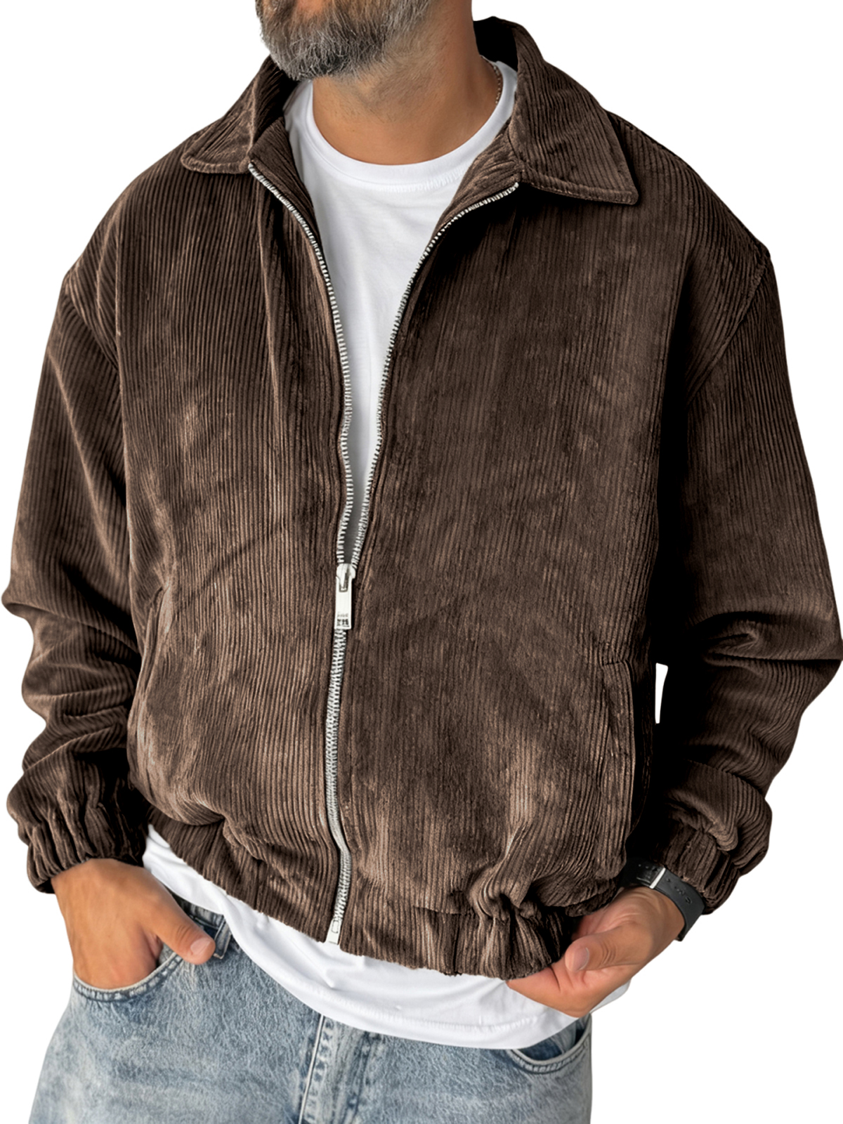 Men's Stylish Zip-up Corduroy Ribbed Casual Everyday Jacket