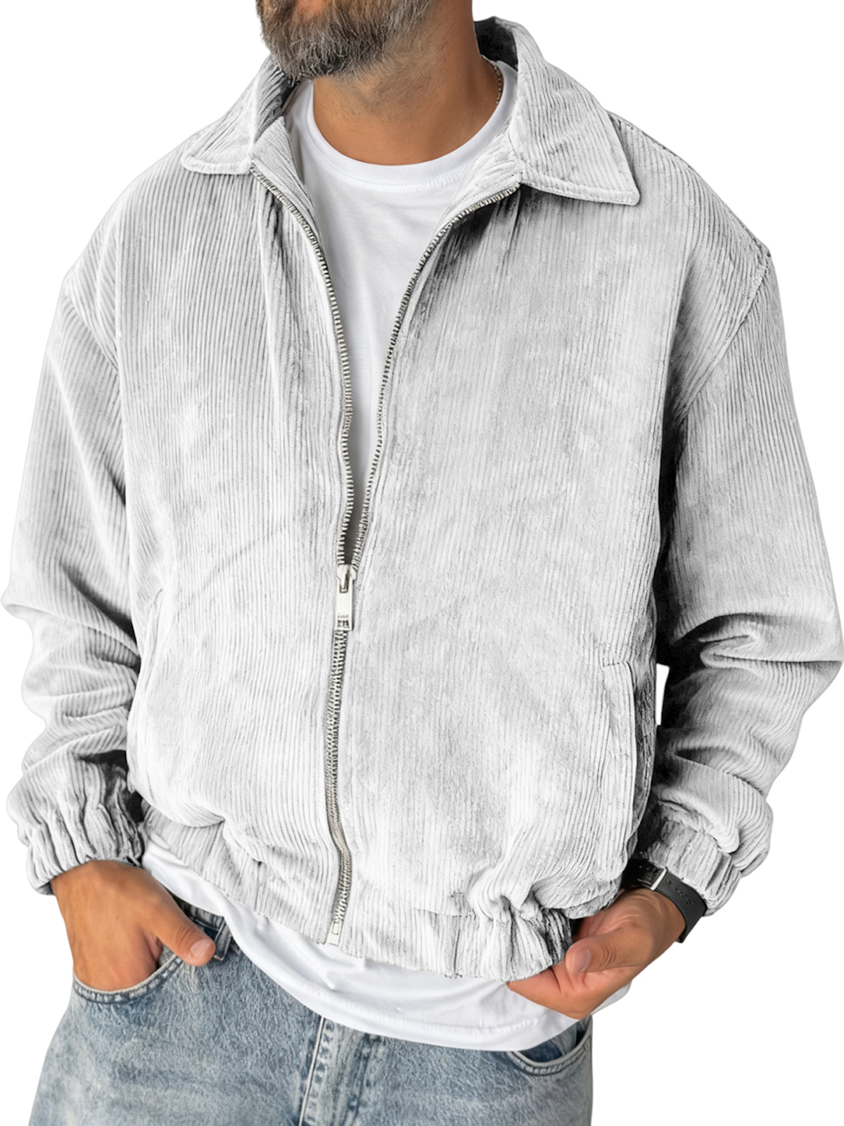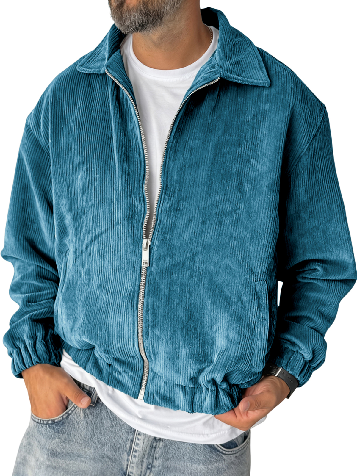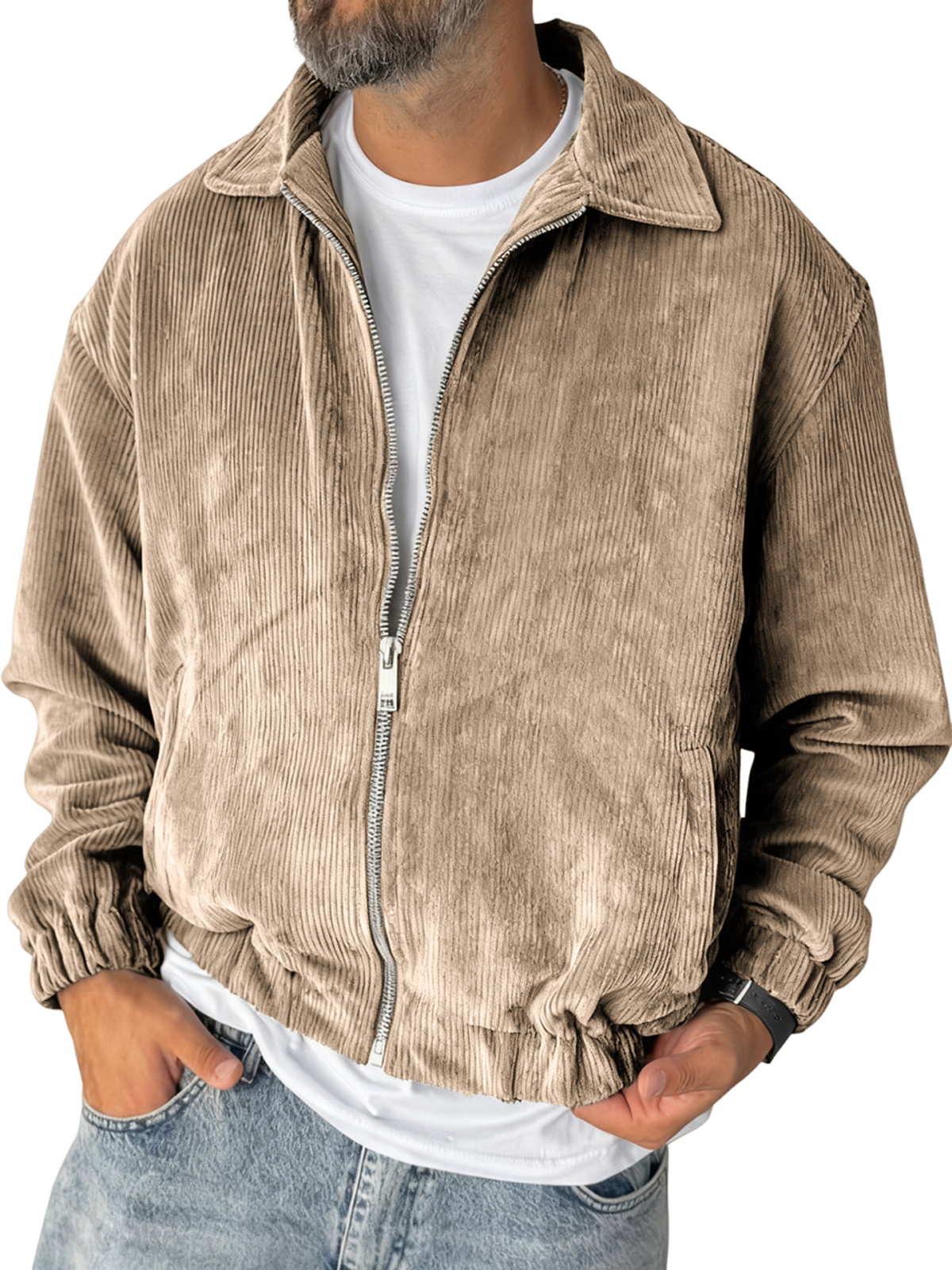 Men's Stylish Zip-up Corduroy Ribbed Casual Everyday Jacket