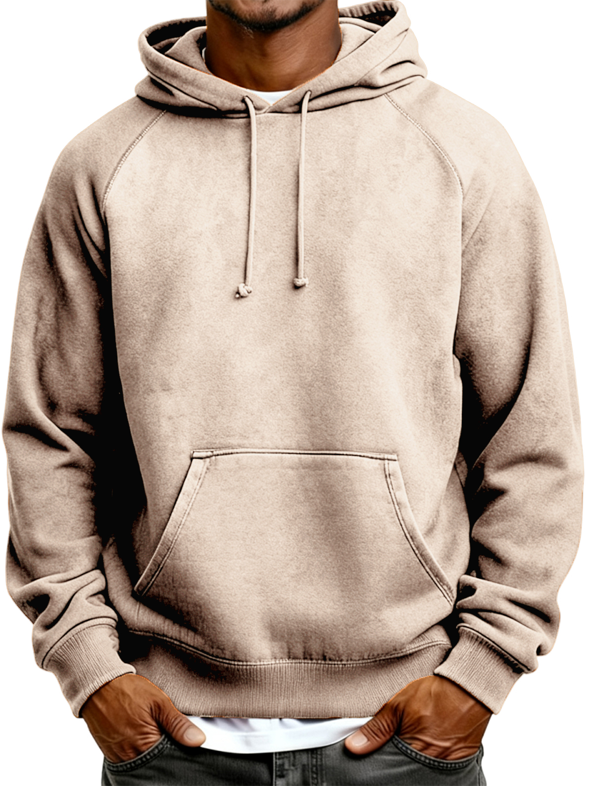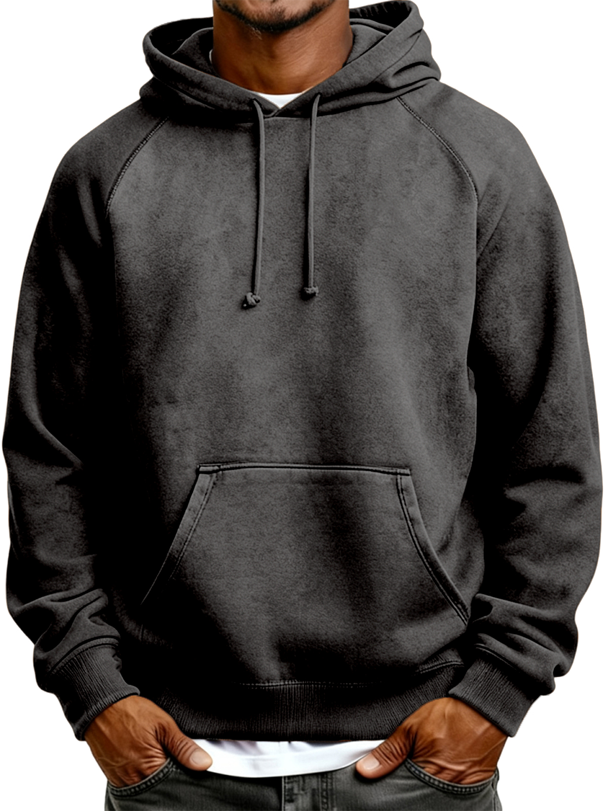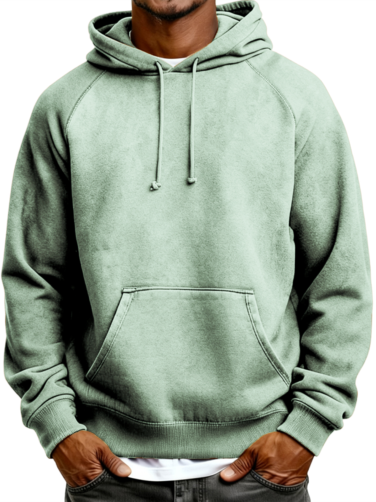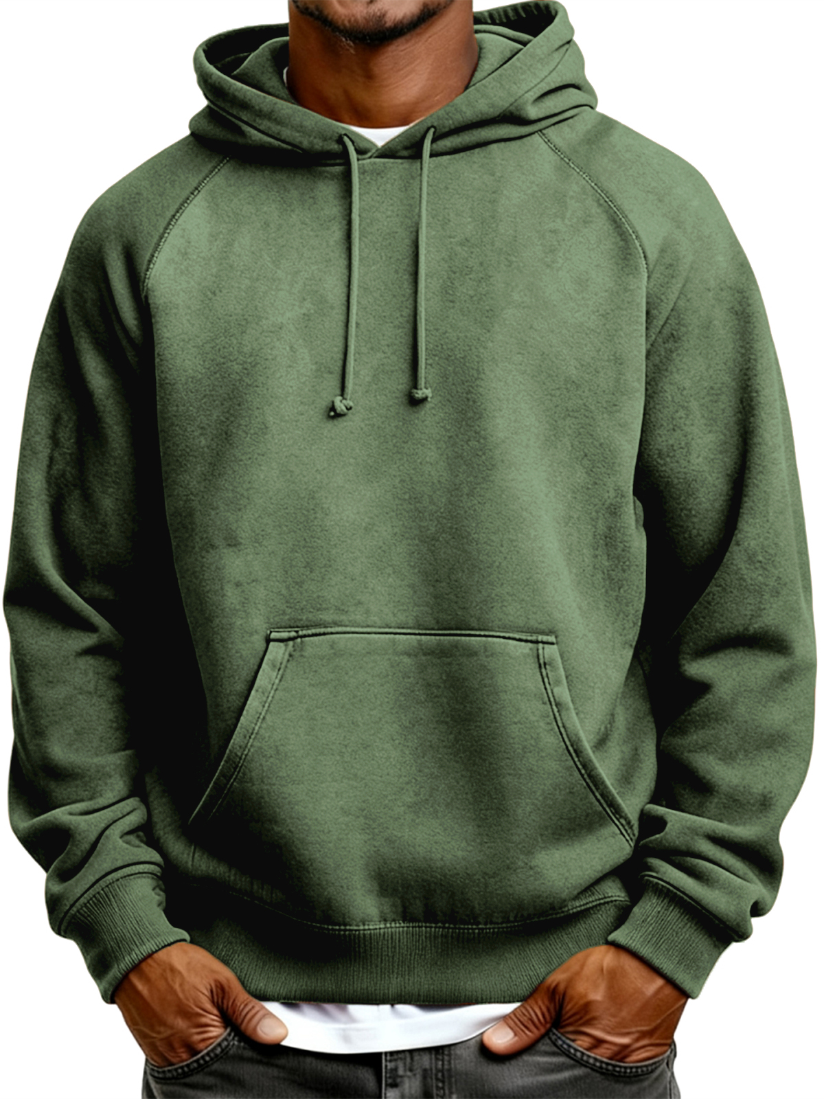 Men's Suede Raglan Sleeve Pullover Hooded Sweatshirt