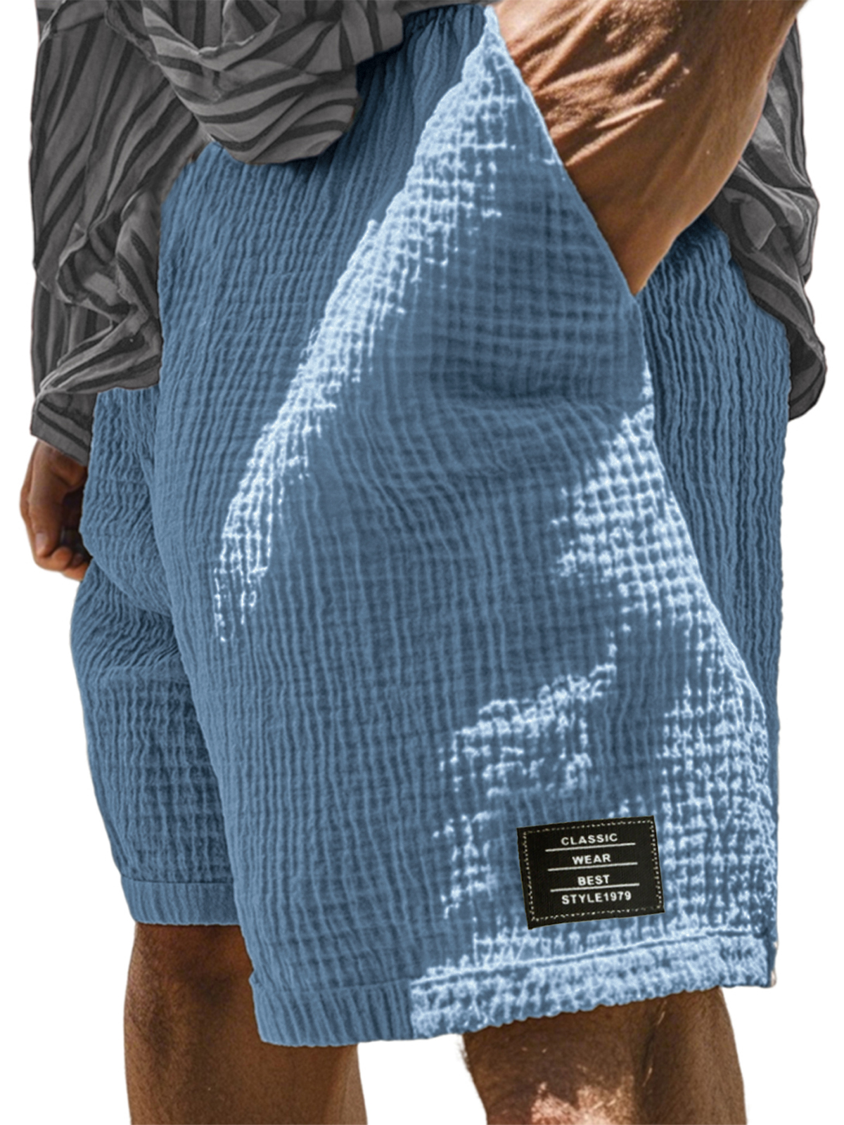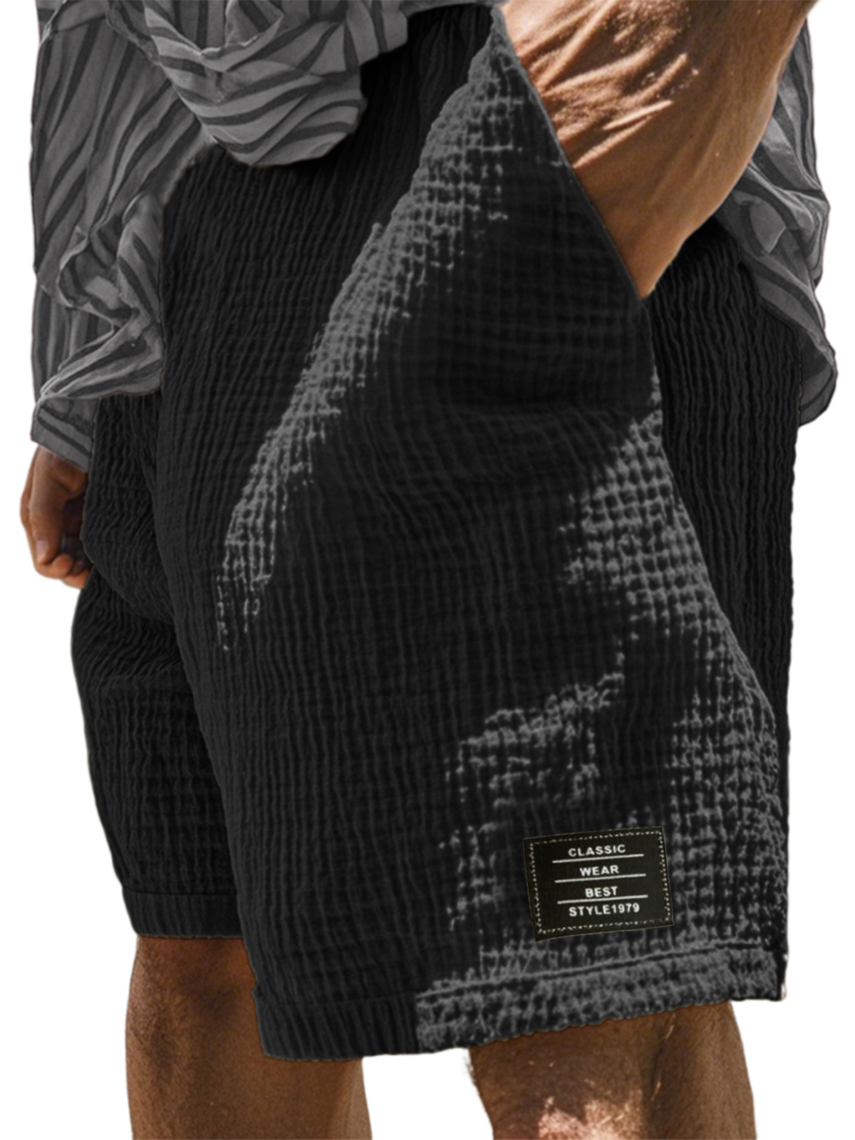 Men's Textured Pleated Label Embroidered Beach Shorts