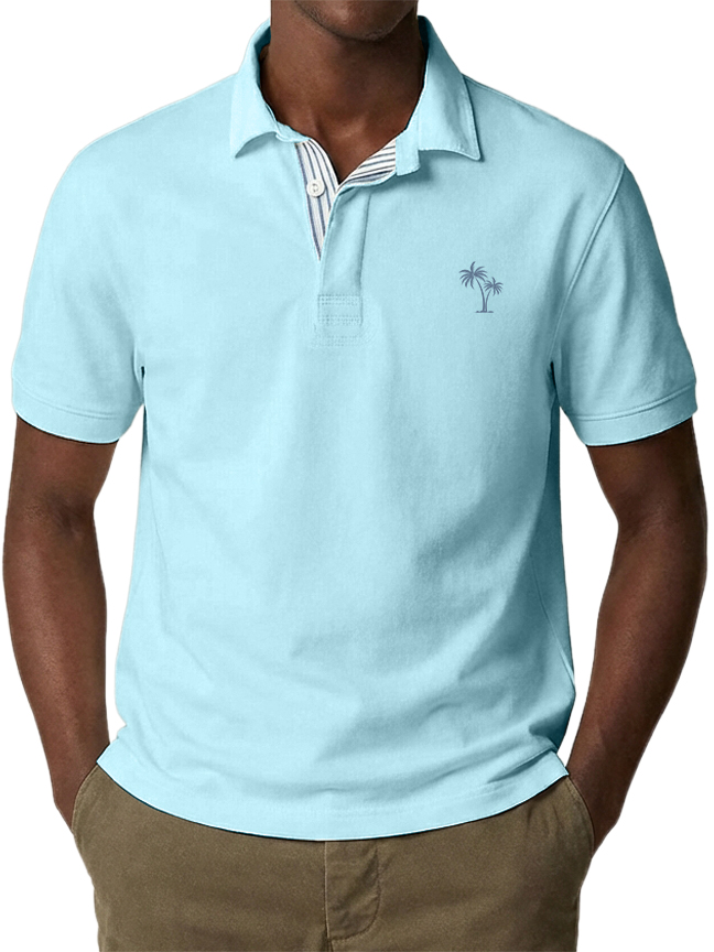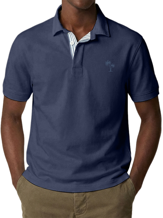 Men's Urban Casual Coconut Tree Stripe Short-Sleeved Polo Shirt