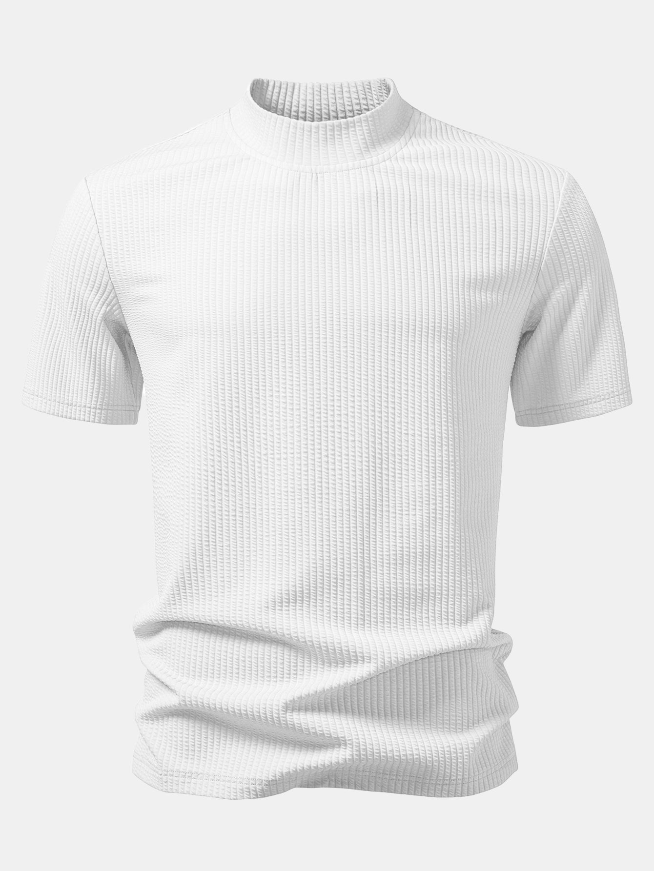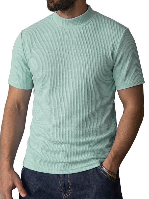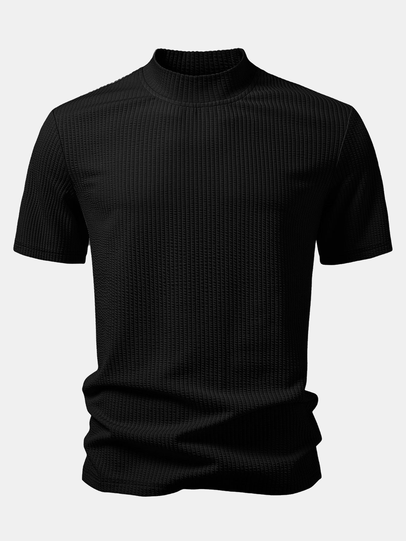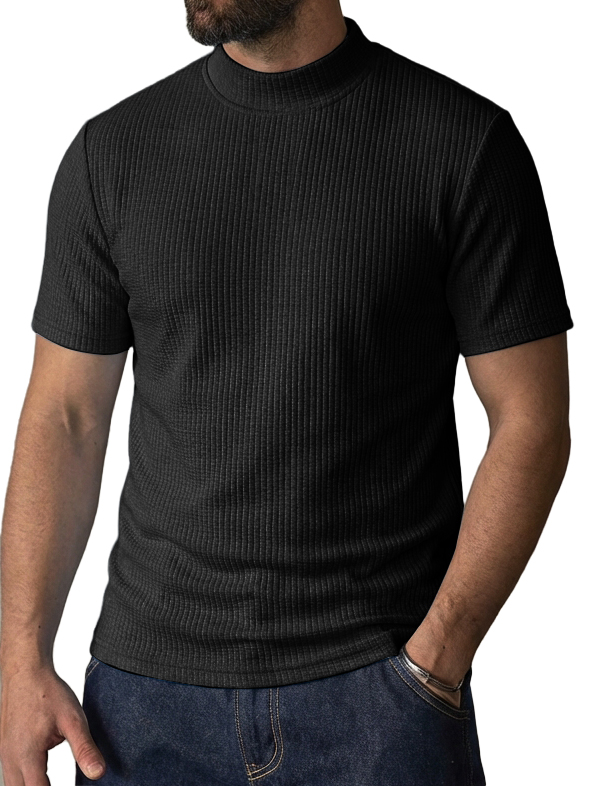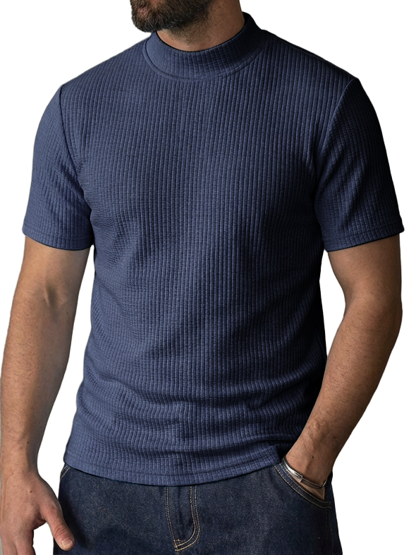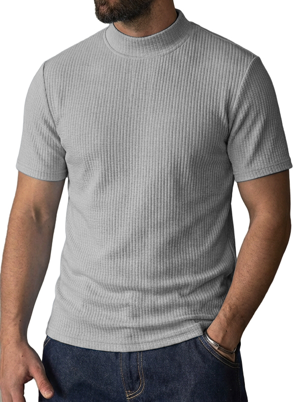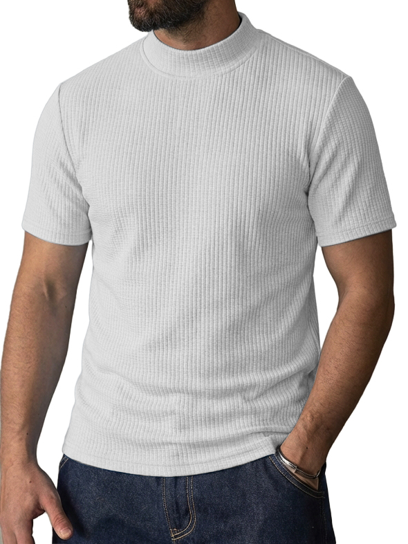 Men's Urban Casual High-Neck Slim Fit Striped Short-Sleeve T-Shirt