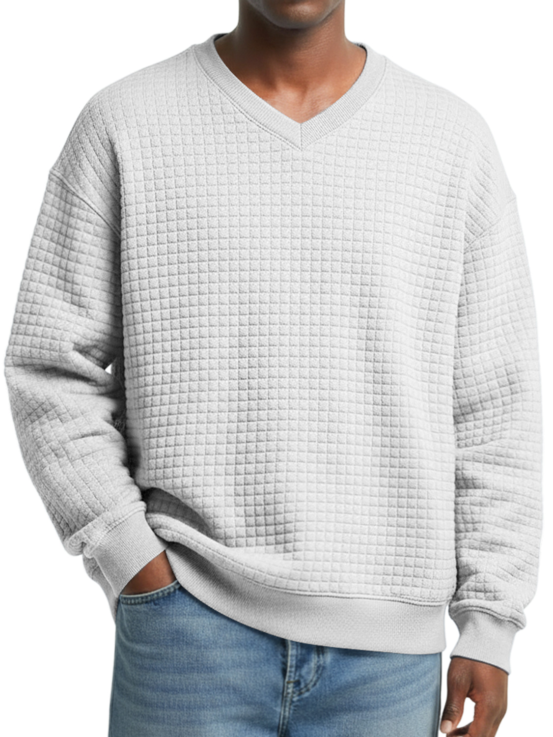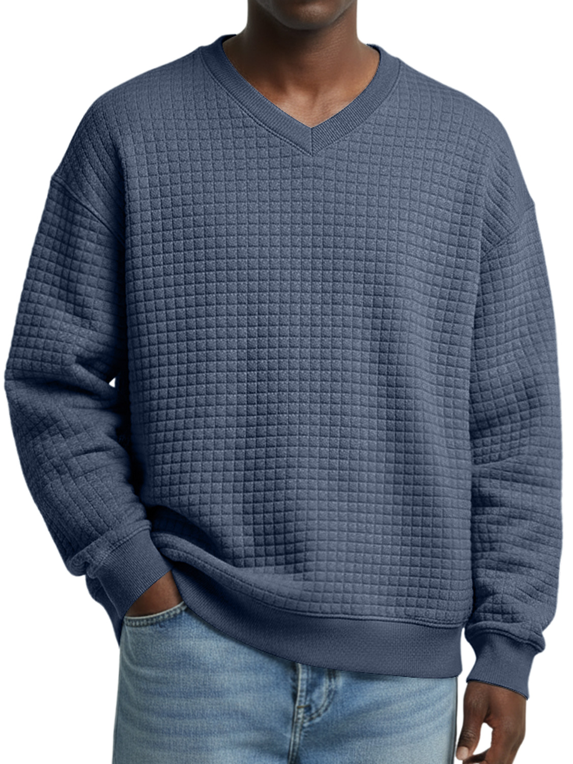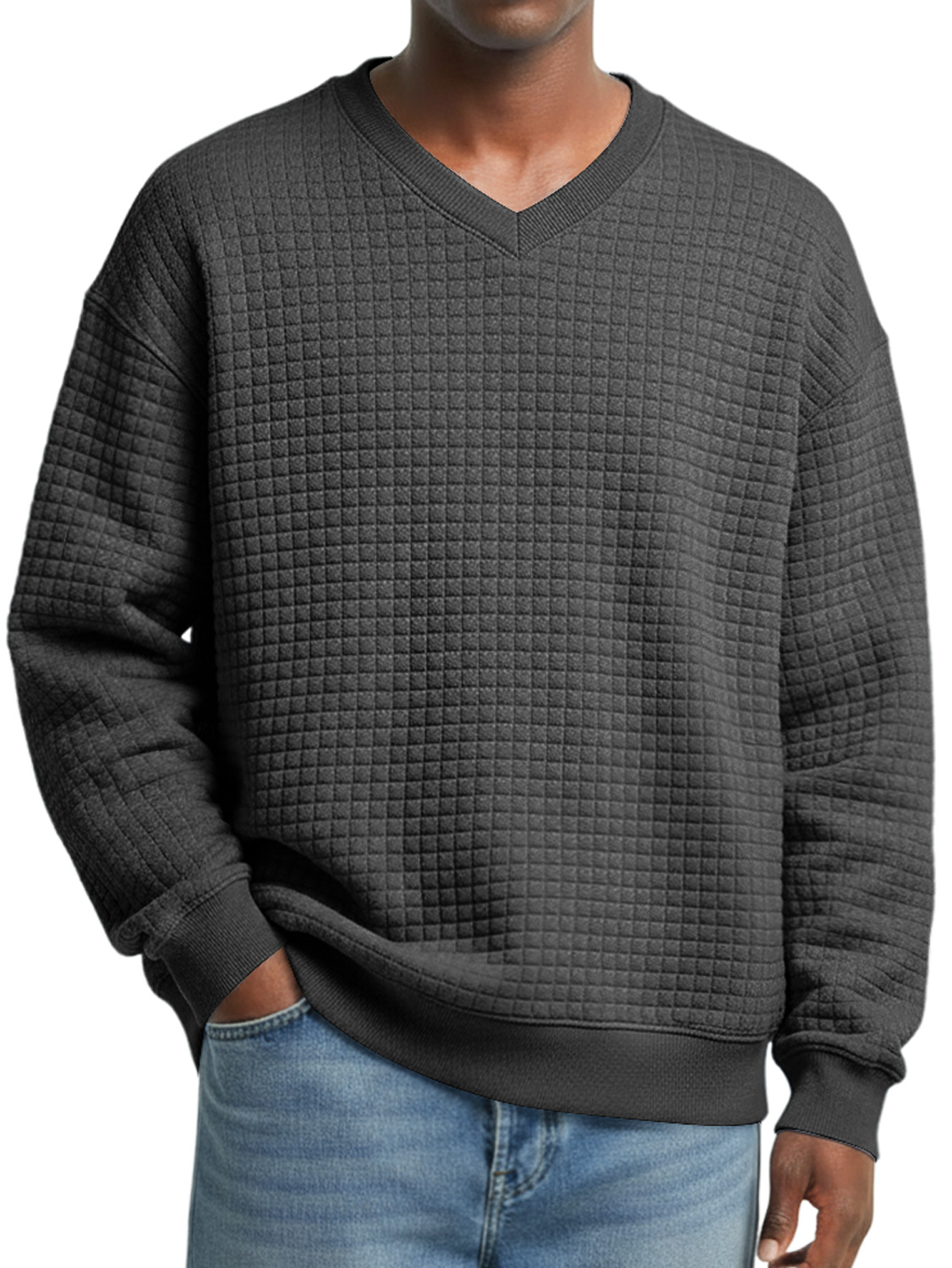 Men's V-neck Small Checkered Simple Casual Sweatshirt