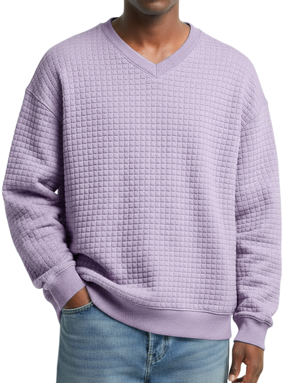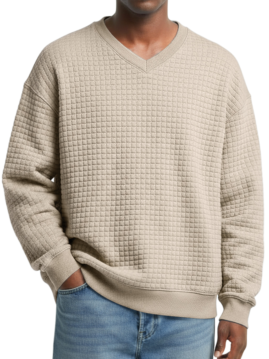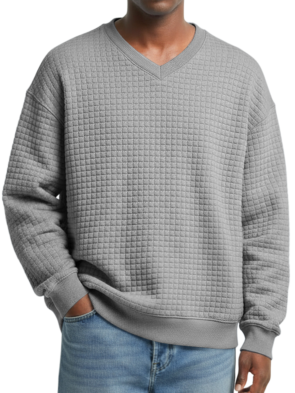 Men's V-neck Small Checkered Simple Casual Sweatshirt