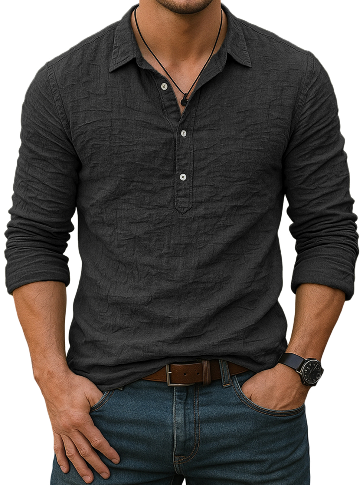 • Neckline: Shirt Henley Collar