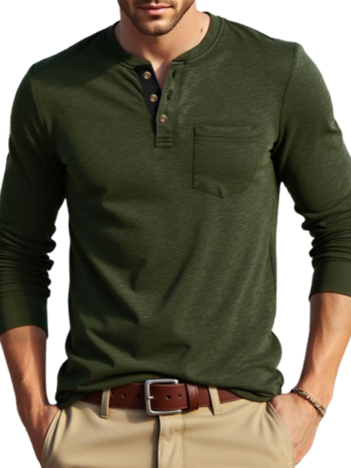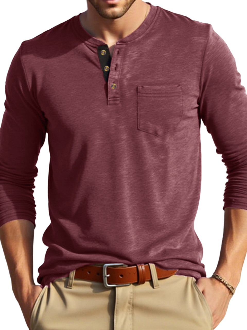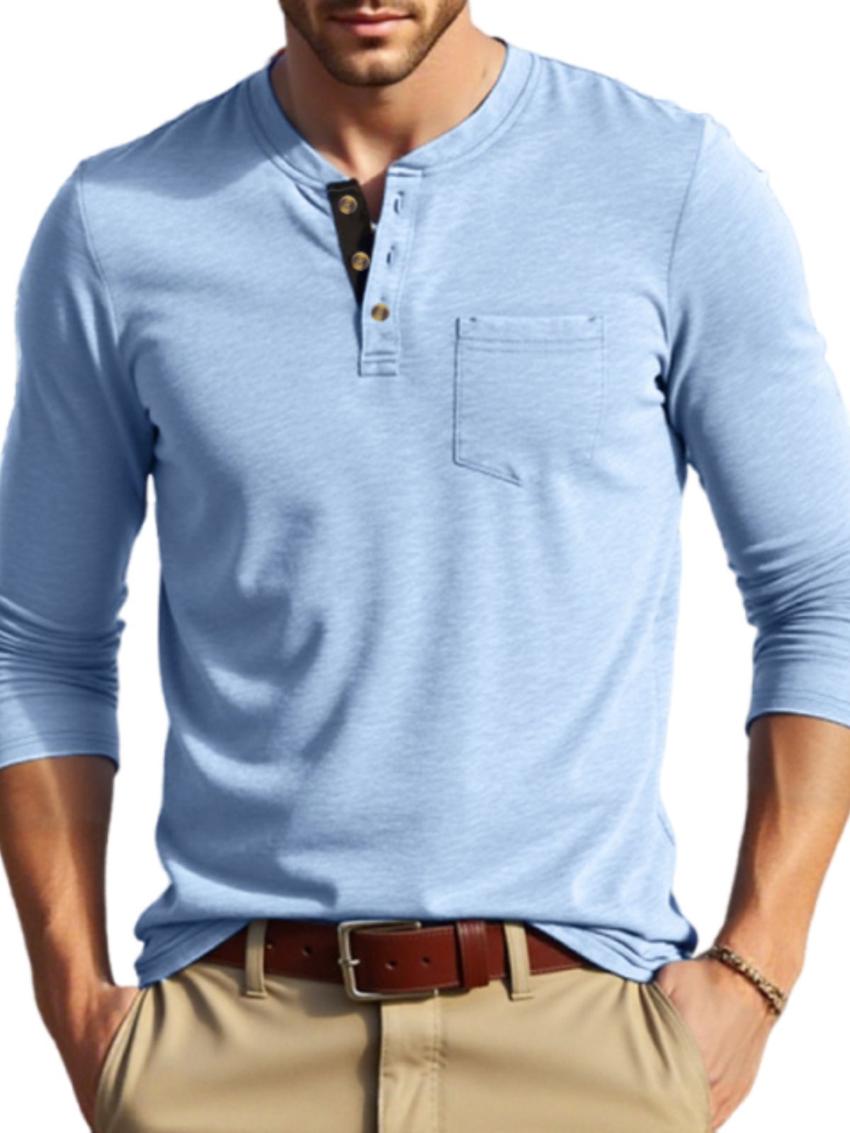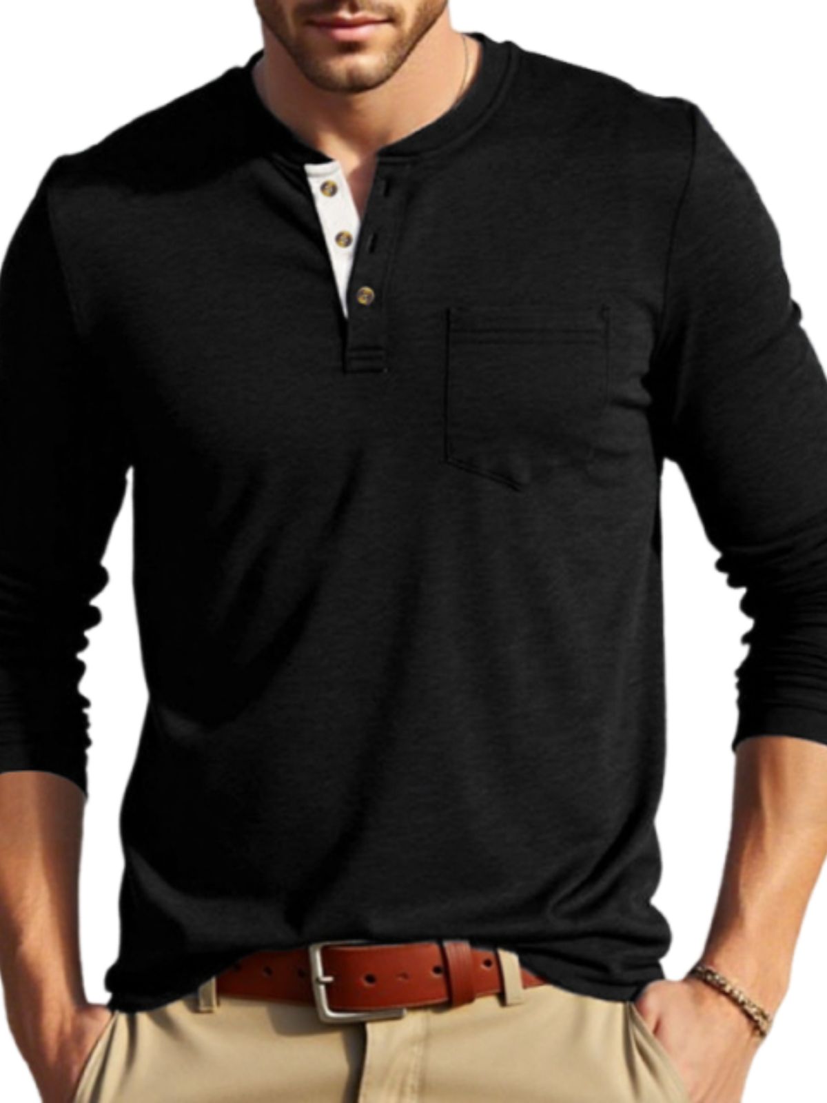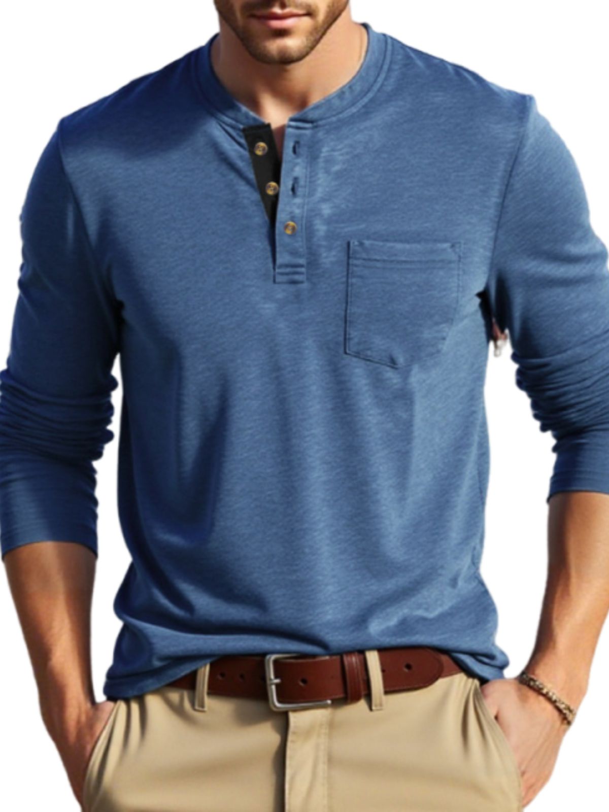 • Neckline: Crew Henley Collar