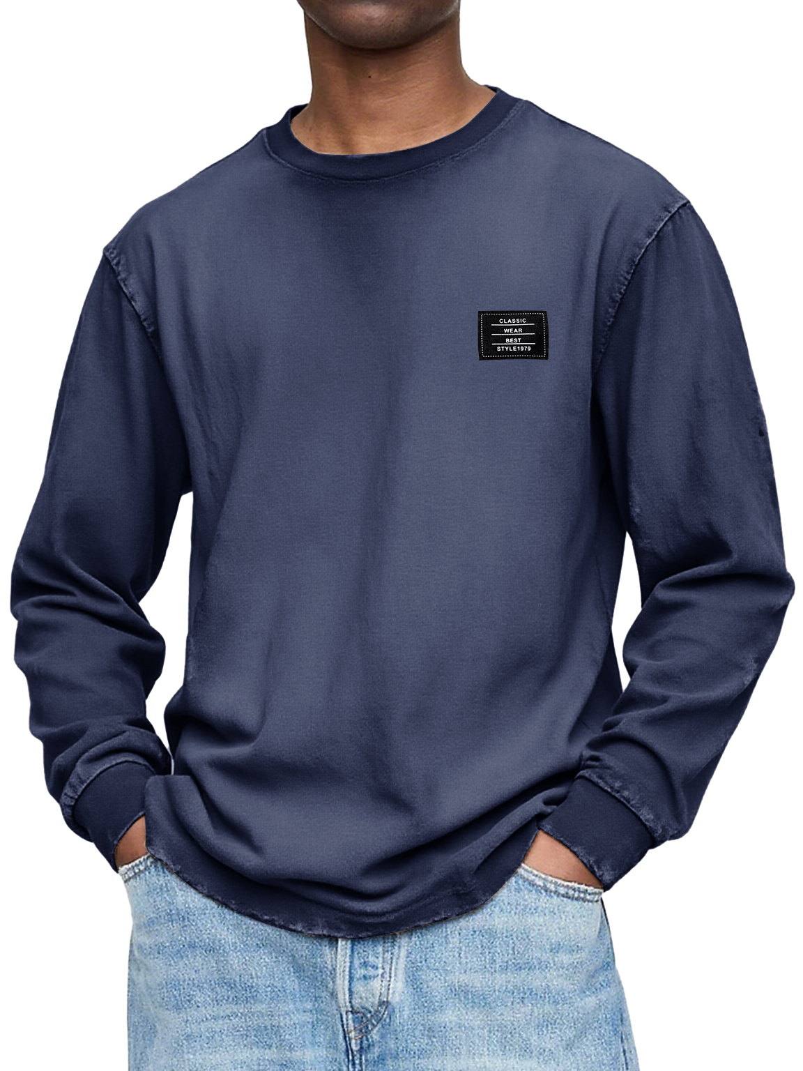 Men's Vintage Casual Washed And Distressed Heavy-crafted Embroidered Logo Long Sleeved T-shirt