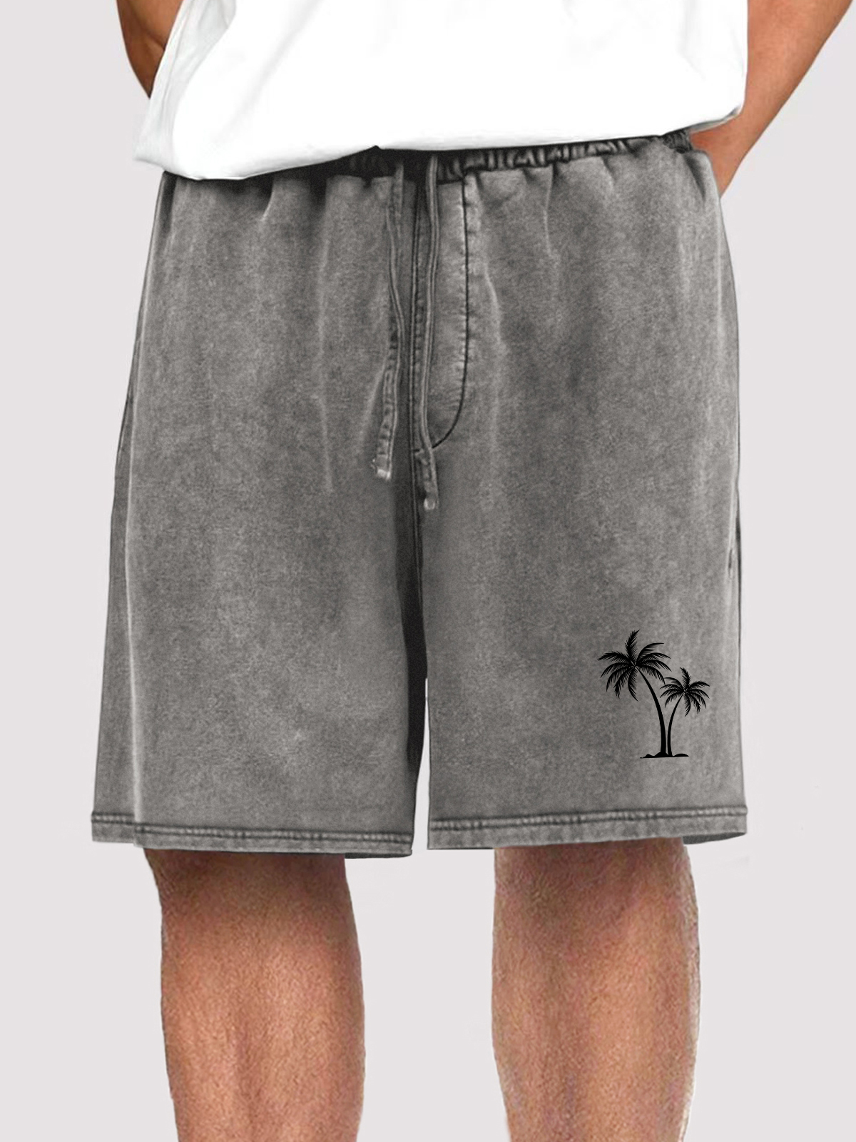 Men's Vintage Distressed Coconut Tree Print Holiday Casual Elastic Waist Shorts With Side Pockets