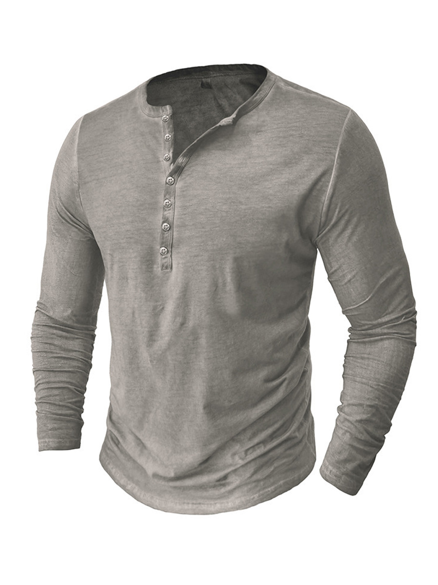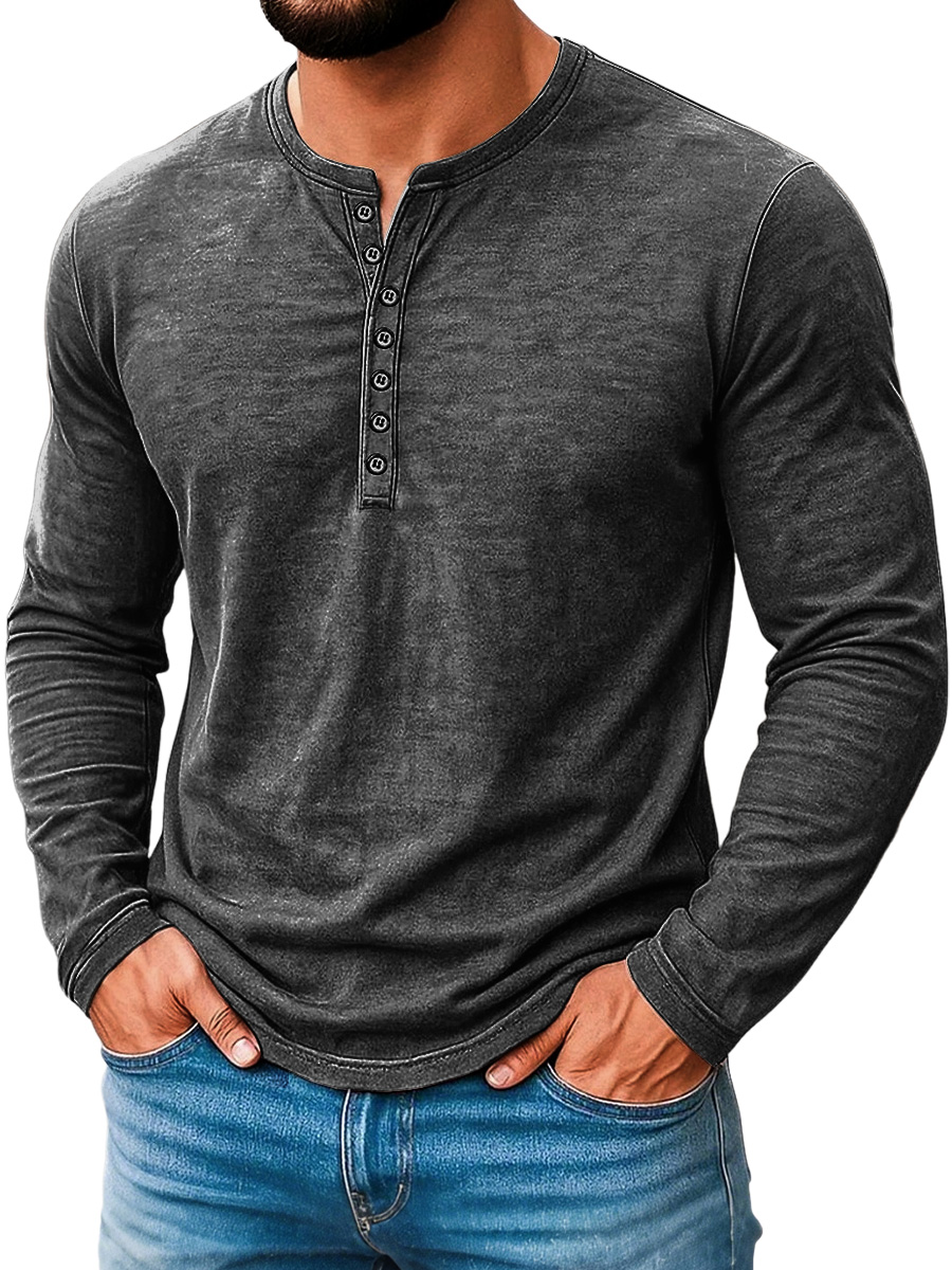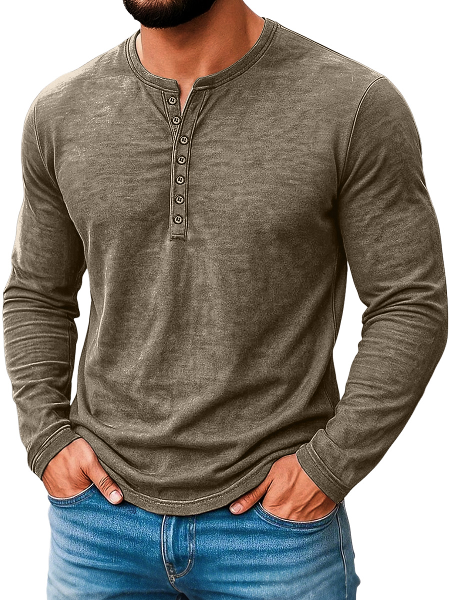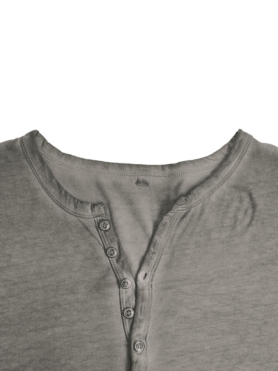 Men's Vintage Distressed Cotton Casual Button-Down Long Sleeve Henley Shirt