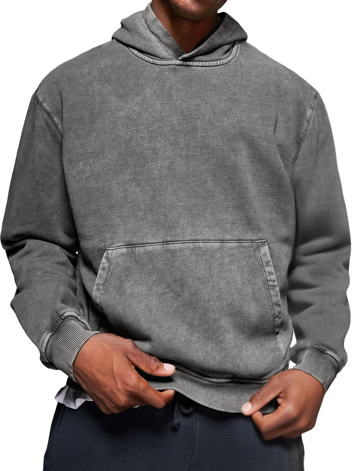 Men's Vintage Distressed Washed Cotton Hooded Sweatshirt