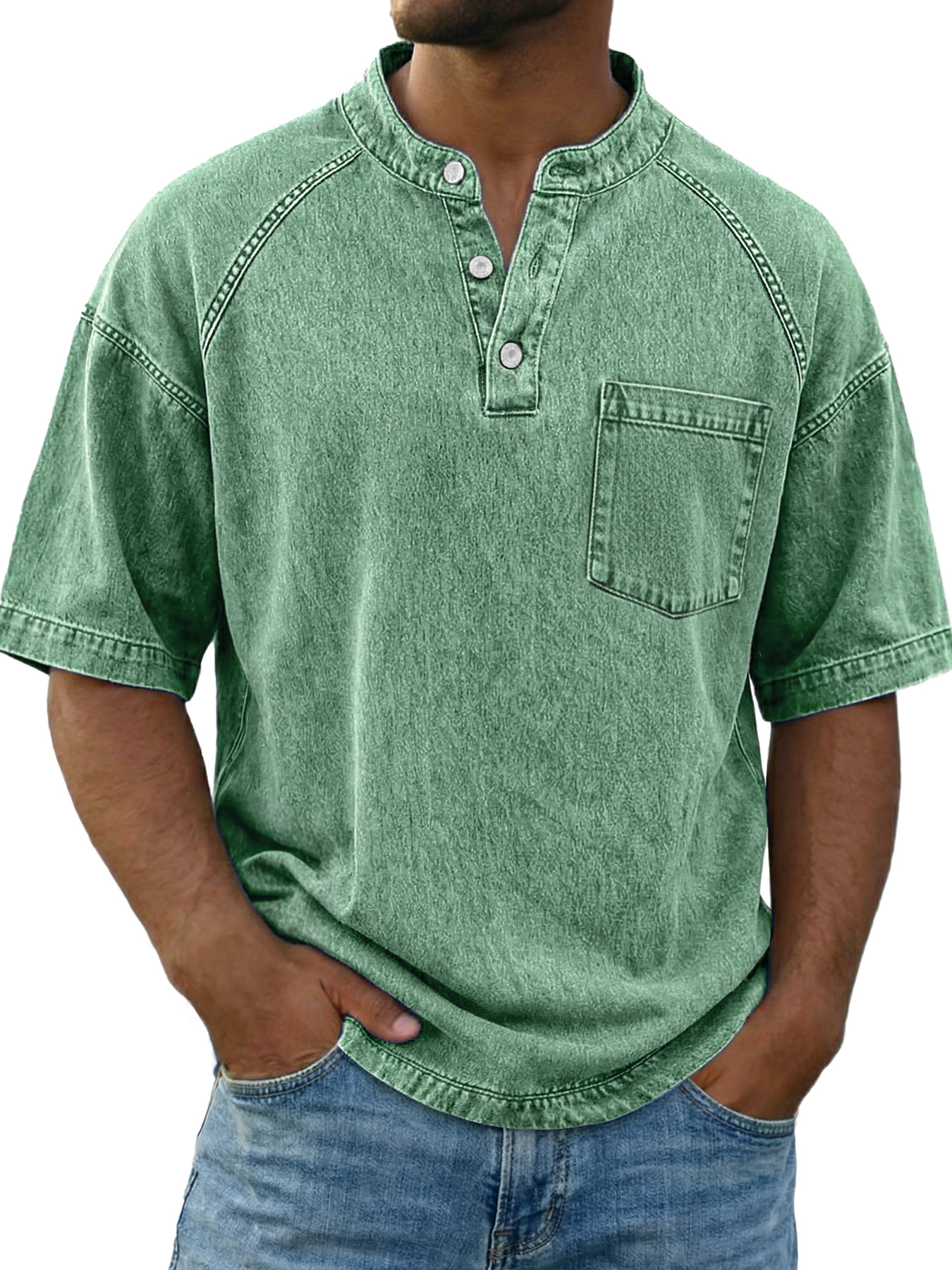 Men's Vintage Raglan Sleeve Pocket Casual Henley Shirt