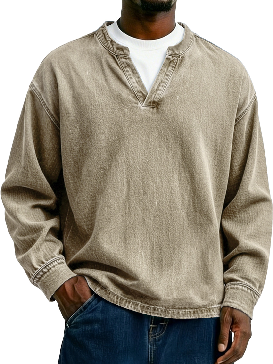 Men's Vintage-style Casual Long-sleeved T-shirt With A Faux Two-piece Double-layer Collar Design