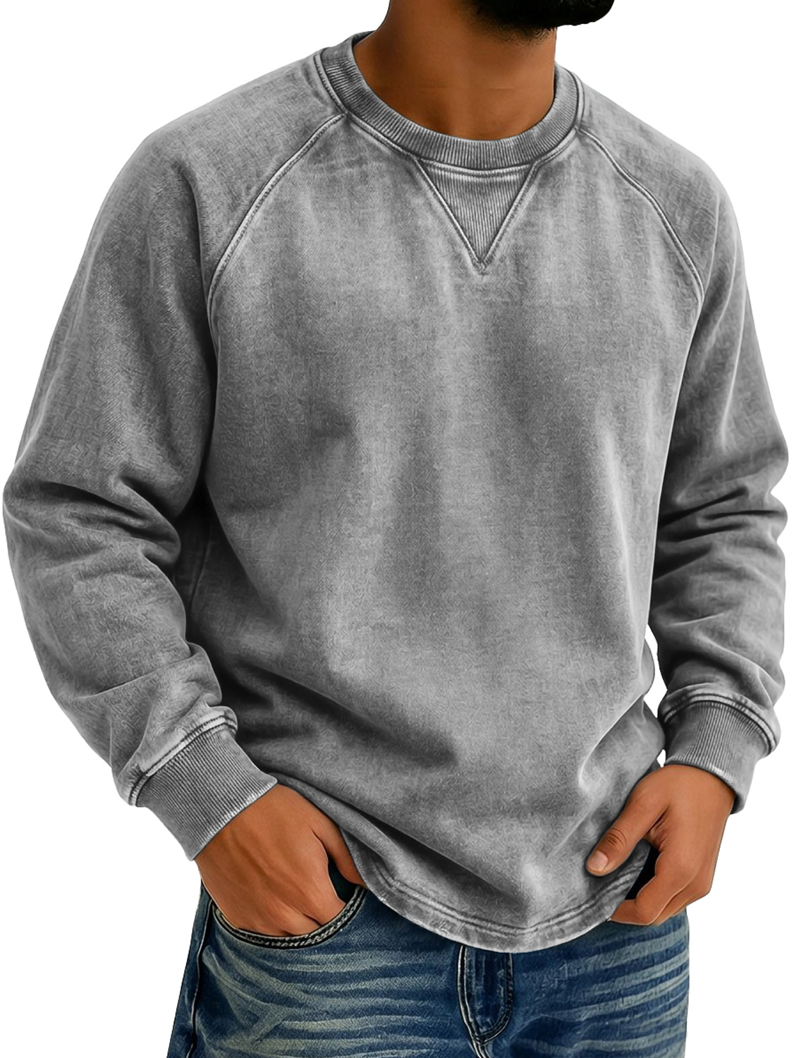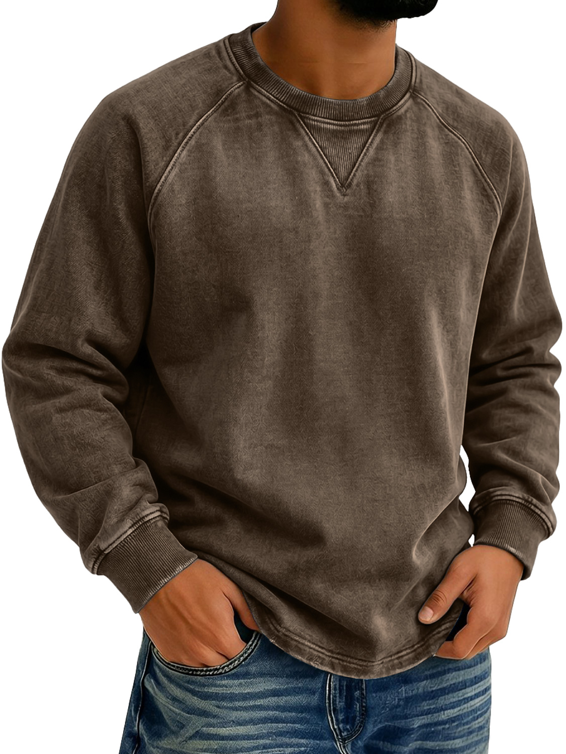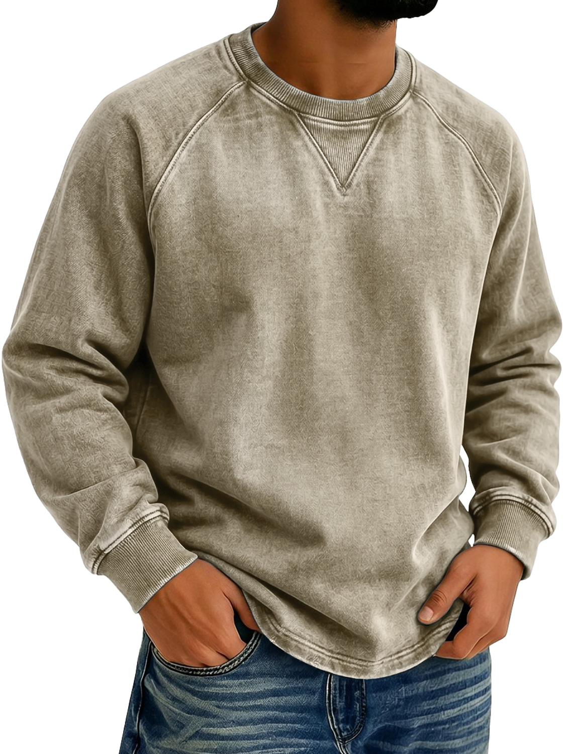 Men's Vintage-style Crew Neck Casual Long-sleeved T-shirt With Raglan Sleeves