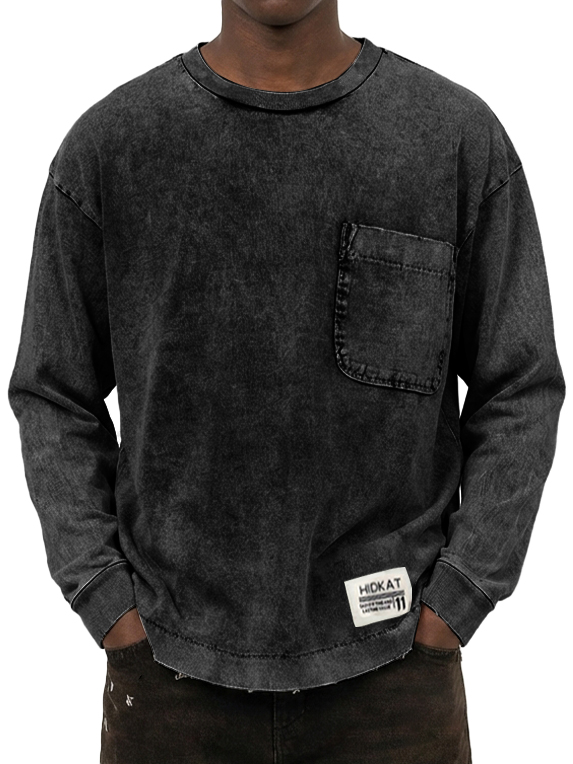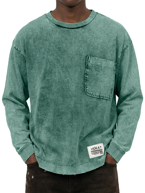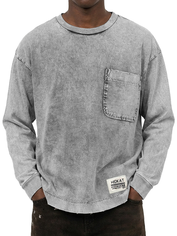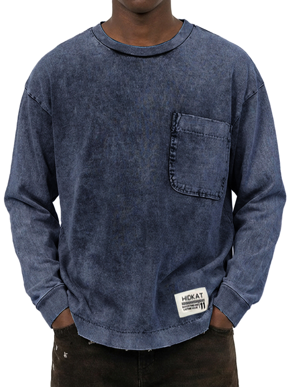 Men's Vintage Washed And Distressed Cotton Long Sleeved T-shirt