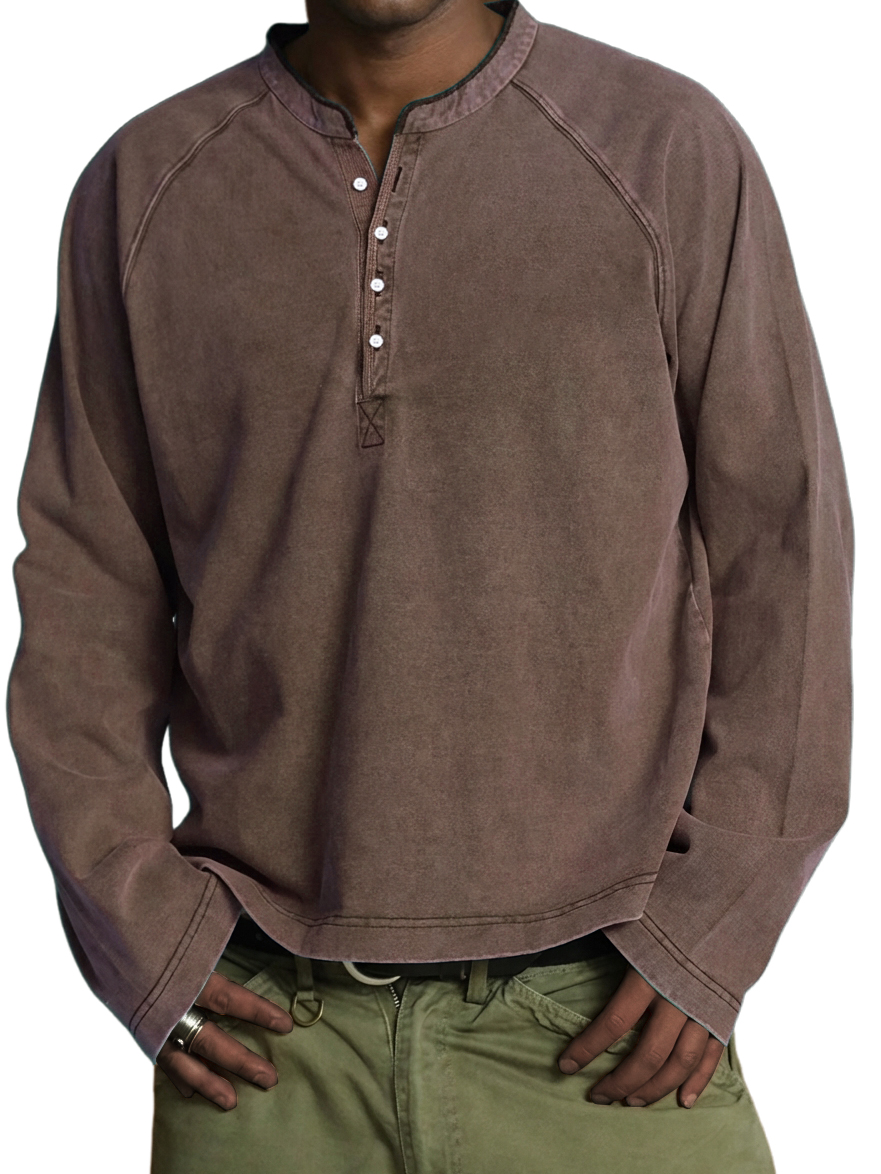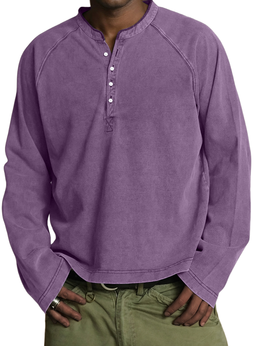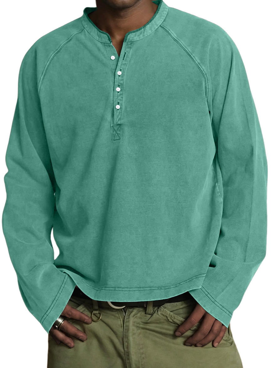 Men's Vintage Washed Cotton Henley Long-Sleeve T-Shirt
