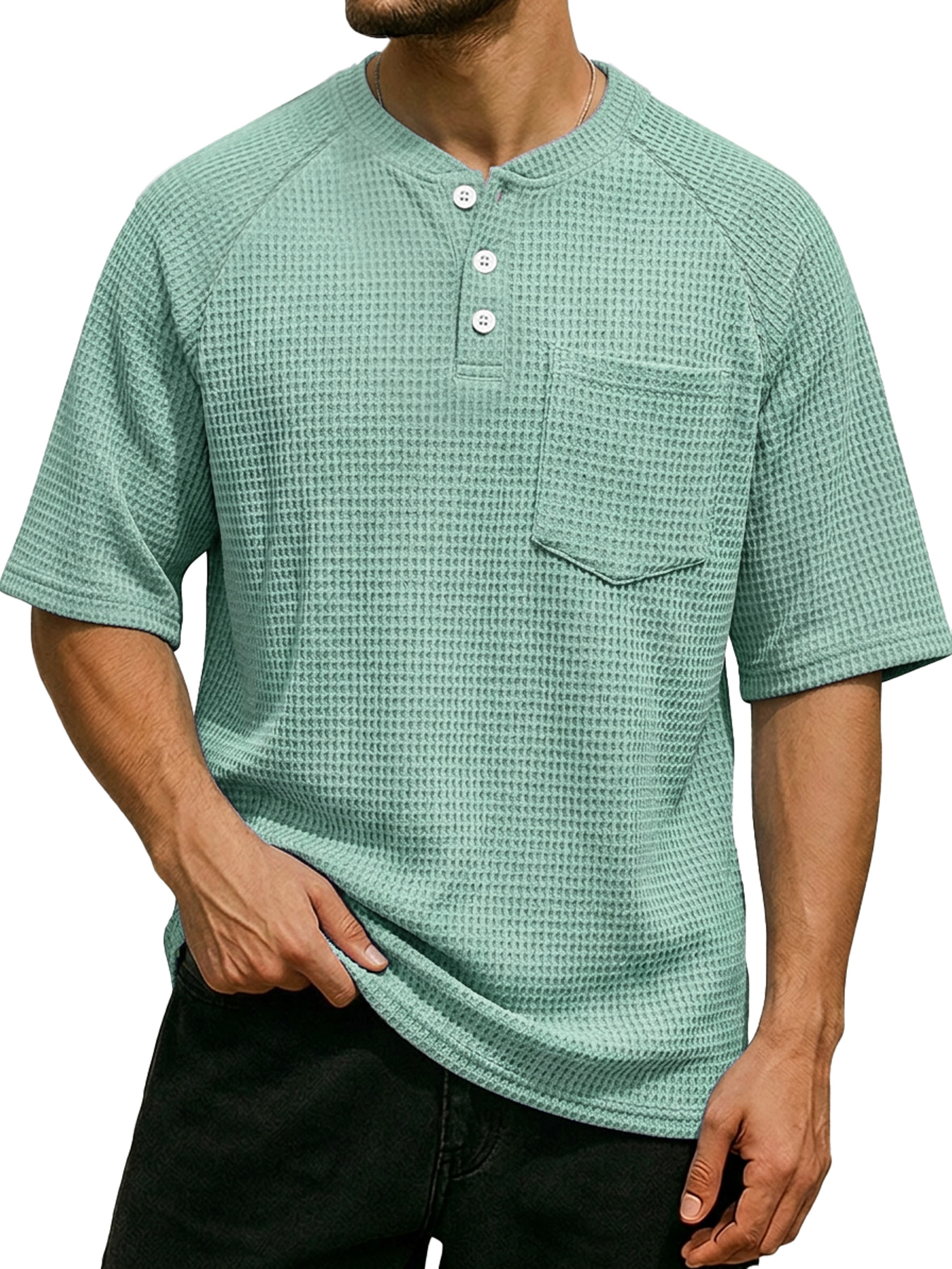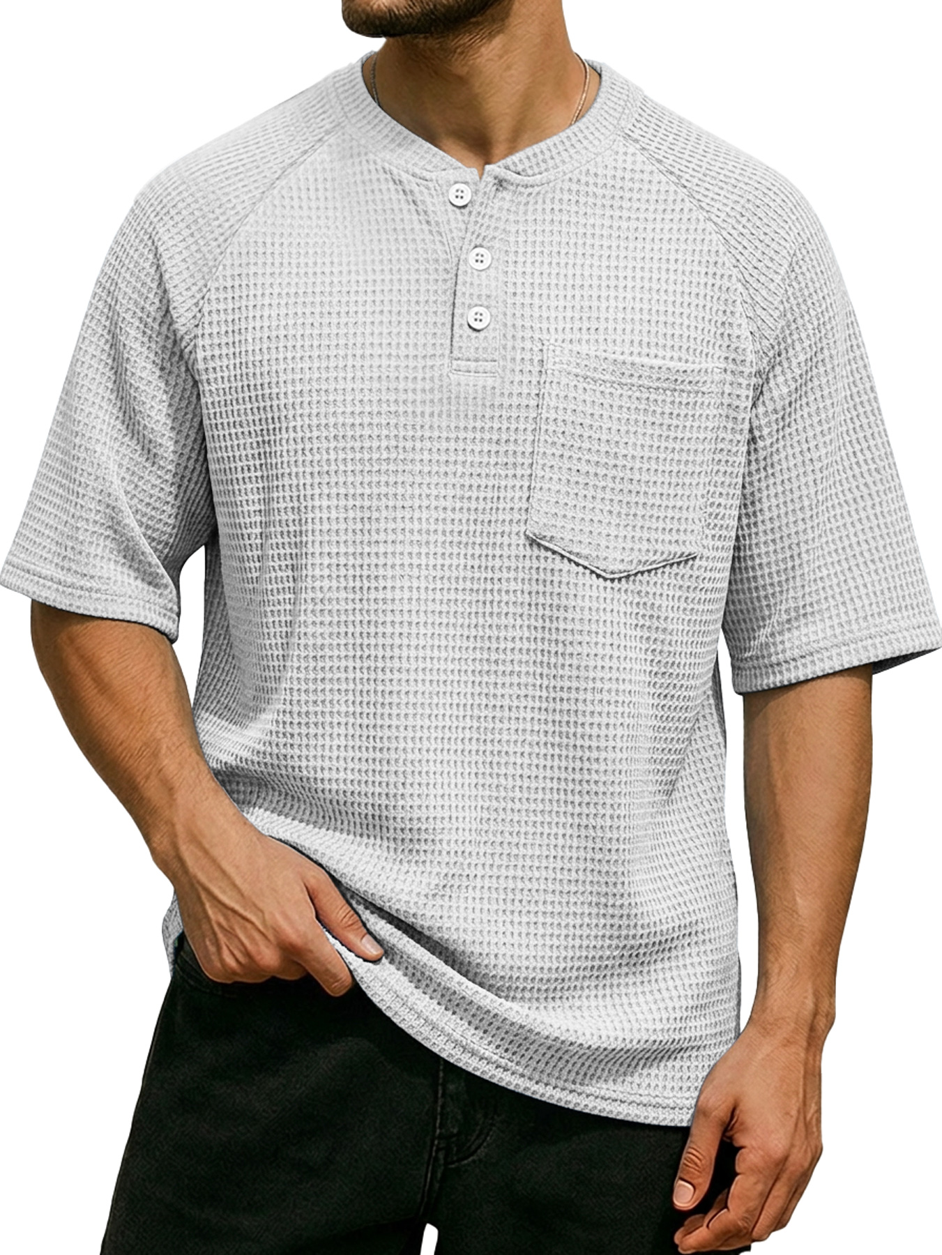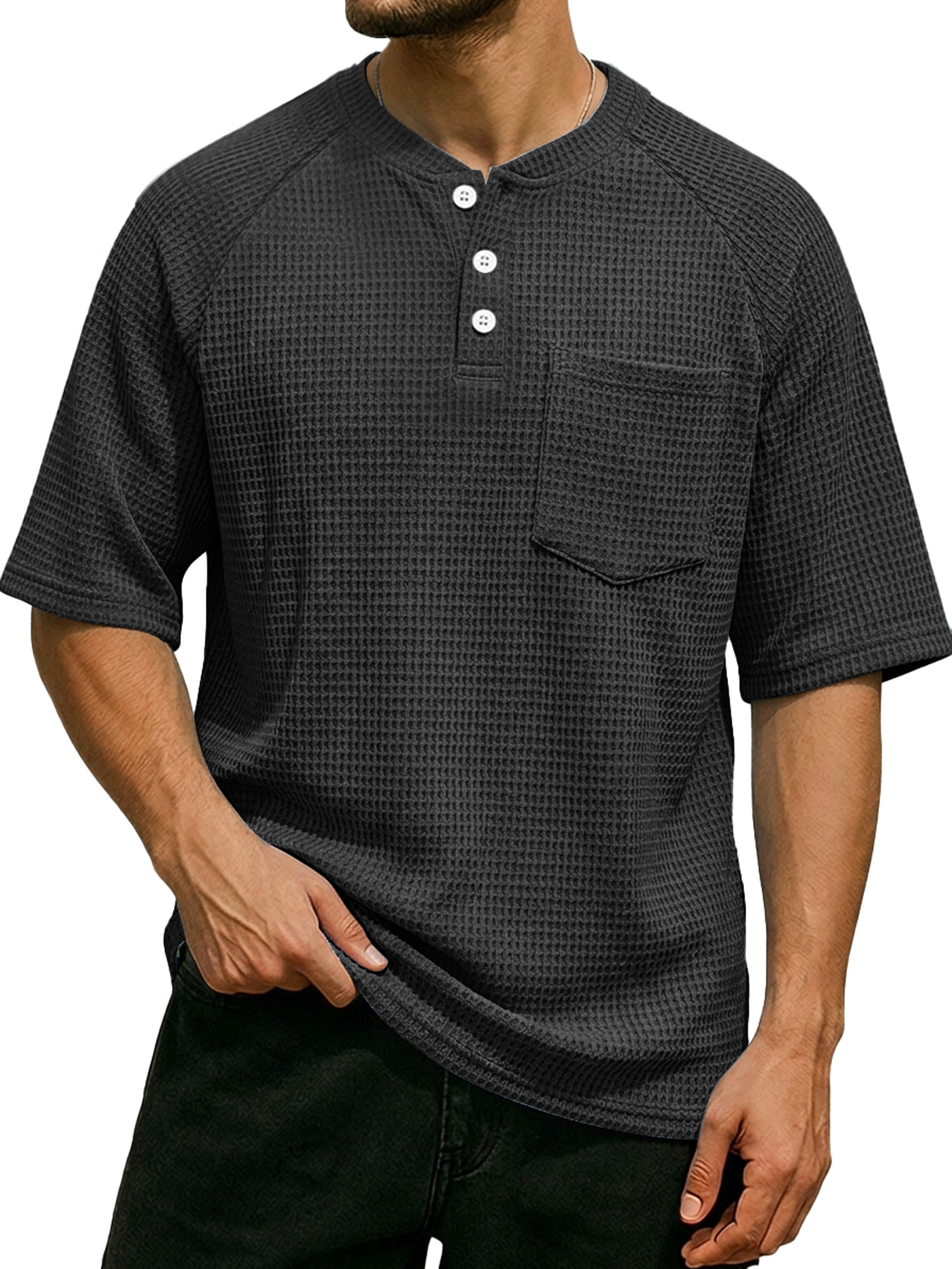 Men's Waffle Color Block Deconstructed Casual Short-Sleeve T-Shirt