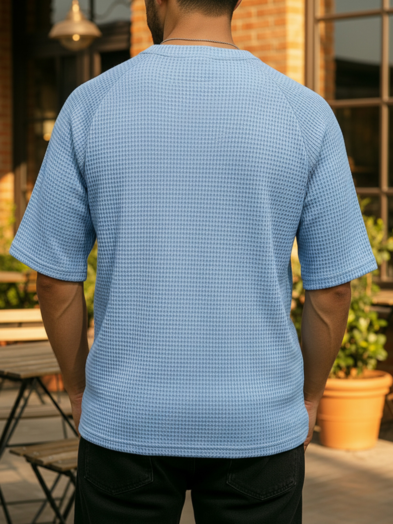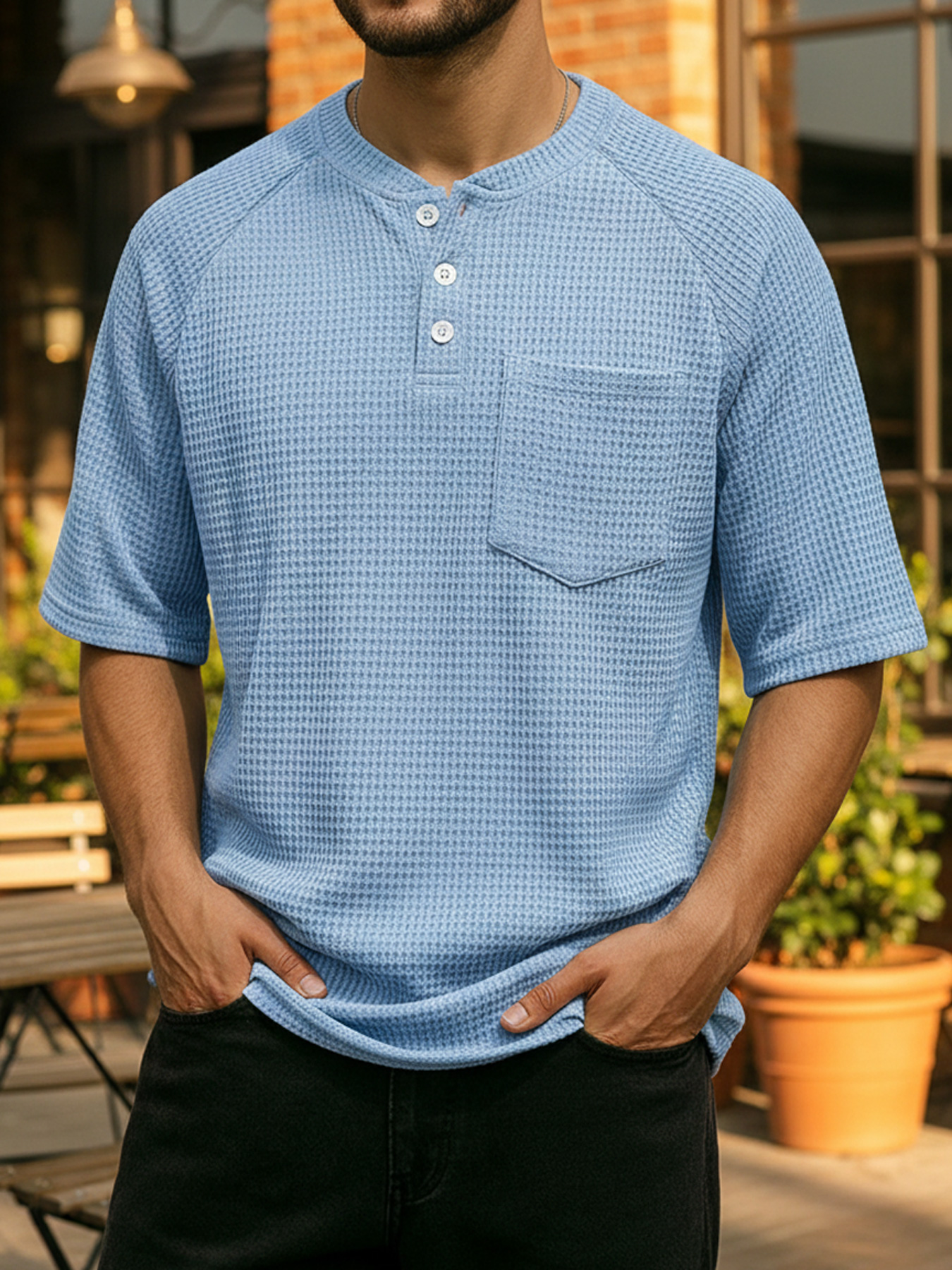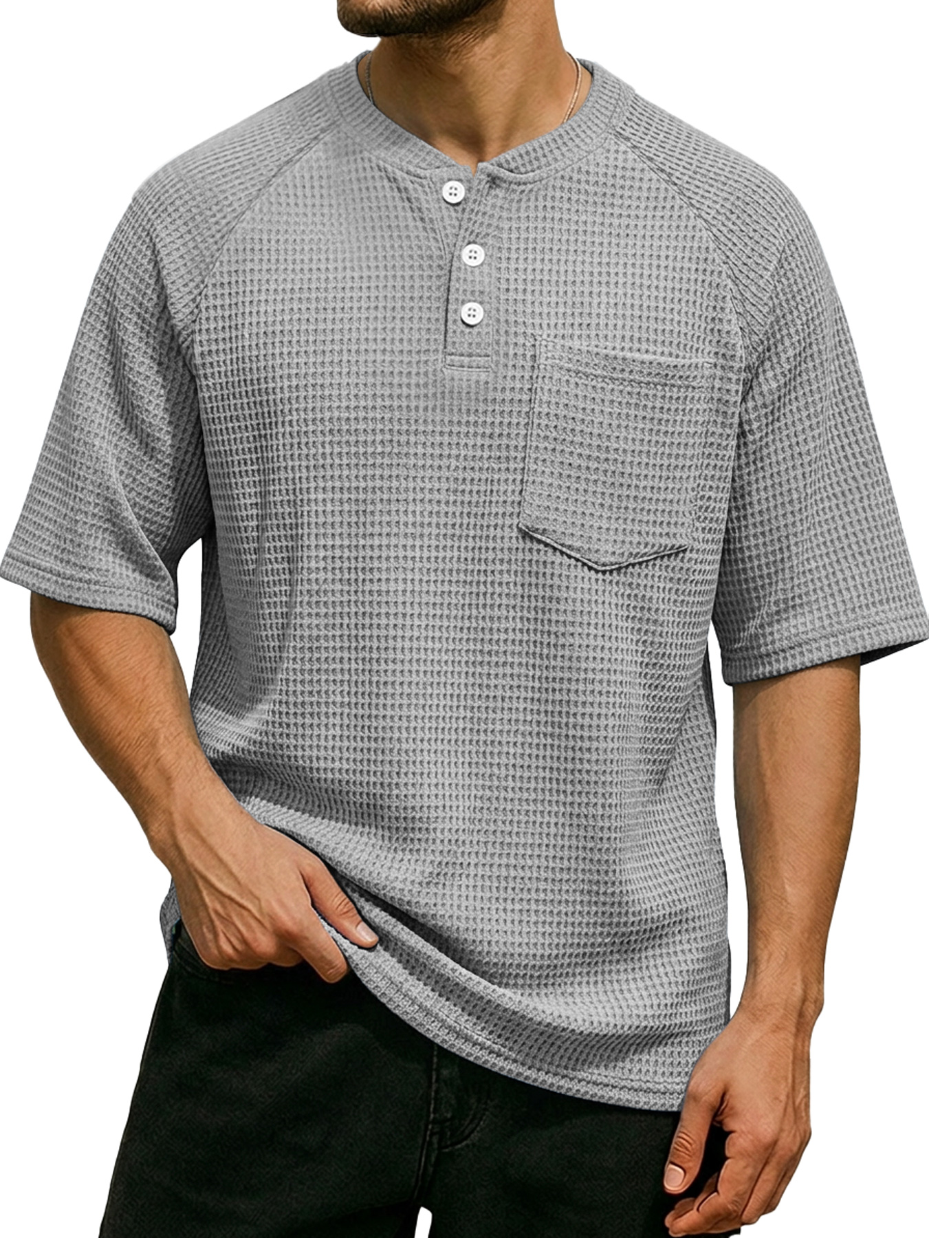 Men's Waffle Color Block Deconstructed Casual Short-Sleeve T-Shirt