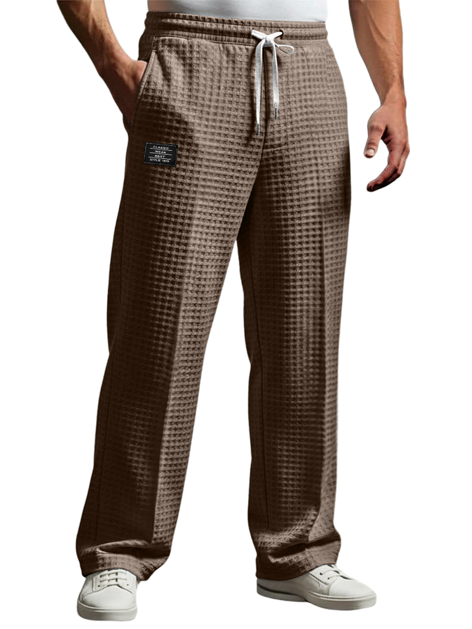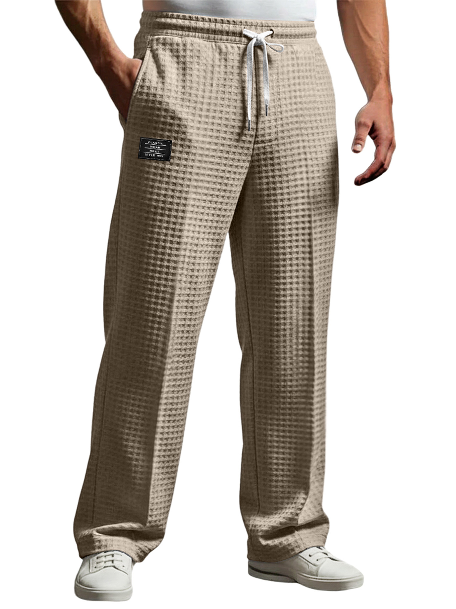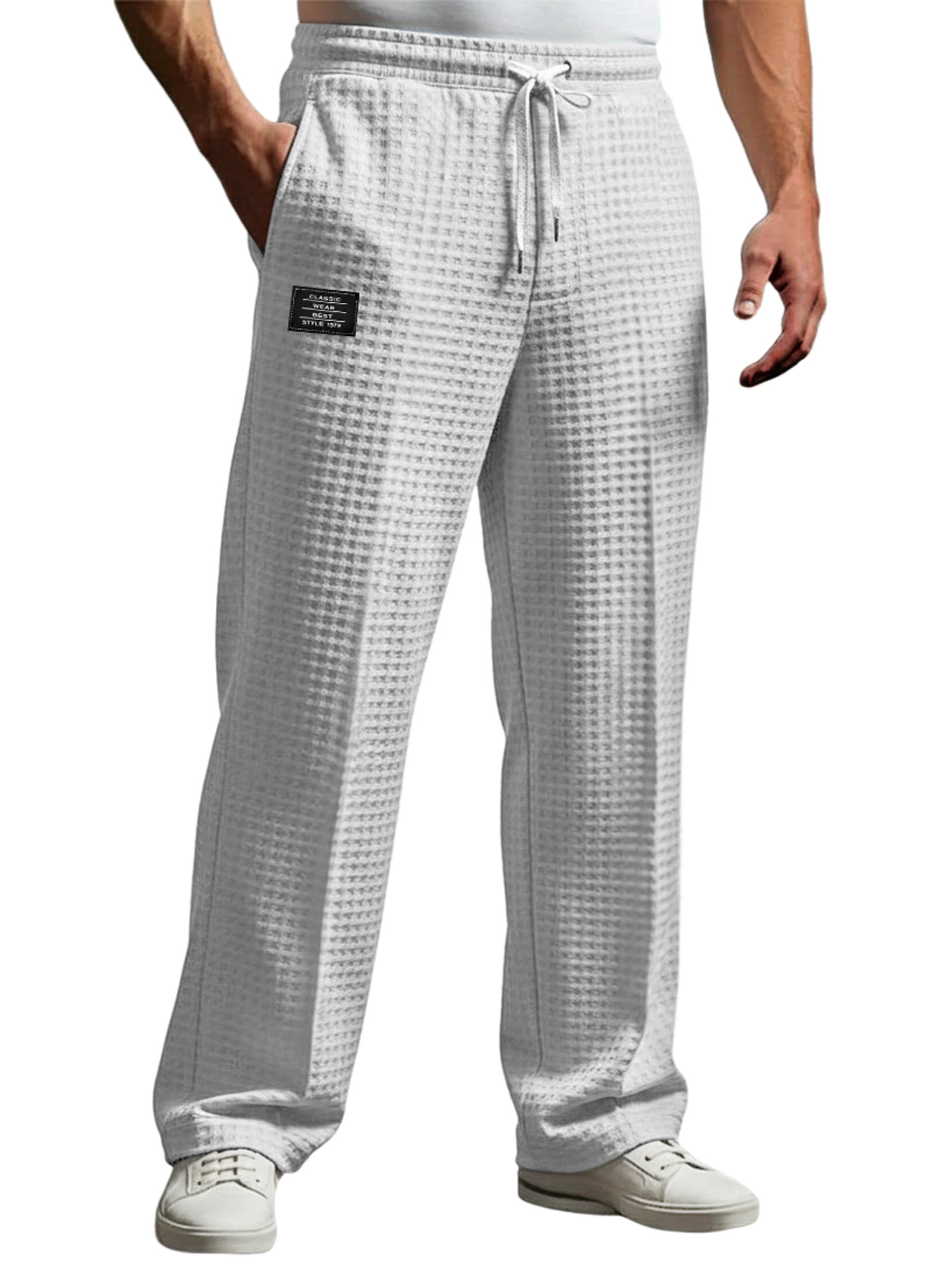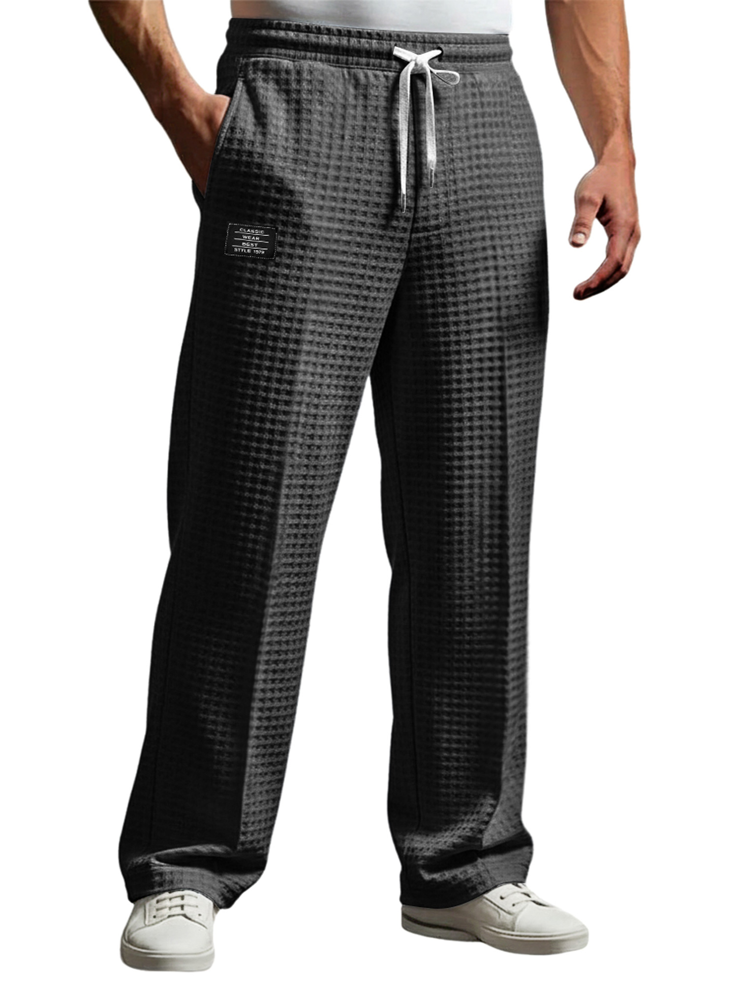 Men's Waffle Embroidered Logo Casual Loose Trousers