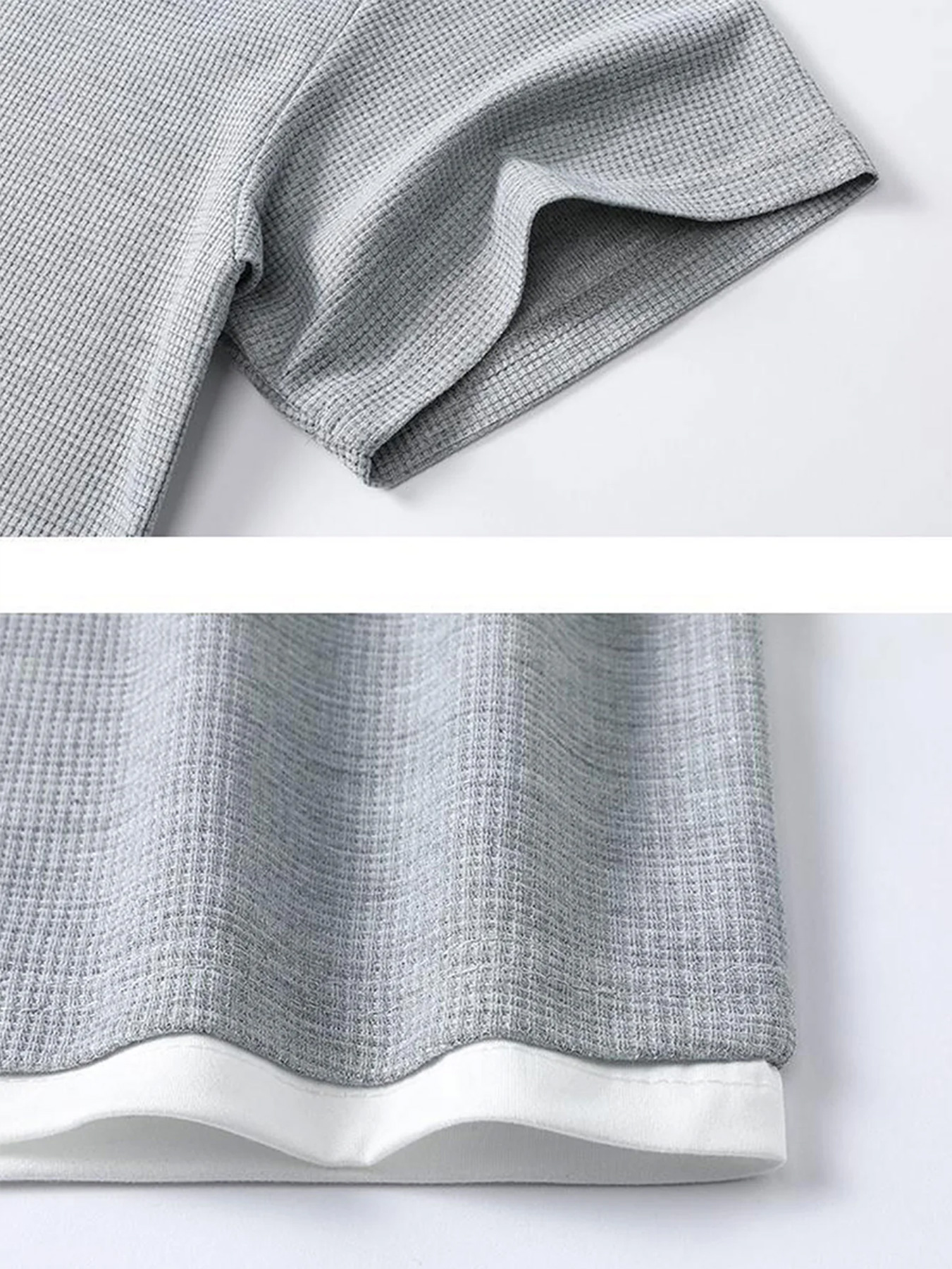 Men's Waffle-knit Faux Two-piece Casual Short-sleeved T-shirt