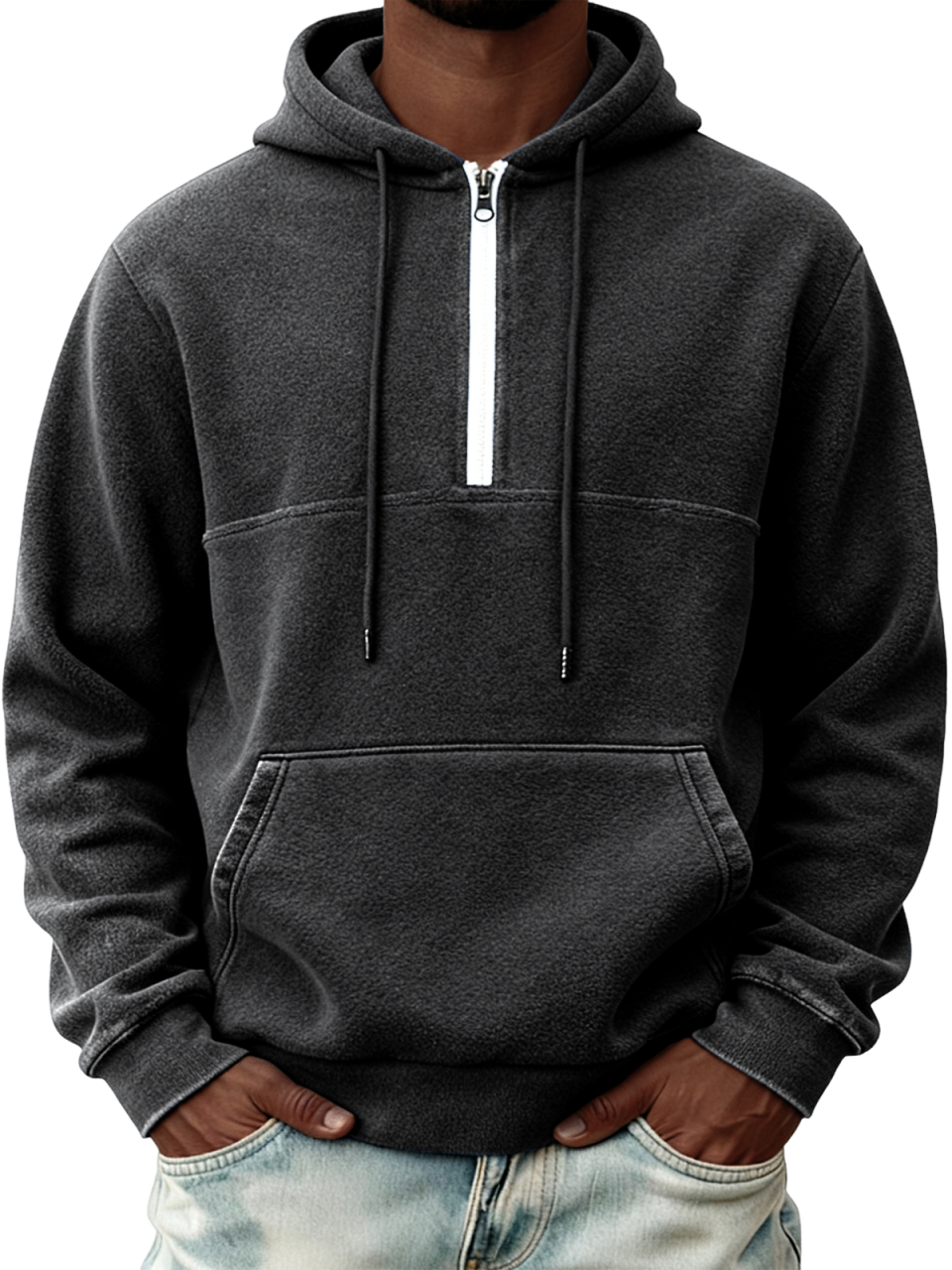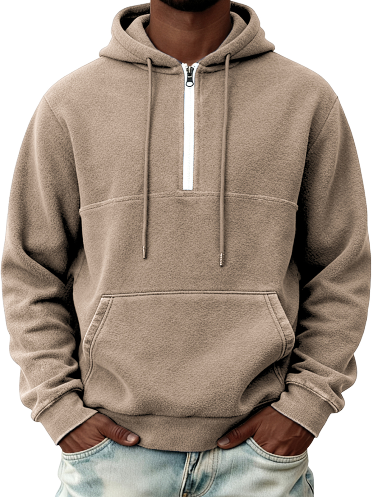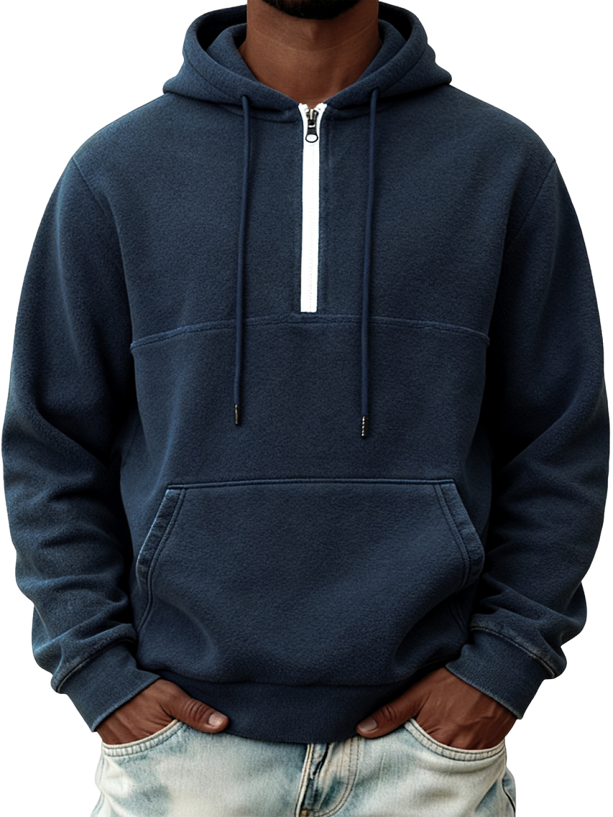Men's Warm Fleece Half-zip Hooded Sweatshirt