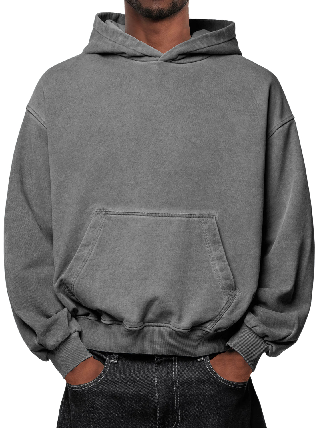 Men's Washed Distressed Vintage Hooded Sweatshirt